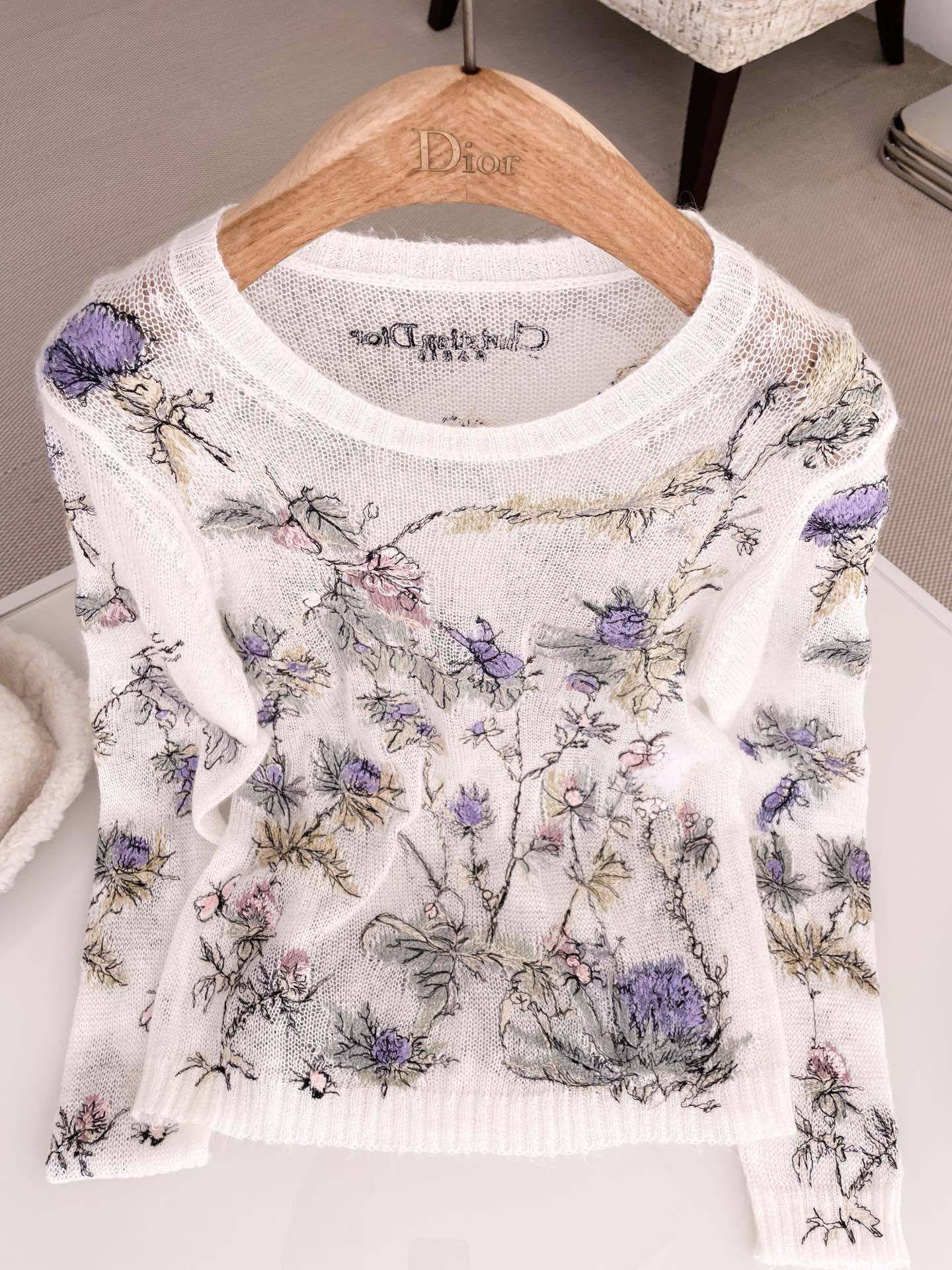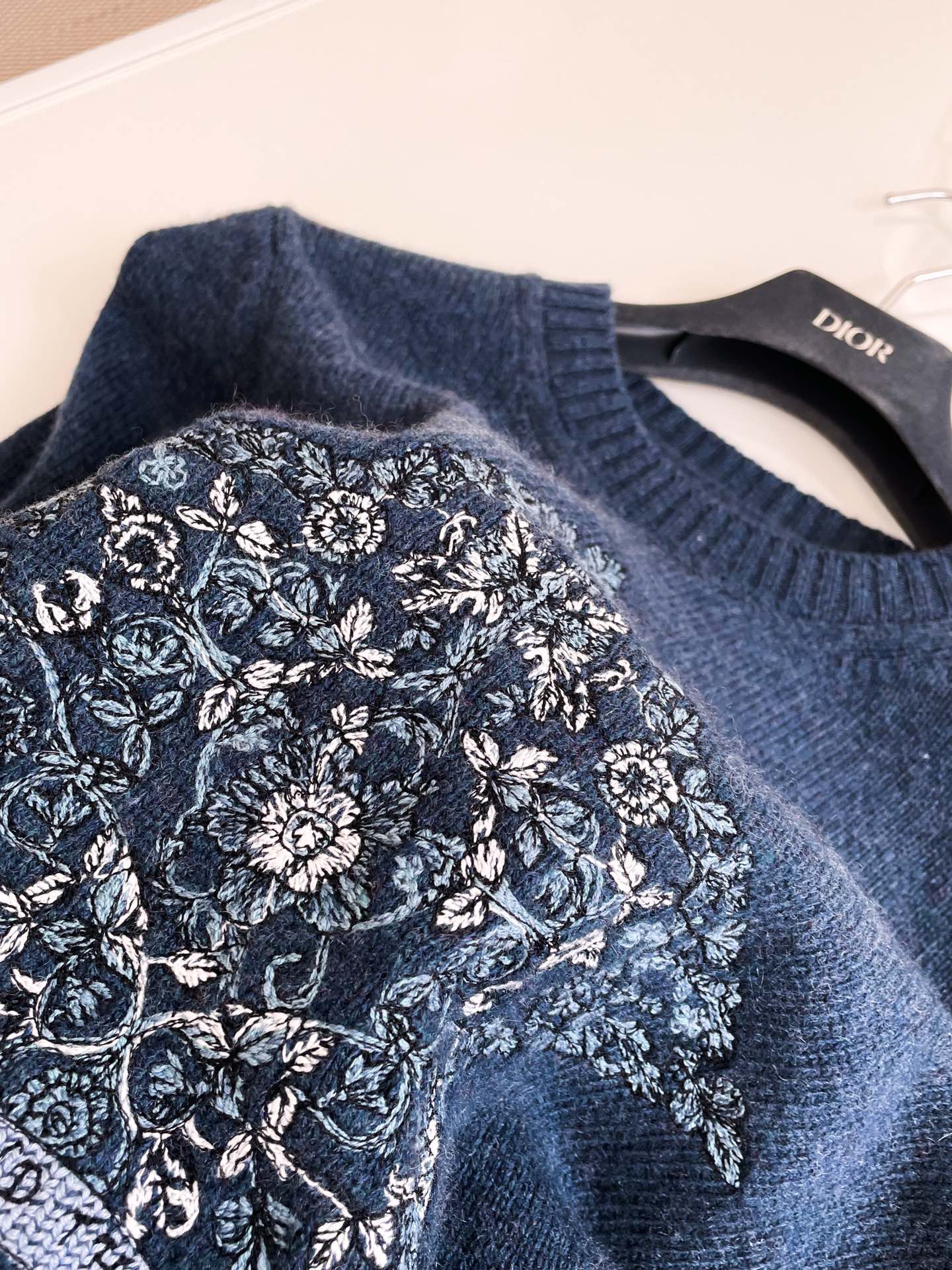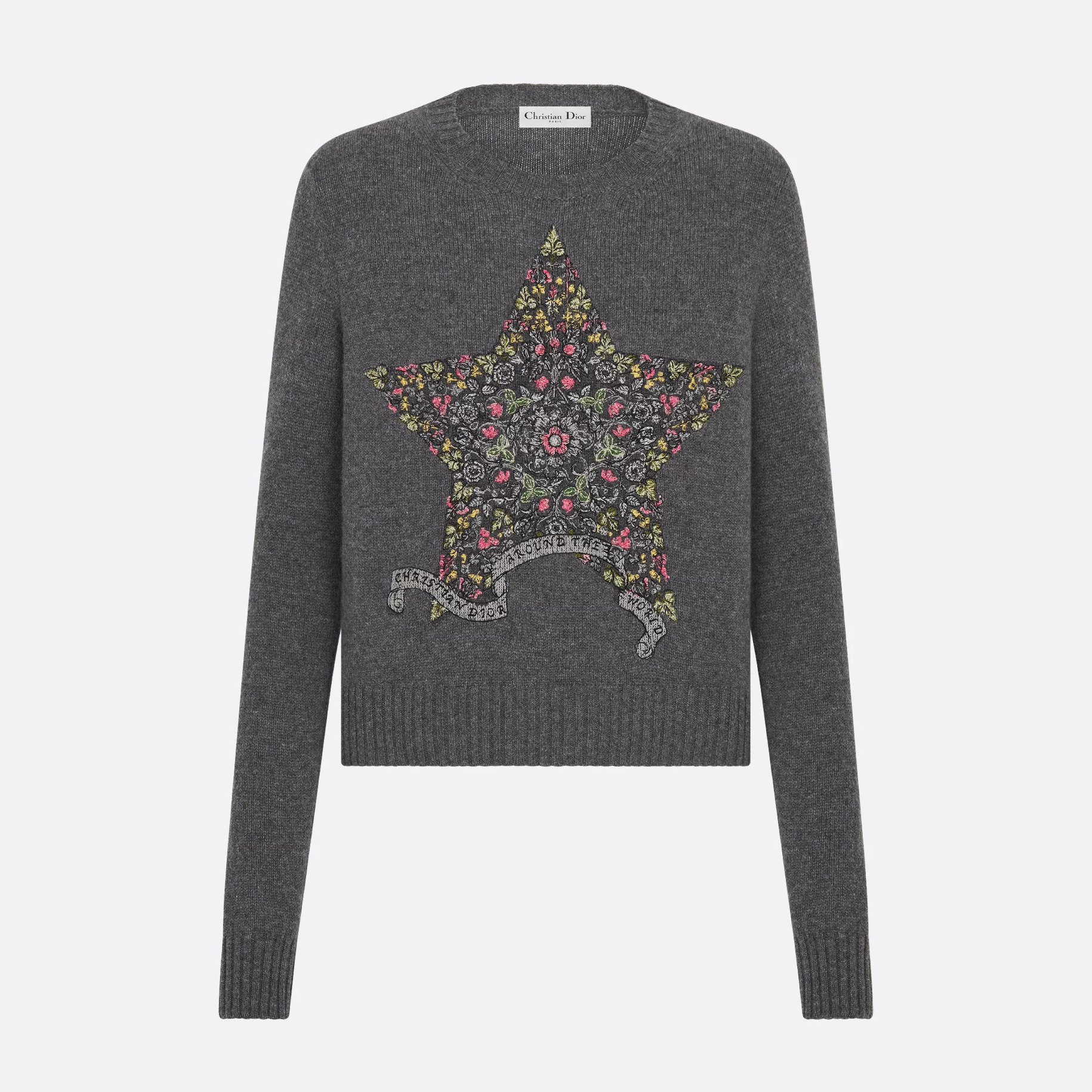 NIGO Dior Women's Spring and Autumn Star Embroidery Pattern Cashmere Knit Crew Neck Sweater #nigo74584