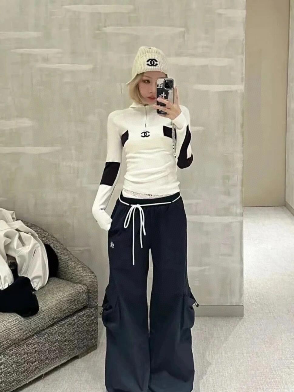 NIGO Chanel Women's Autumn and Winter Logo Decoration Color Blocking Long Sleeve Pullover Knitted Sweater #nigo74616