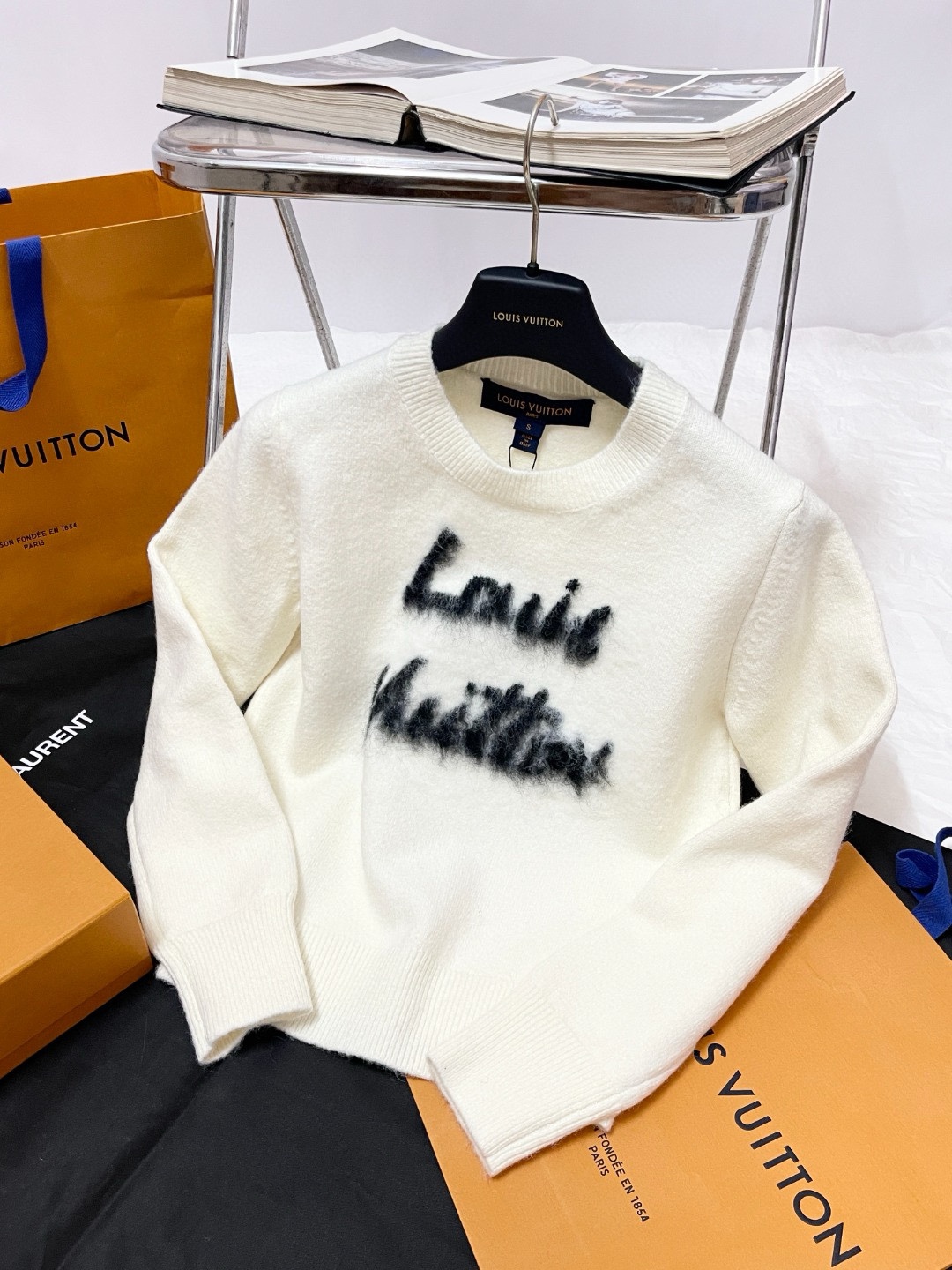 NIGO Louis Vuitton Women's Summer Crew Neck Monogrammed Cashmere Long Sleeve Knit Sweater #nigo73667