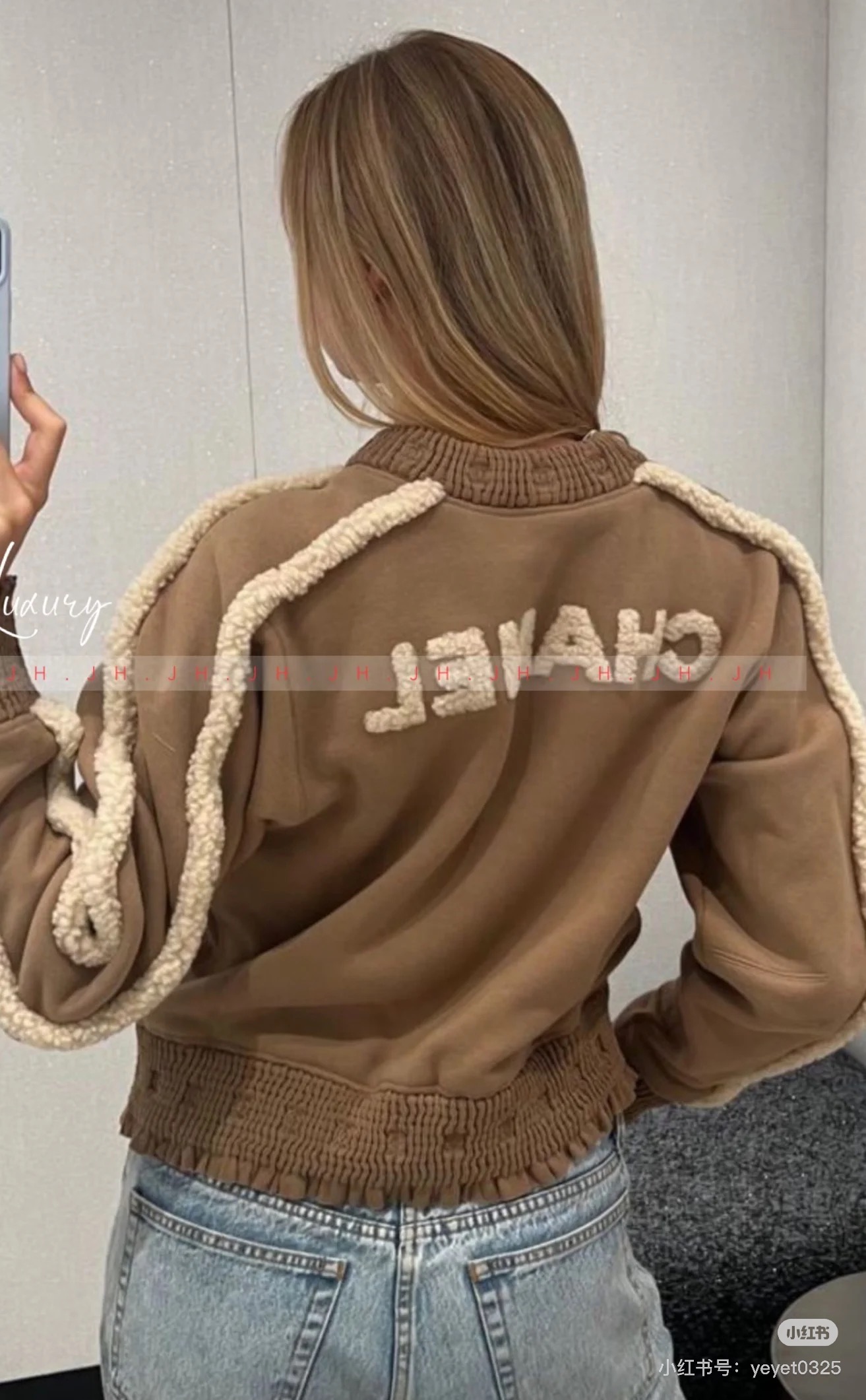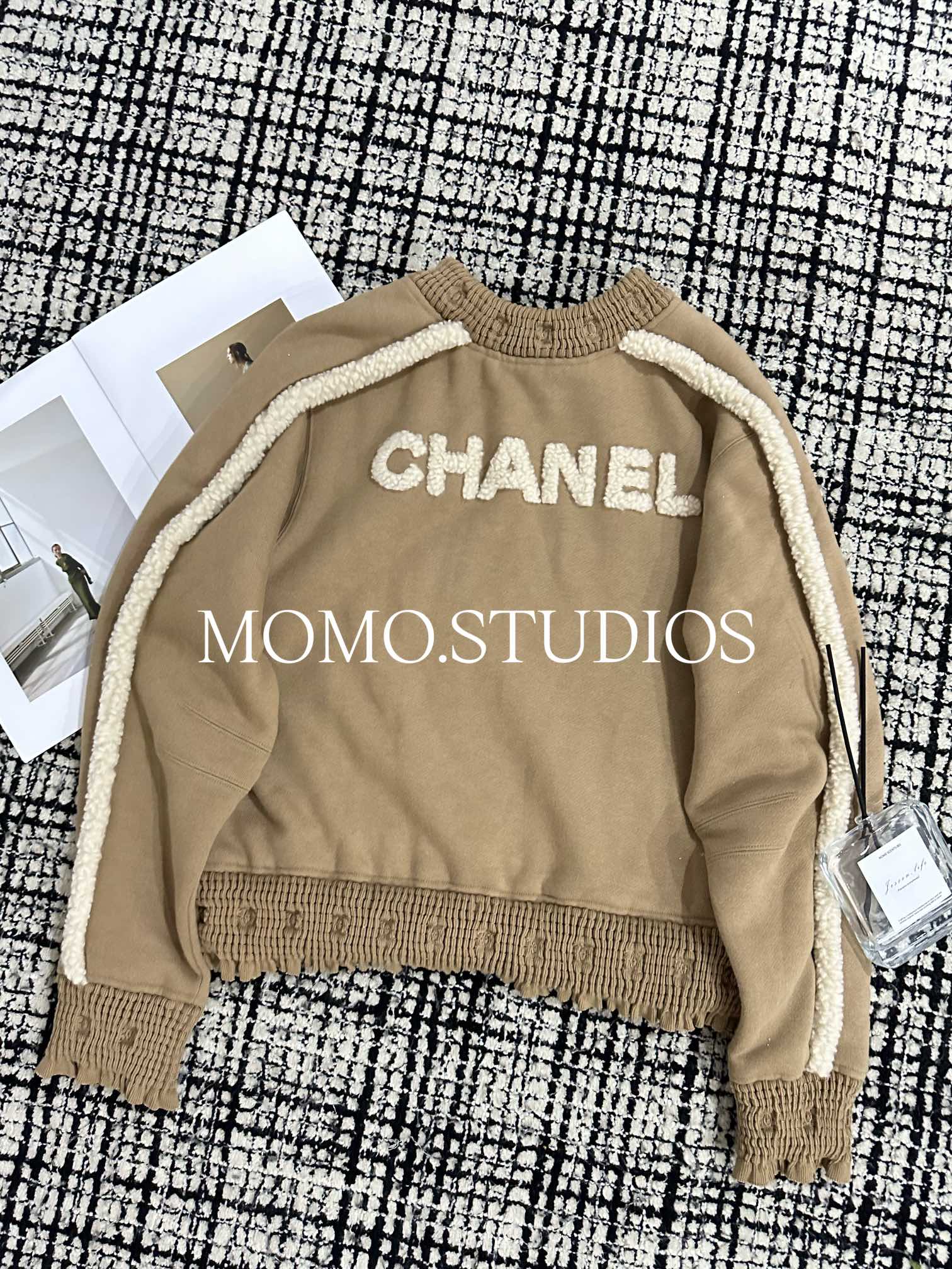 NIGO Chanel Women's Autumn And Winter Letters Double C Logo Brown Teddy Bear Sweatshirt Fashion Trend Casual Colour Blocking Round Neck Tops #nigo71684