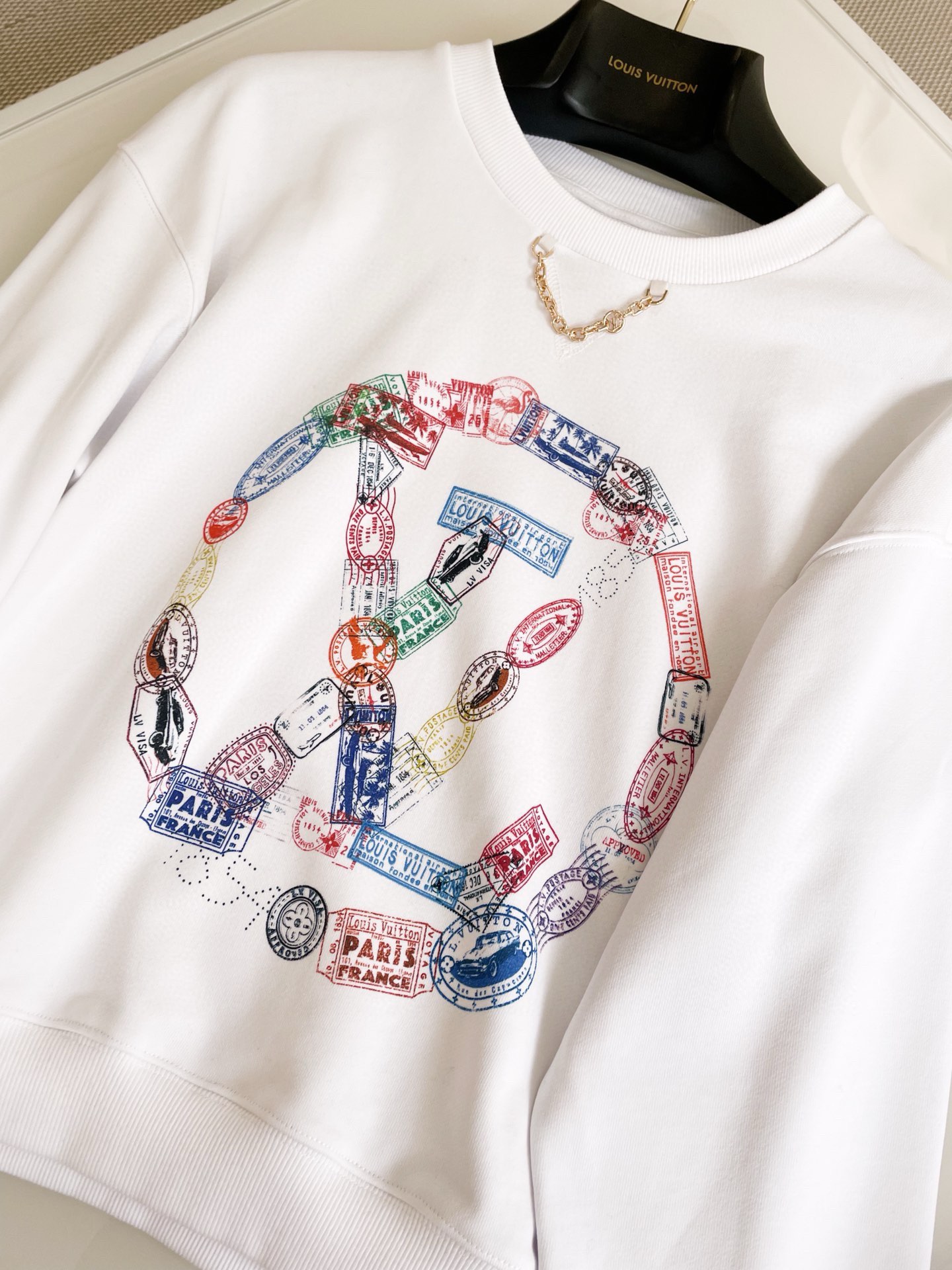 NIGO Louis Vuitton Women's Spring and Autumn White Round Neck Travel Seal Print Long Sleeve Sweatshirt #nigo74178