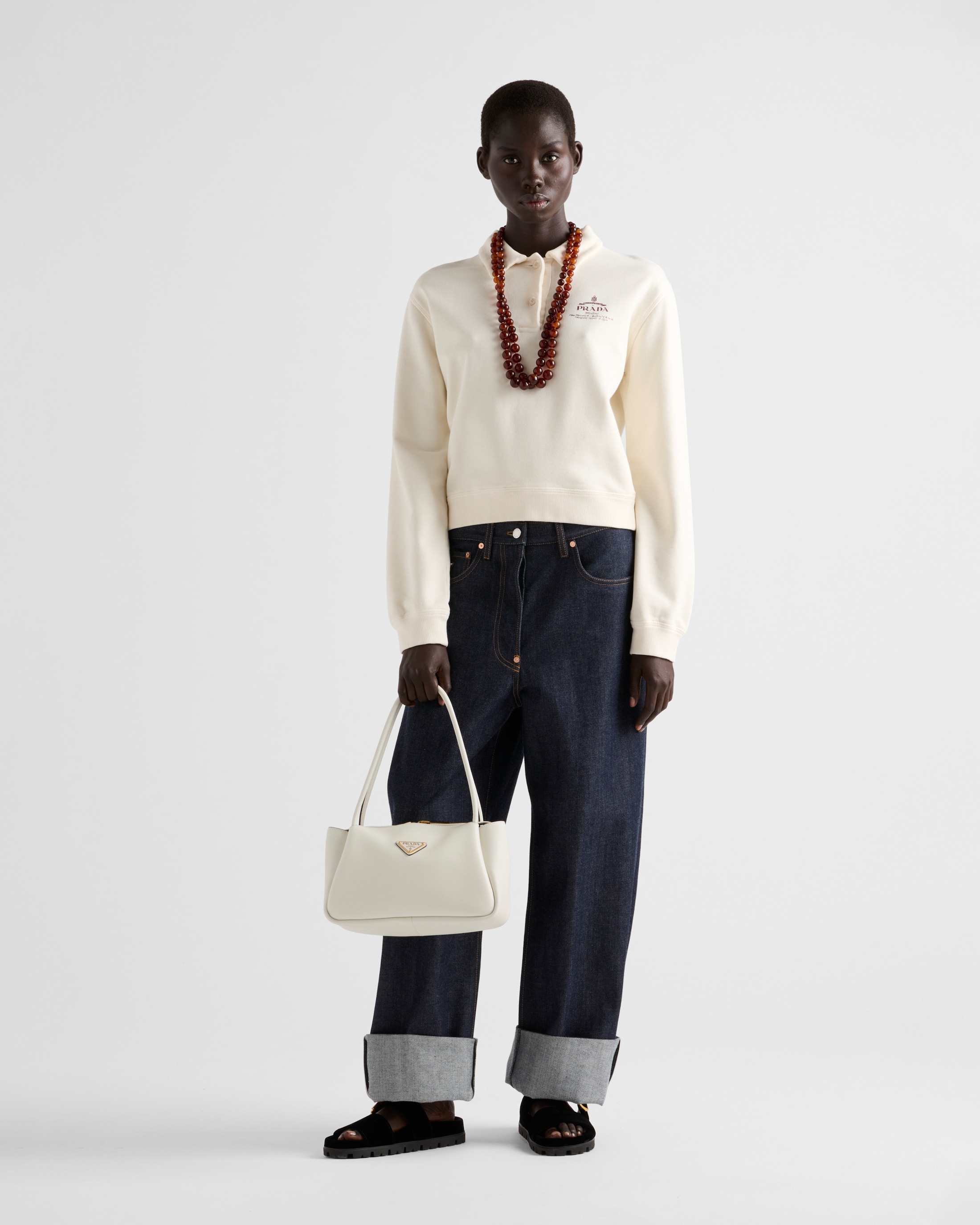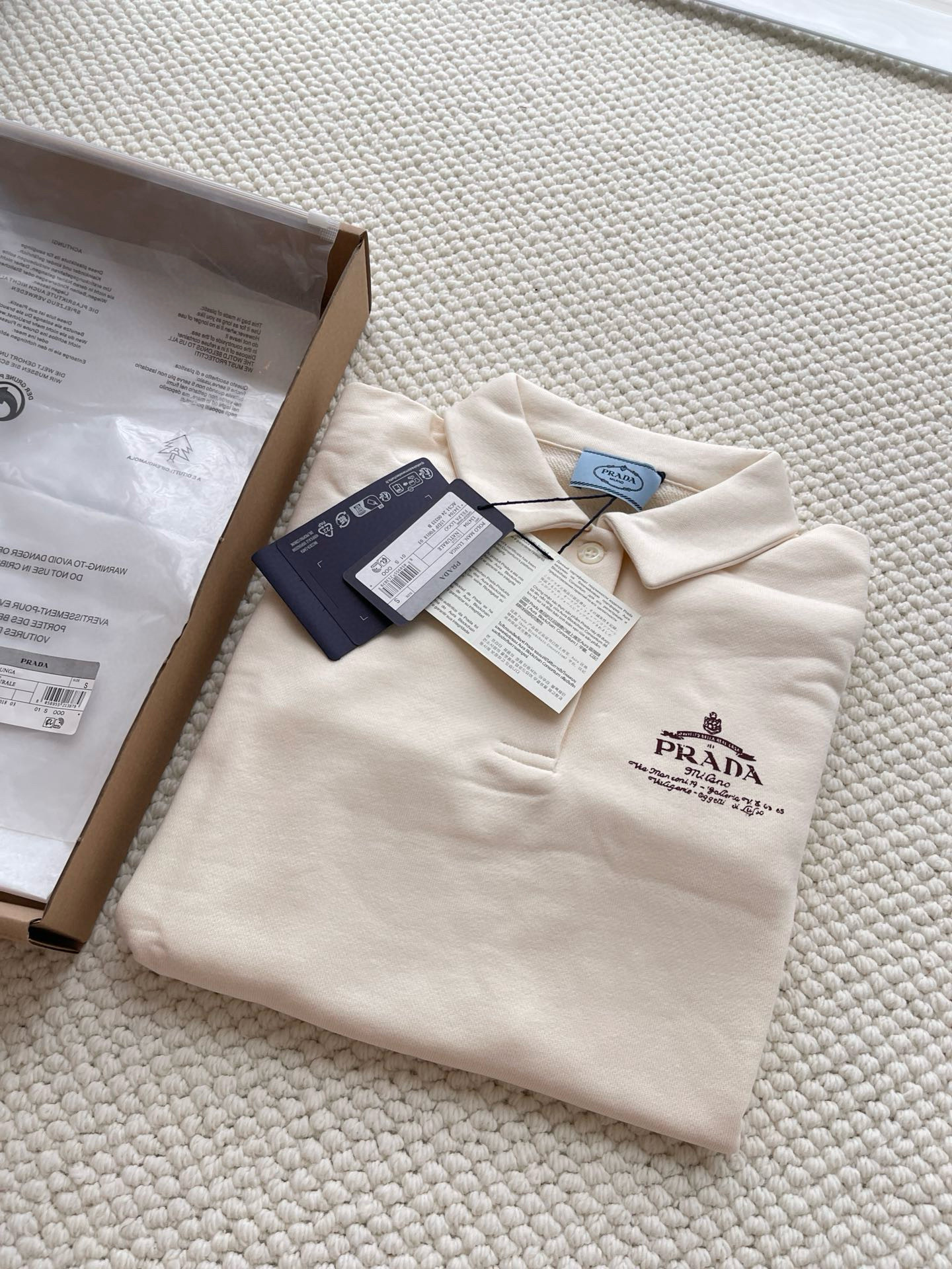 NIGO Prada Cotton Fleece Polo Shirt Women's Fall And Winter White Lapel Long Sleeve Sweatshirt Pullover Logo T-shirt #nigo81542