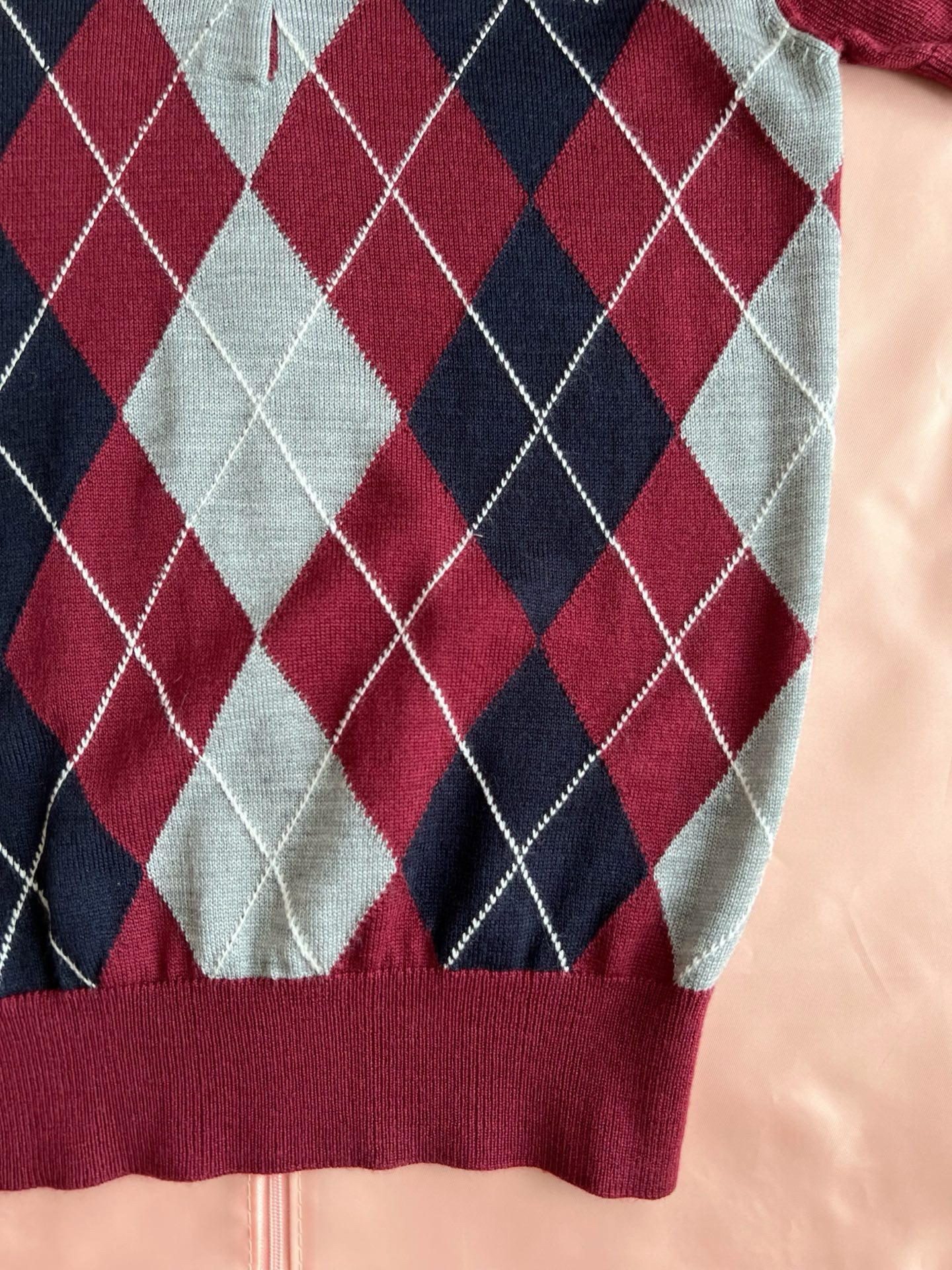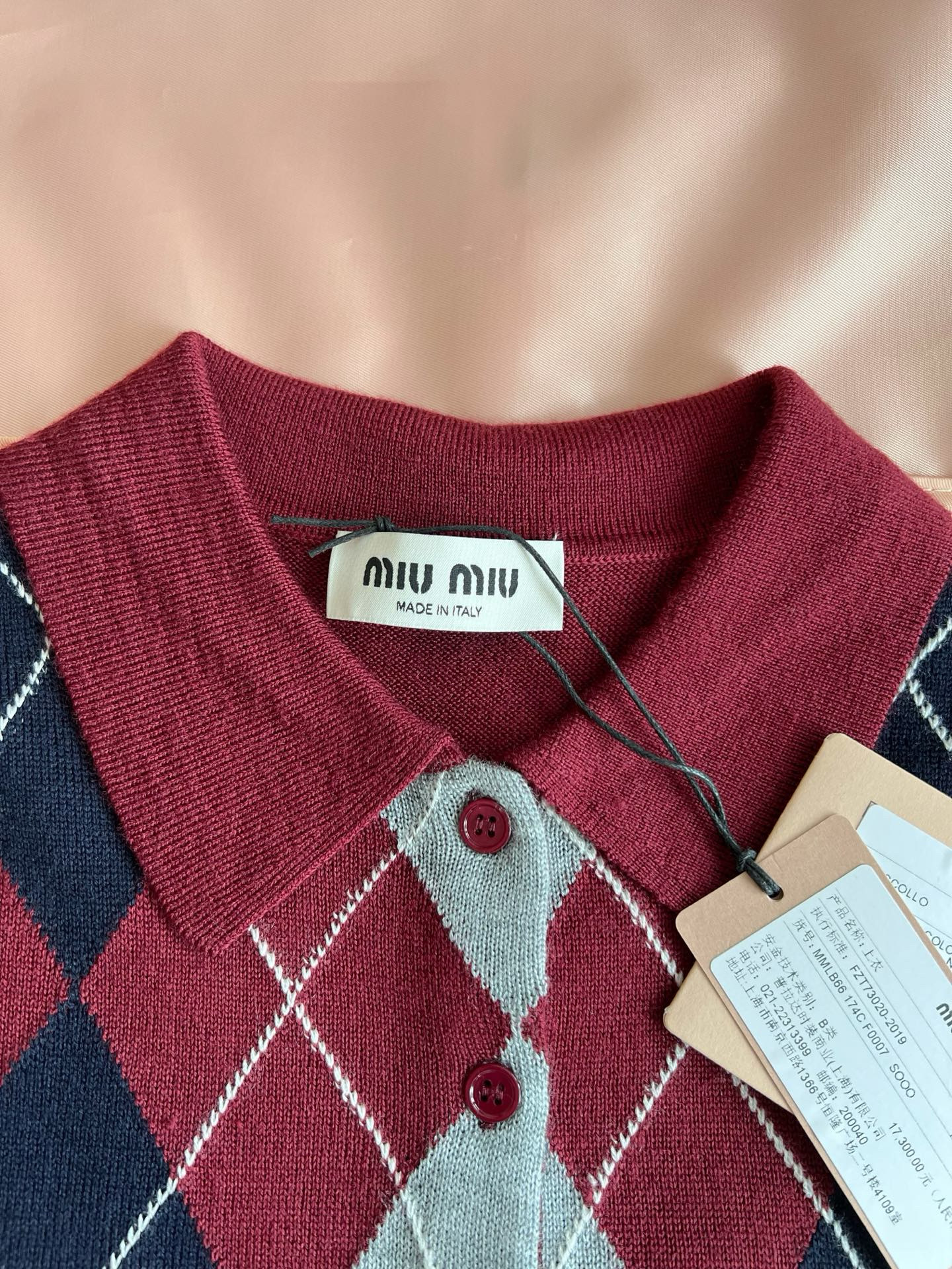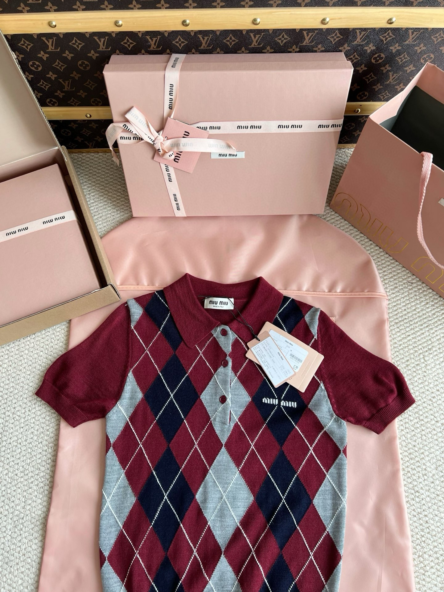 NIGO MiuMiu Women's Summer Fashion Casual Collared Diamond Pattern Wool Polo Shirt Short Sleeve T-shirt #nigo78464
