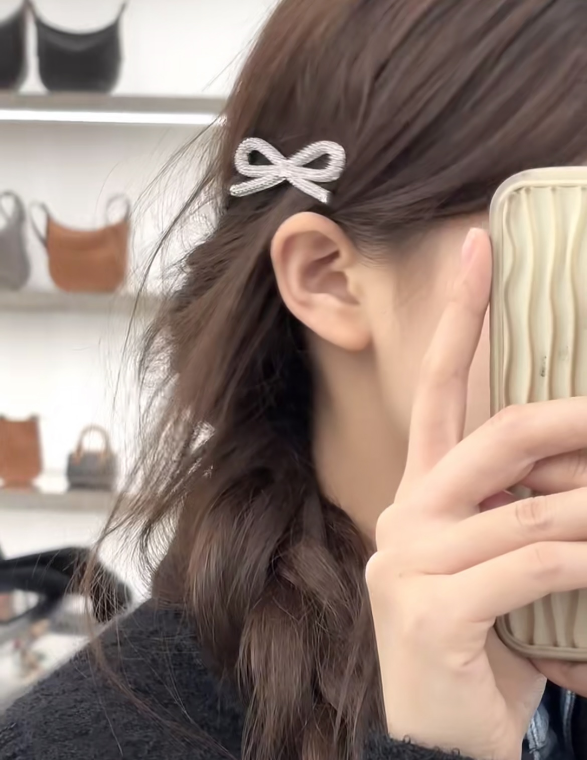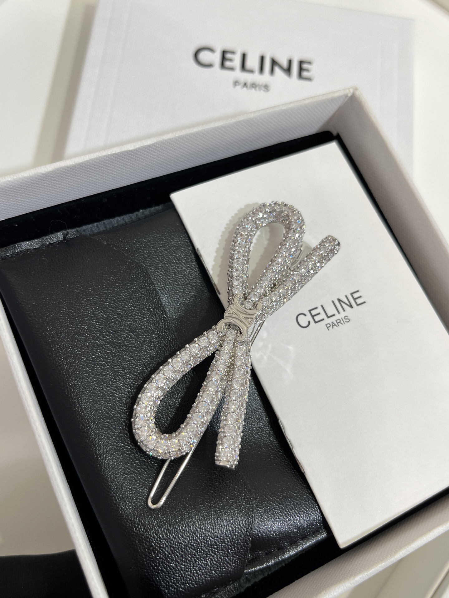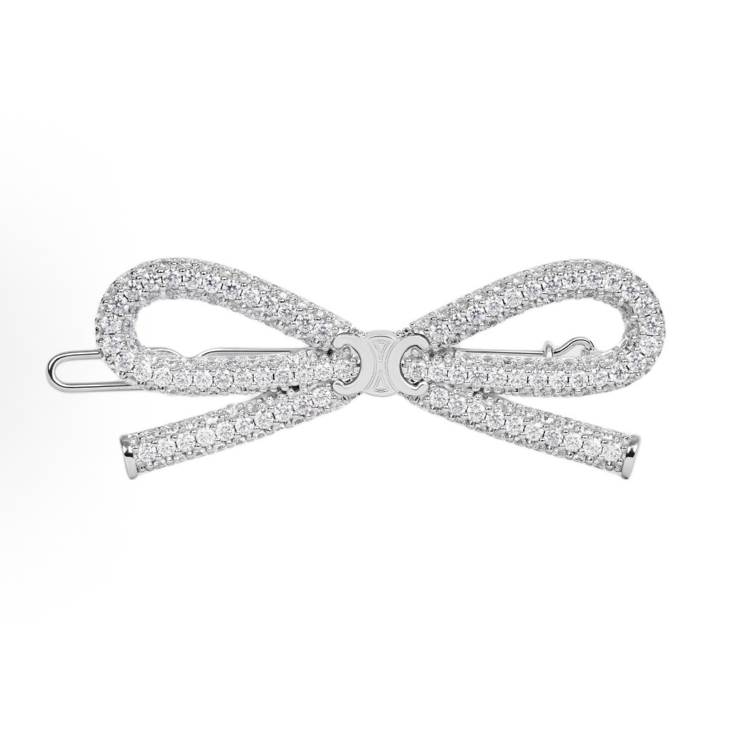 NIGO Celing Logo Design Brass Crystal Rhodium Plated Rhinestone Hair Clip Women's Silver #nigo317355
