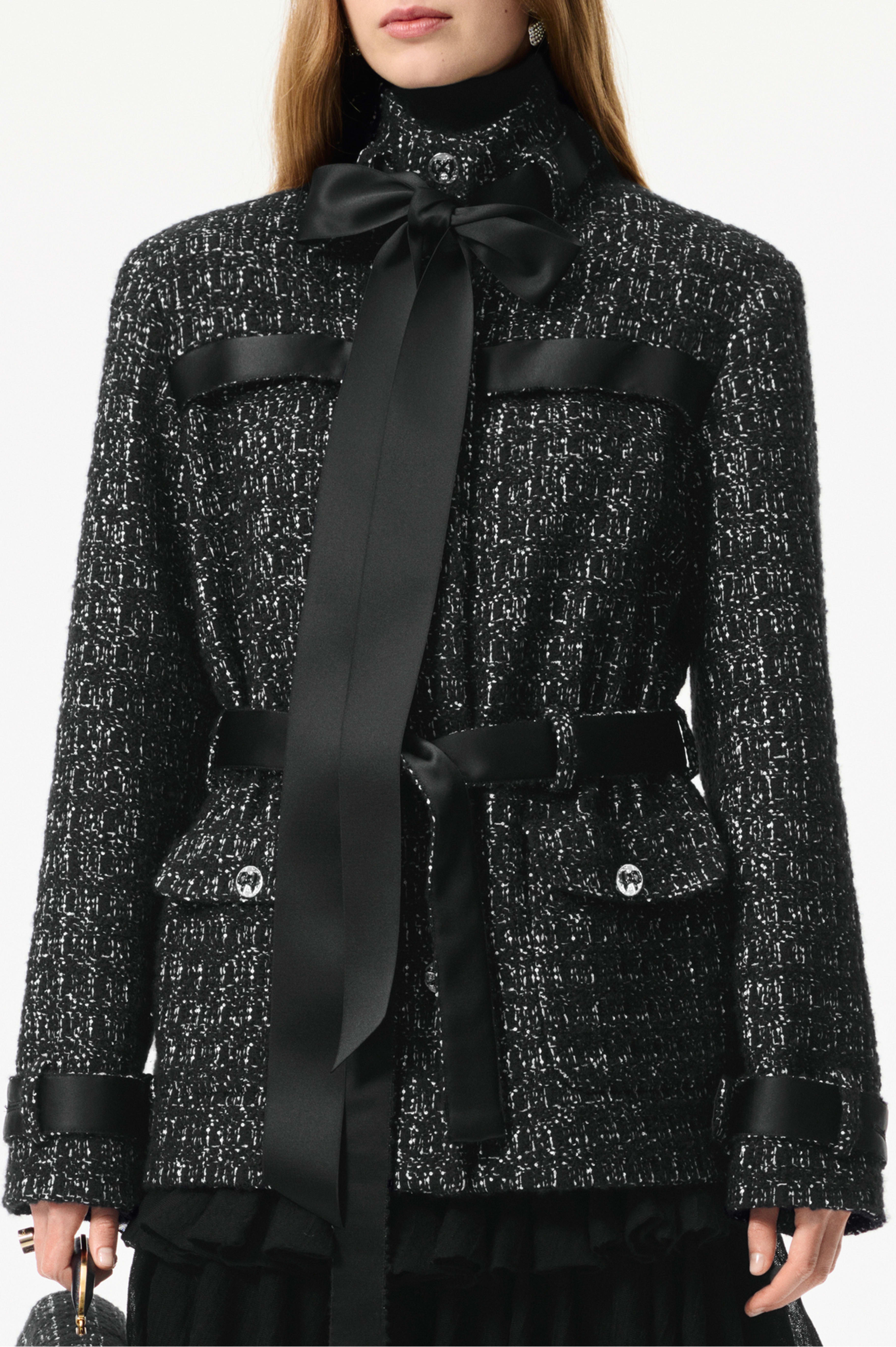 NIGO Chanel 25FW Women's Tunic Jacket Cashmere Tweed Thick Flower Stand Collar Mid Length Style #nigo332919