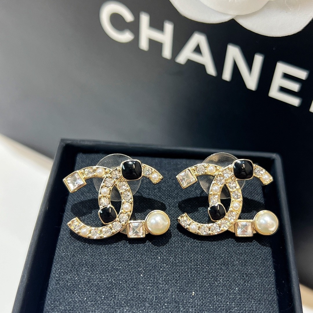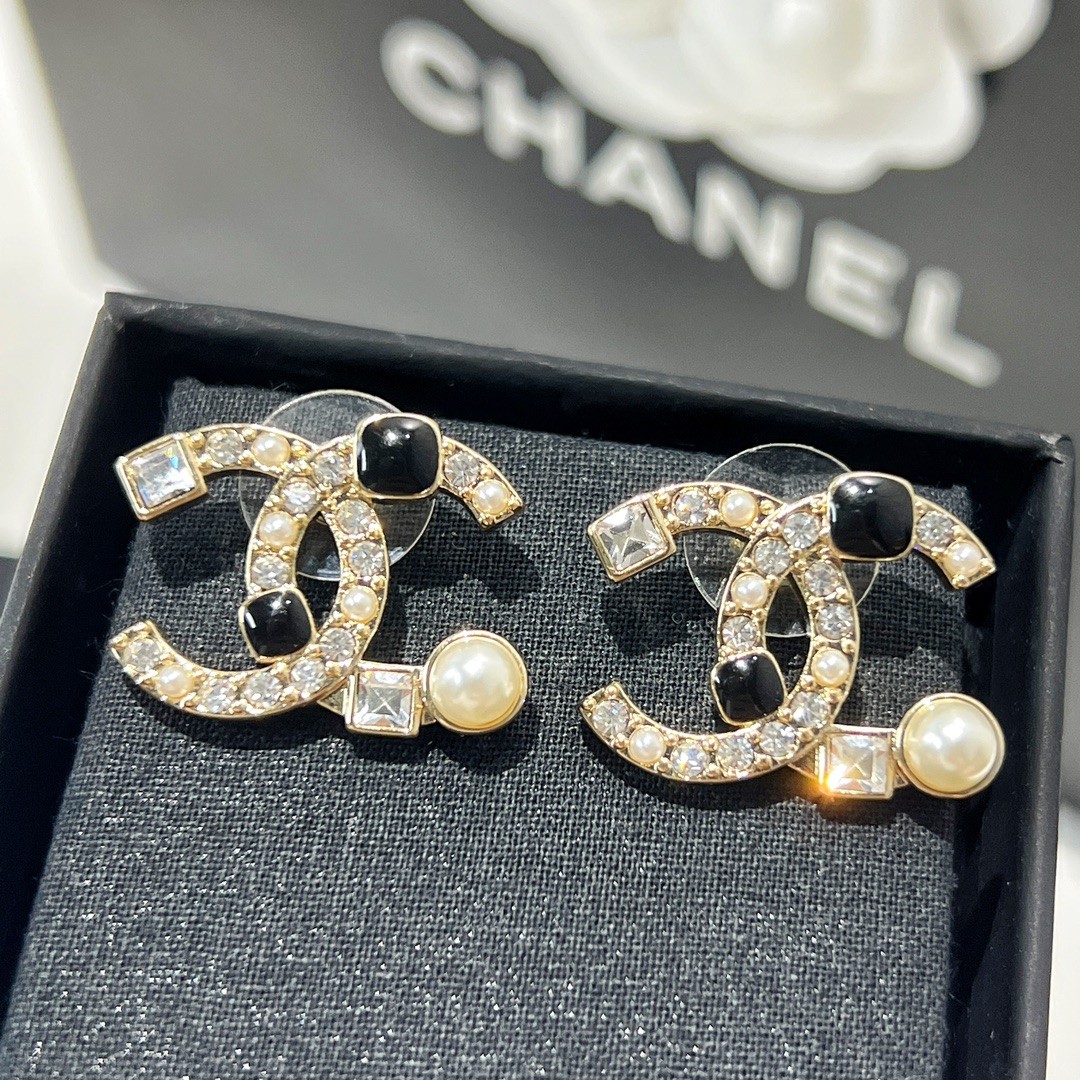 NIGO Chanel Women's Lucite Pearl Crystal Double C Gold Earrings #nigo89578