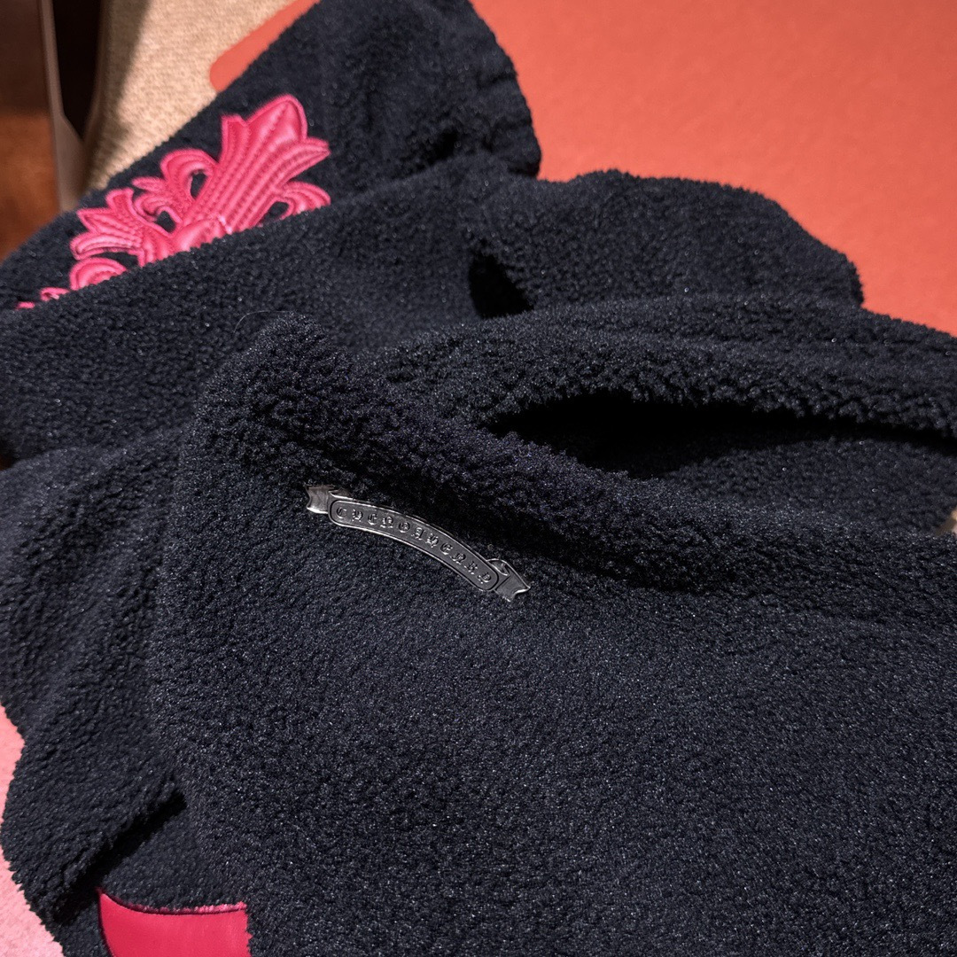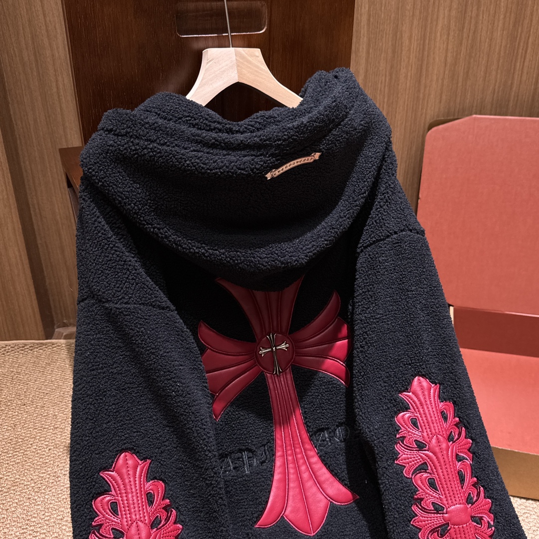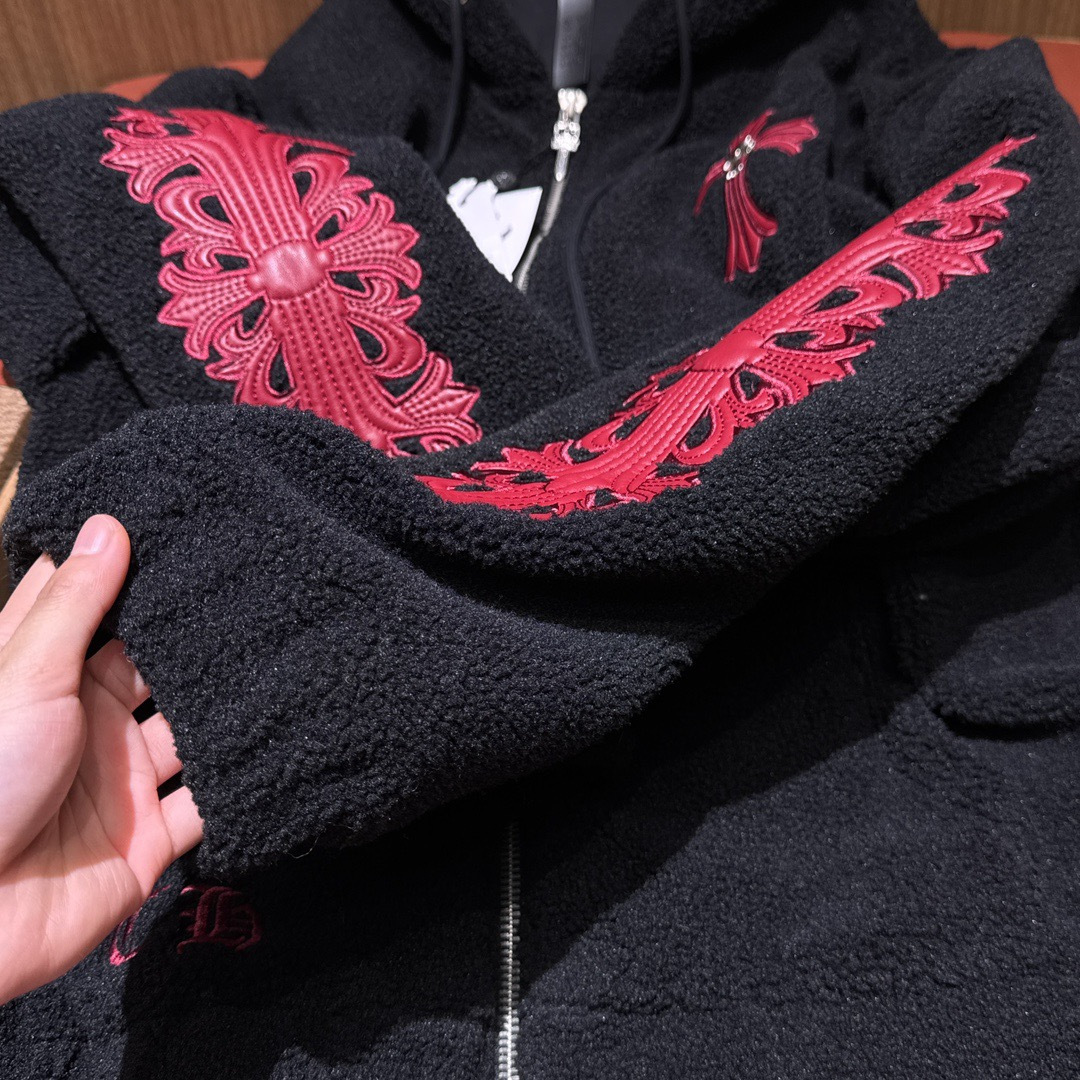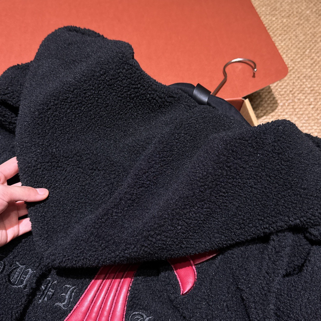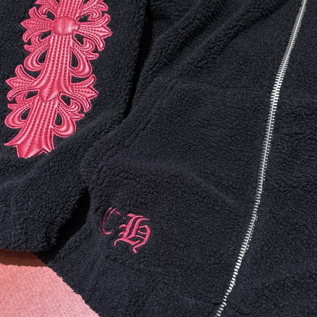 NIGO Chrome Women's and Men's Fall/Winter Hearts Polar Fleece Red Leather Cross Coat Embroidered Flowers #nigo332923