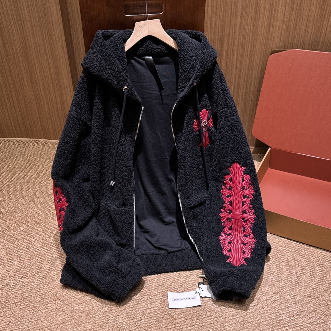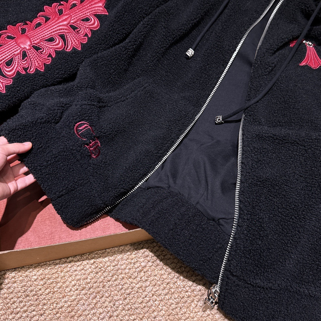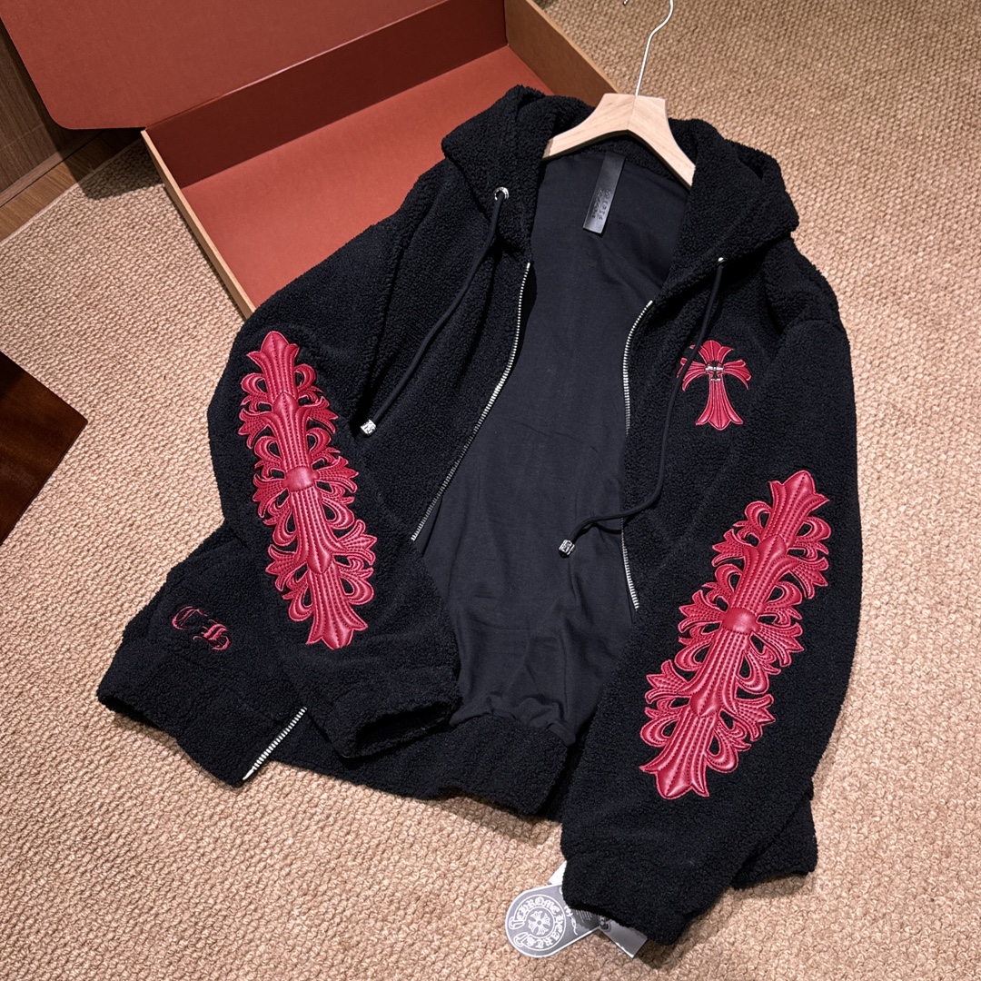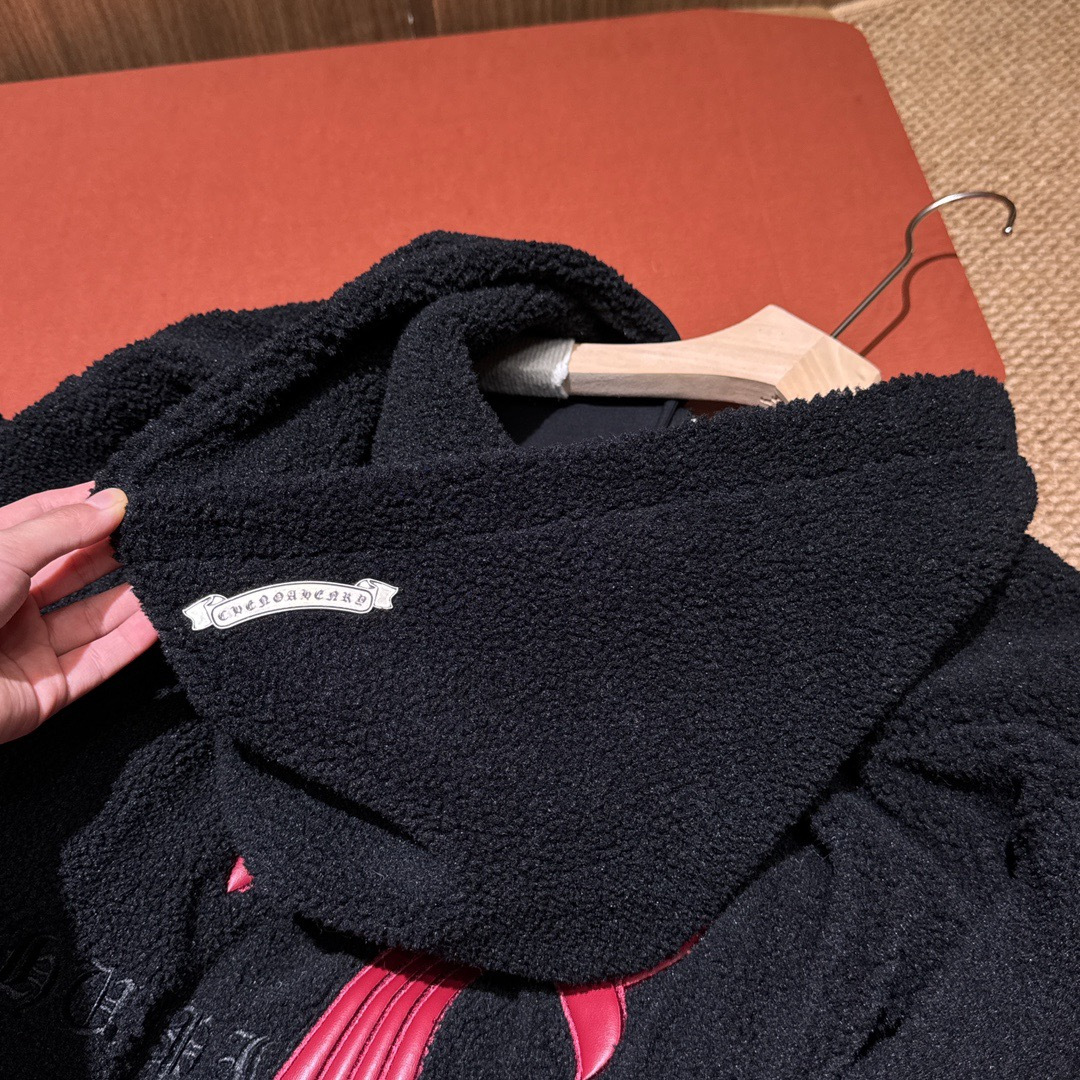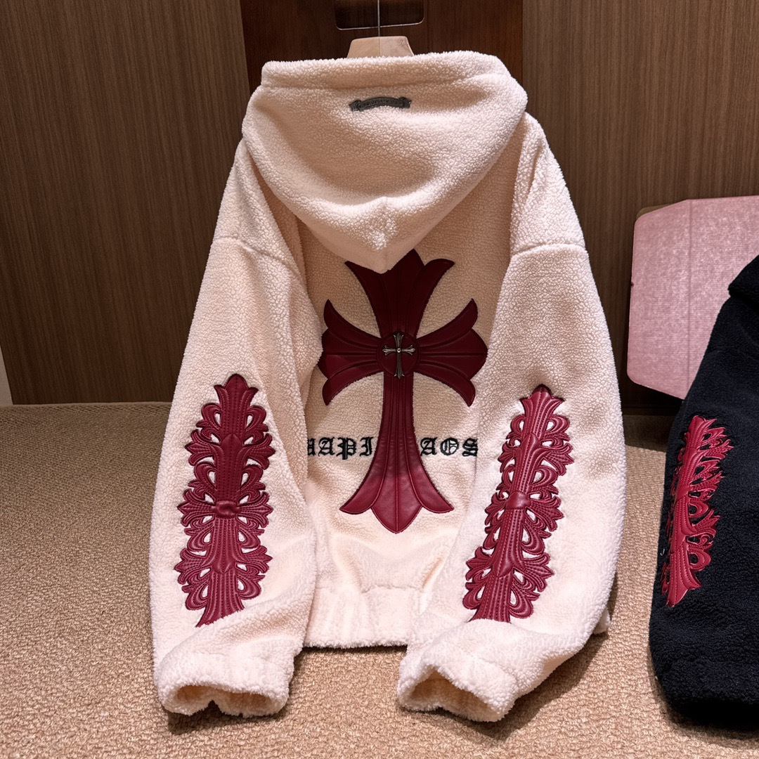 NIGO Chrome Women's and Men's Fall/Winter Hearts Polar Fleece Red Leather Cross Coat Embroidered Flowers #nigo332923