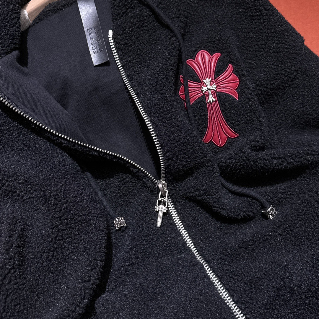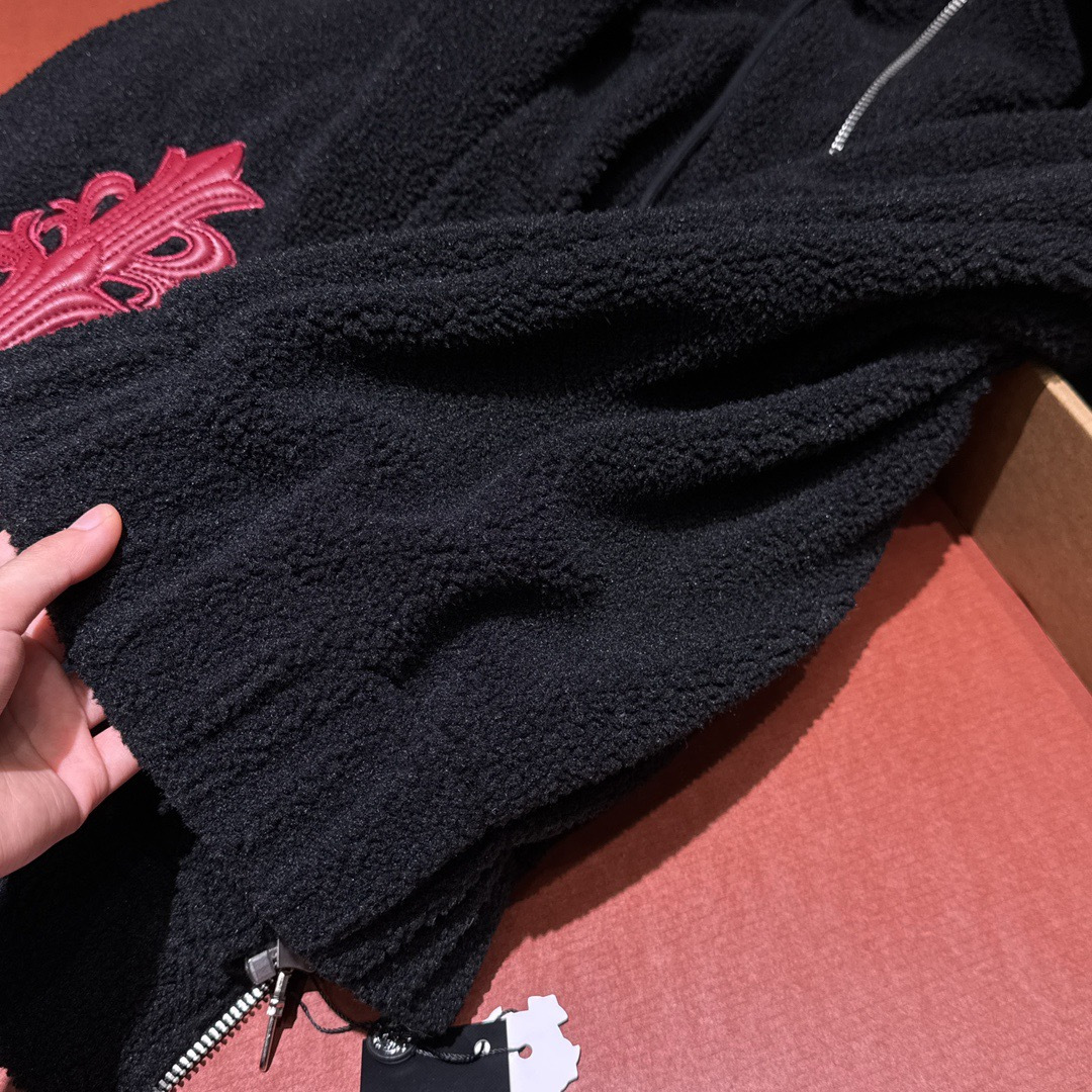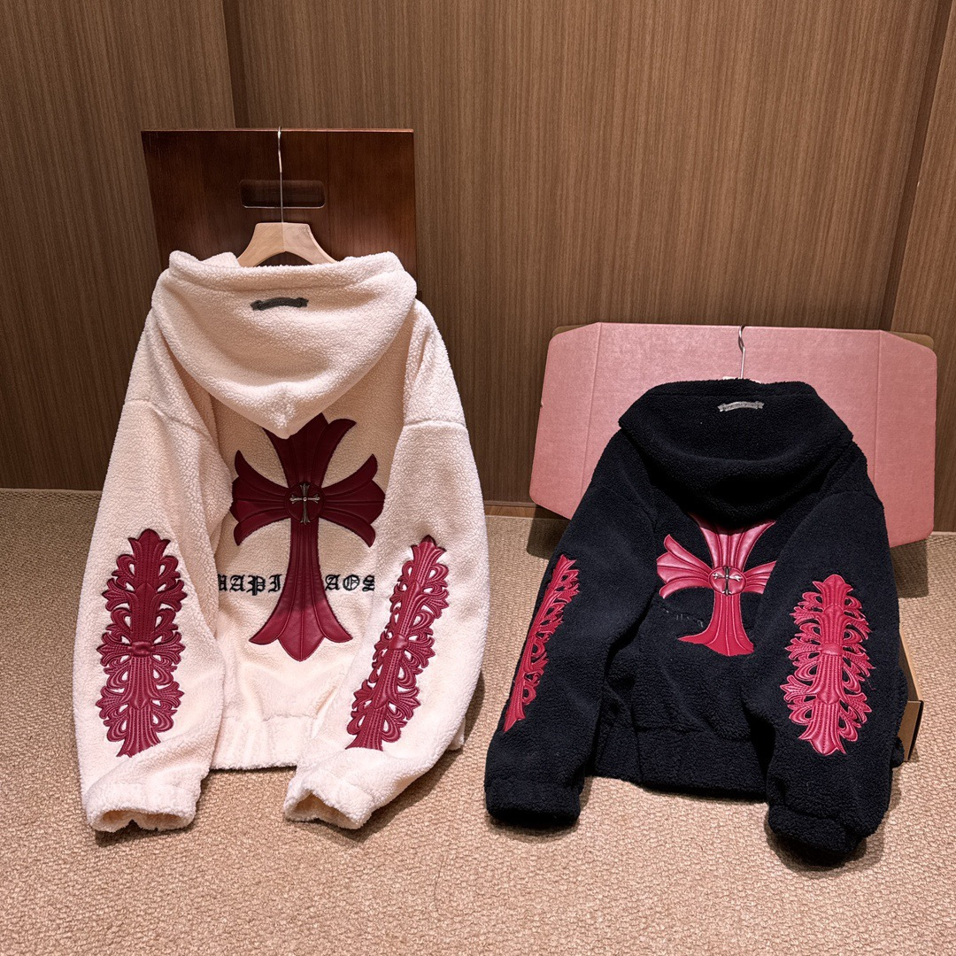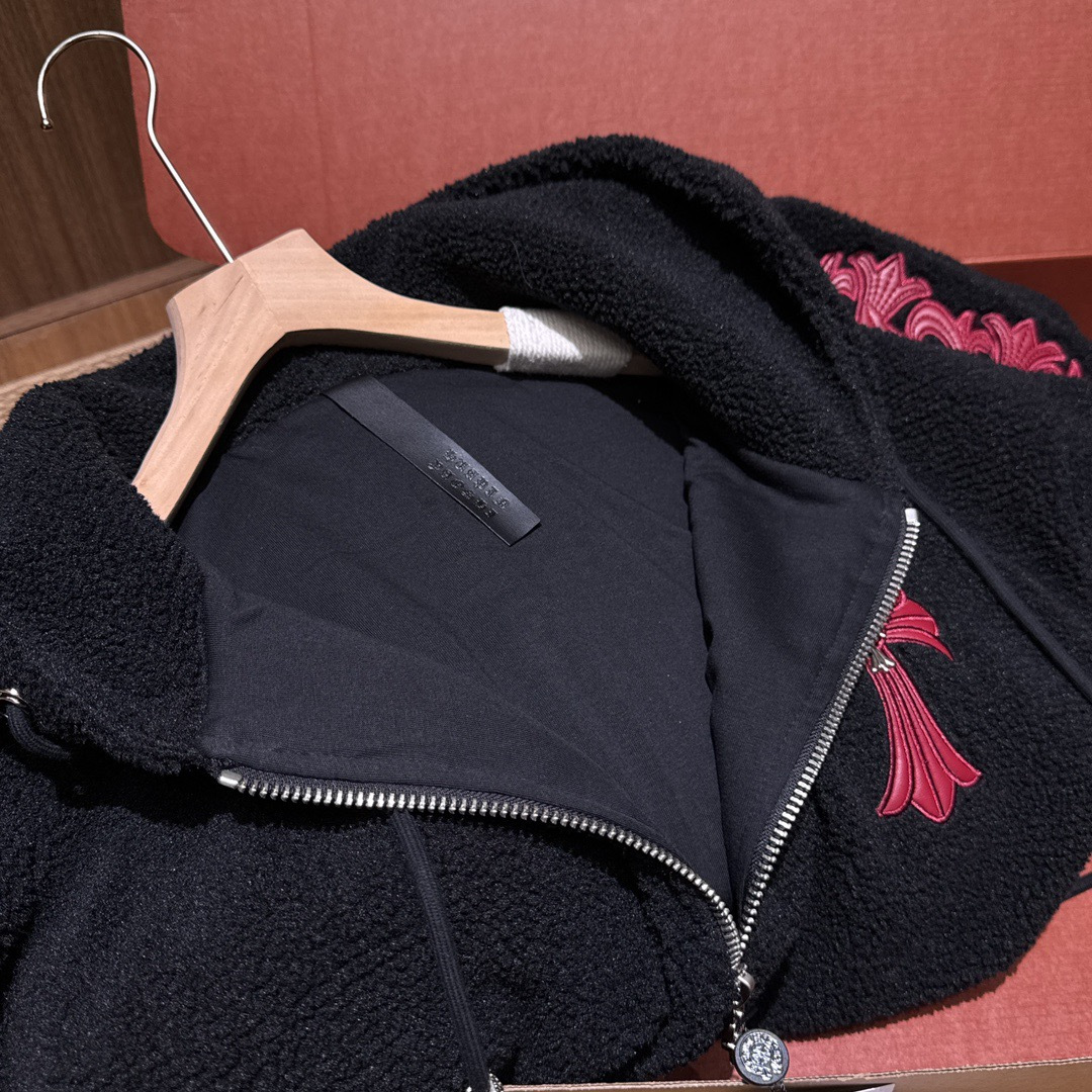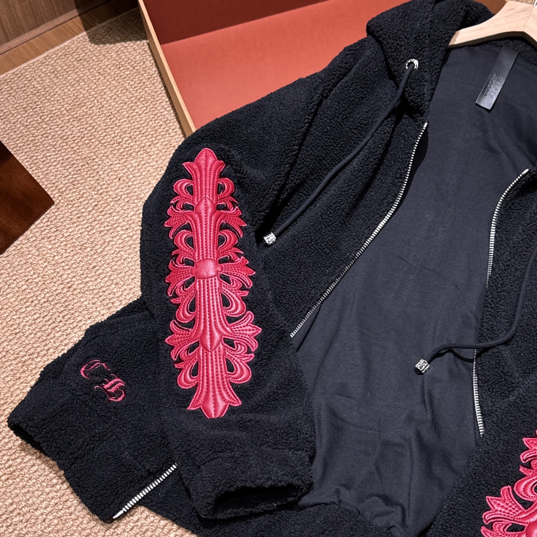 NIGO Chrome Women's and Men's Fall/Winter Hearts Polar Fleece Red Leather Cross Coat Embroidered Flowers #nigo332923