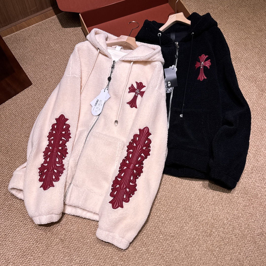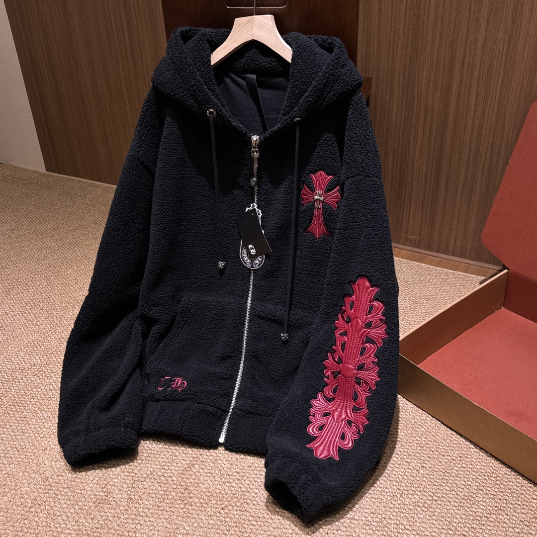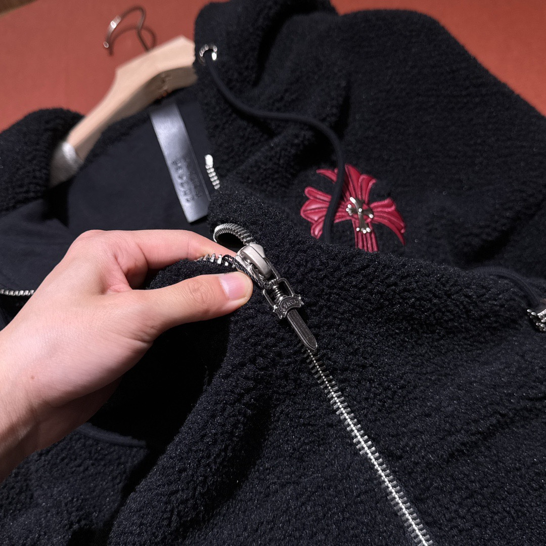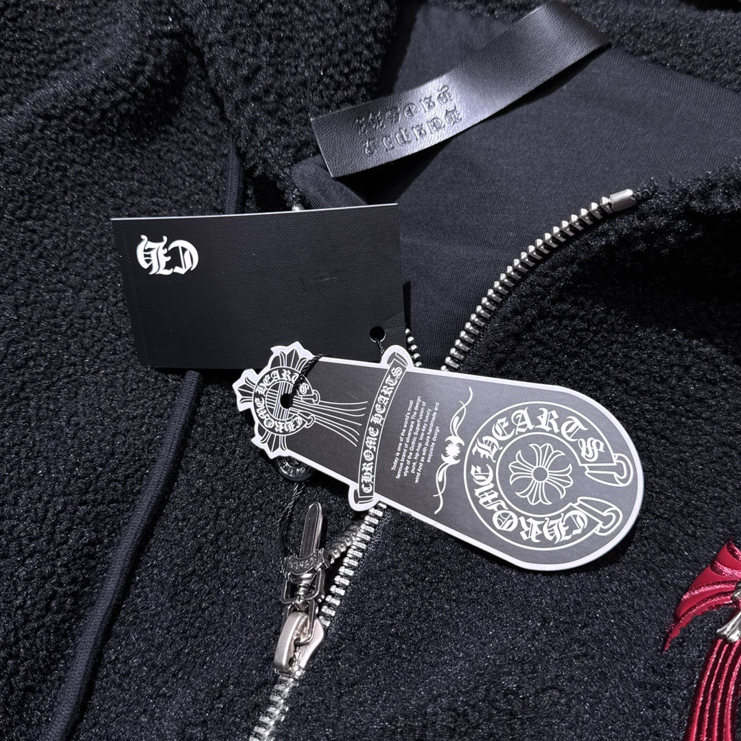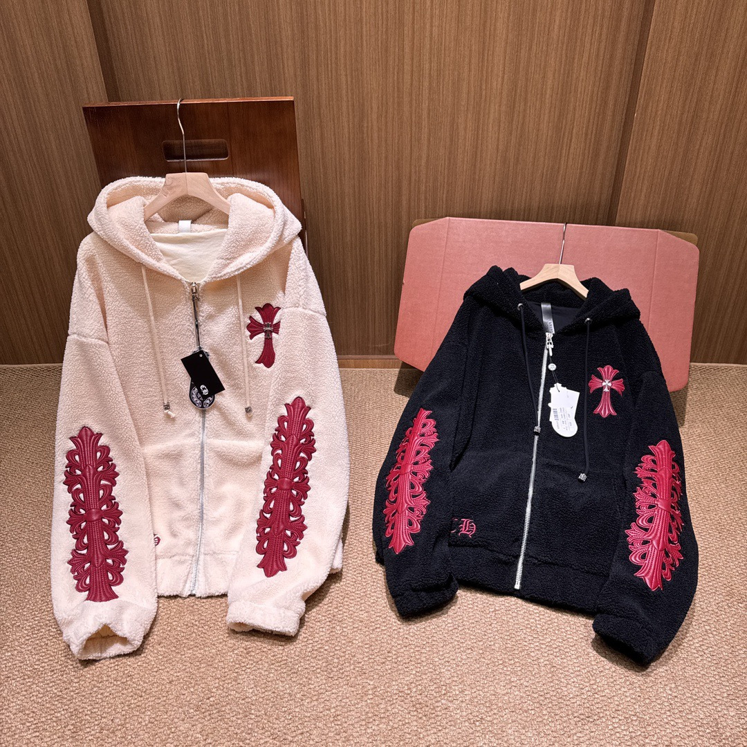 NIGO Chrome Women's and Men's Fall/Winter Hearts Polar Fleece Red Leather Cross Coat Embroidered Flowers #nigo332923