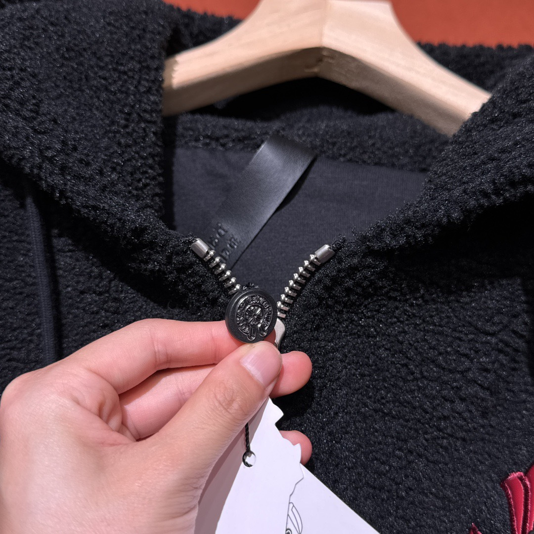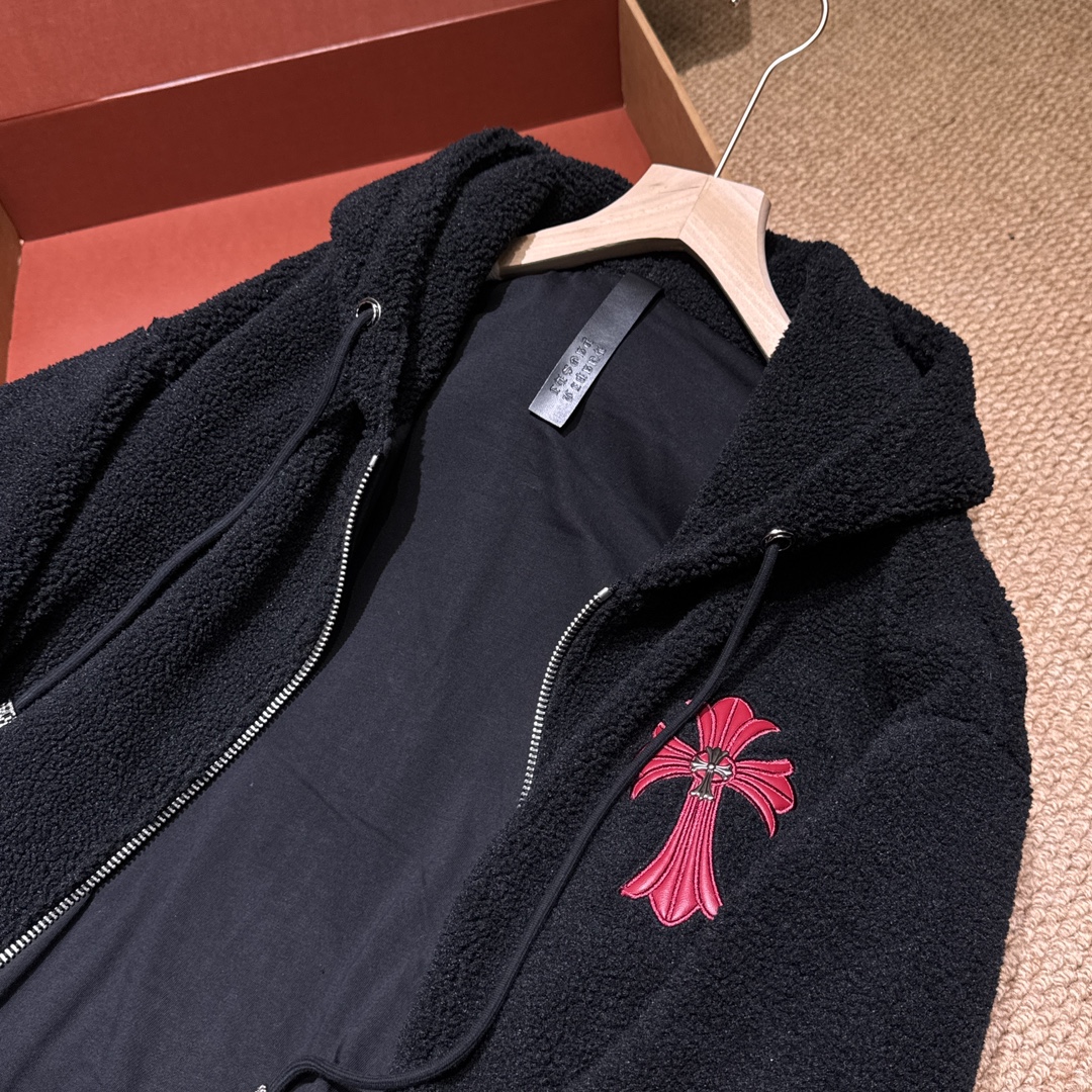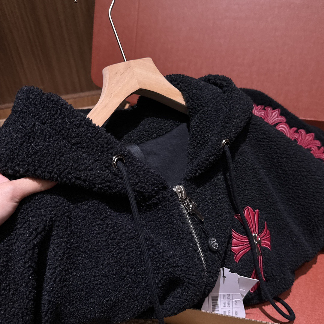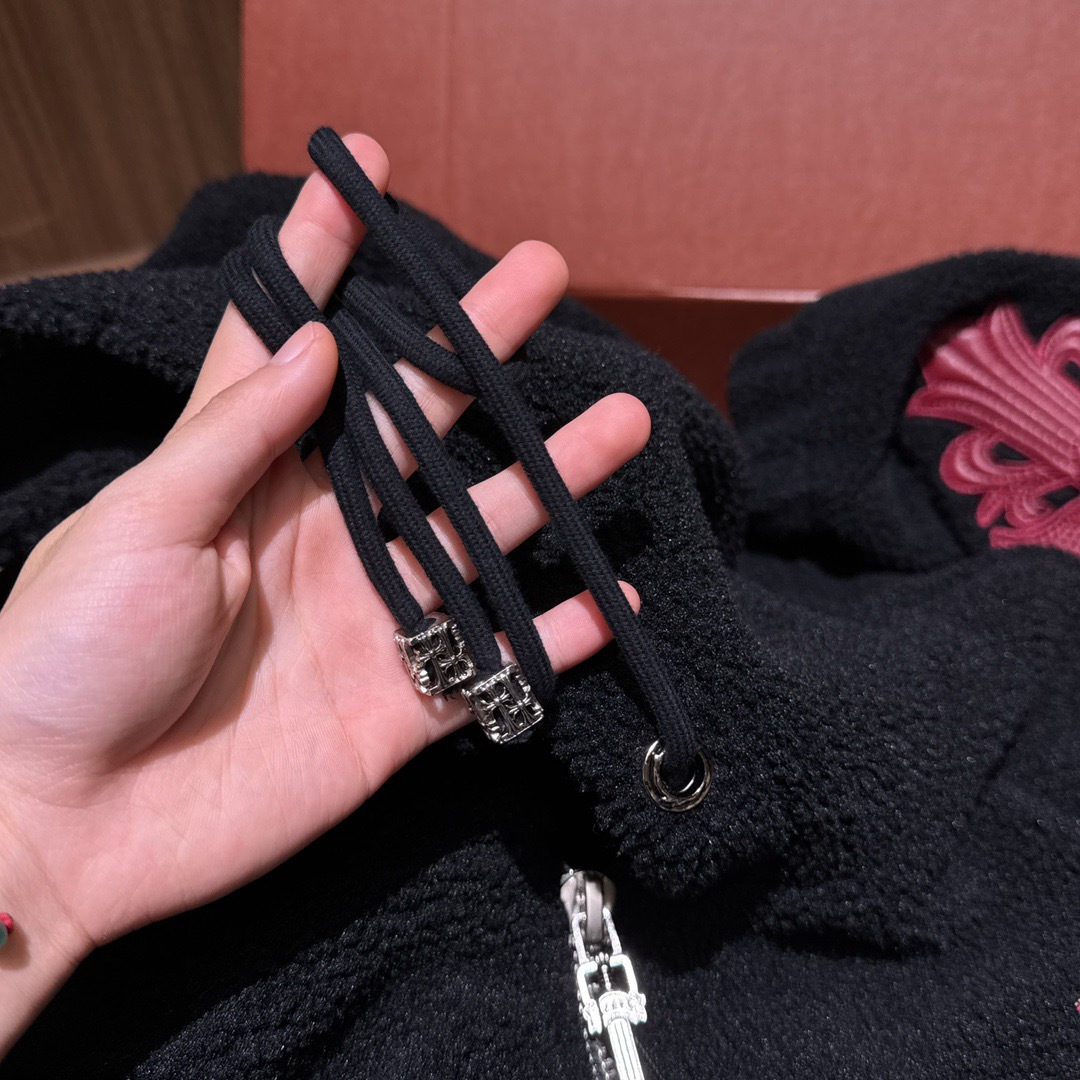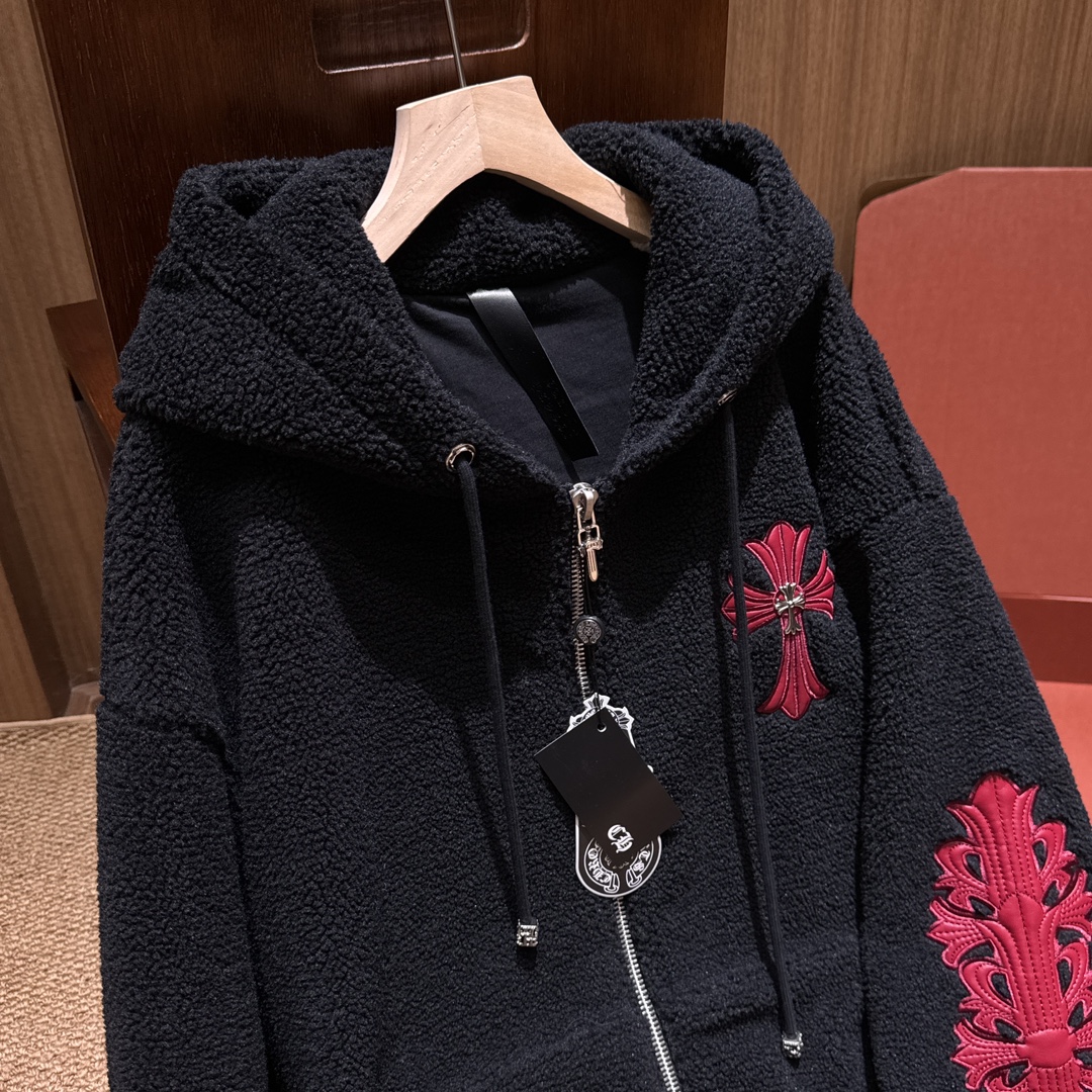NIGO Chrome Women's and Men's Fall/Winter Hearts Polar Fleece Red Leather Cross Coat Embroidered Flowers #nigo332923