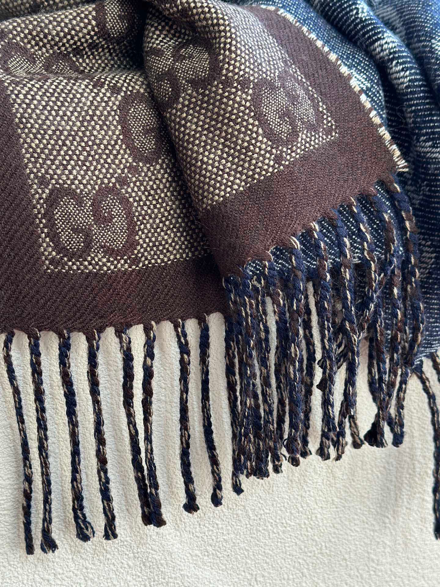 Double G pendant for the classic wool scarf, the iconic logo graphics for this scarf into the avant-garde atmosphere, eye-catching brand logo, very recognizable and big name sense, exaggerated face value, wall breaks recommended.