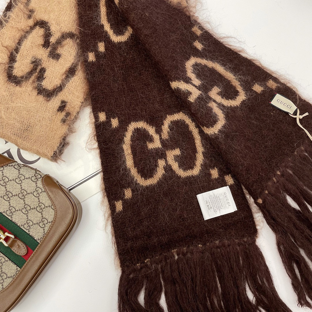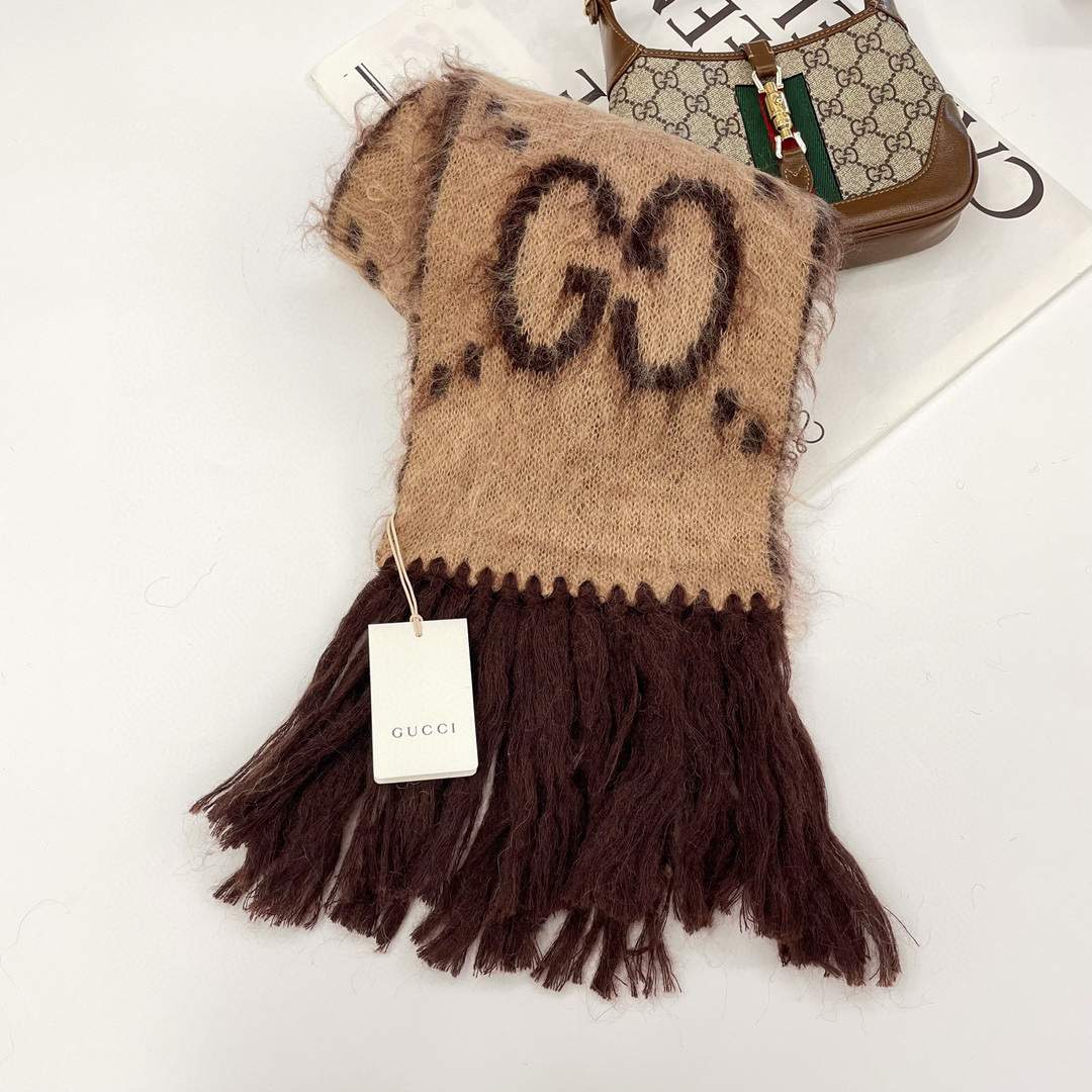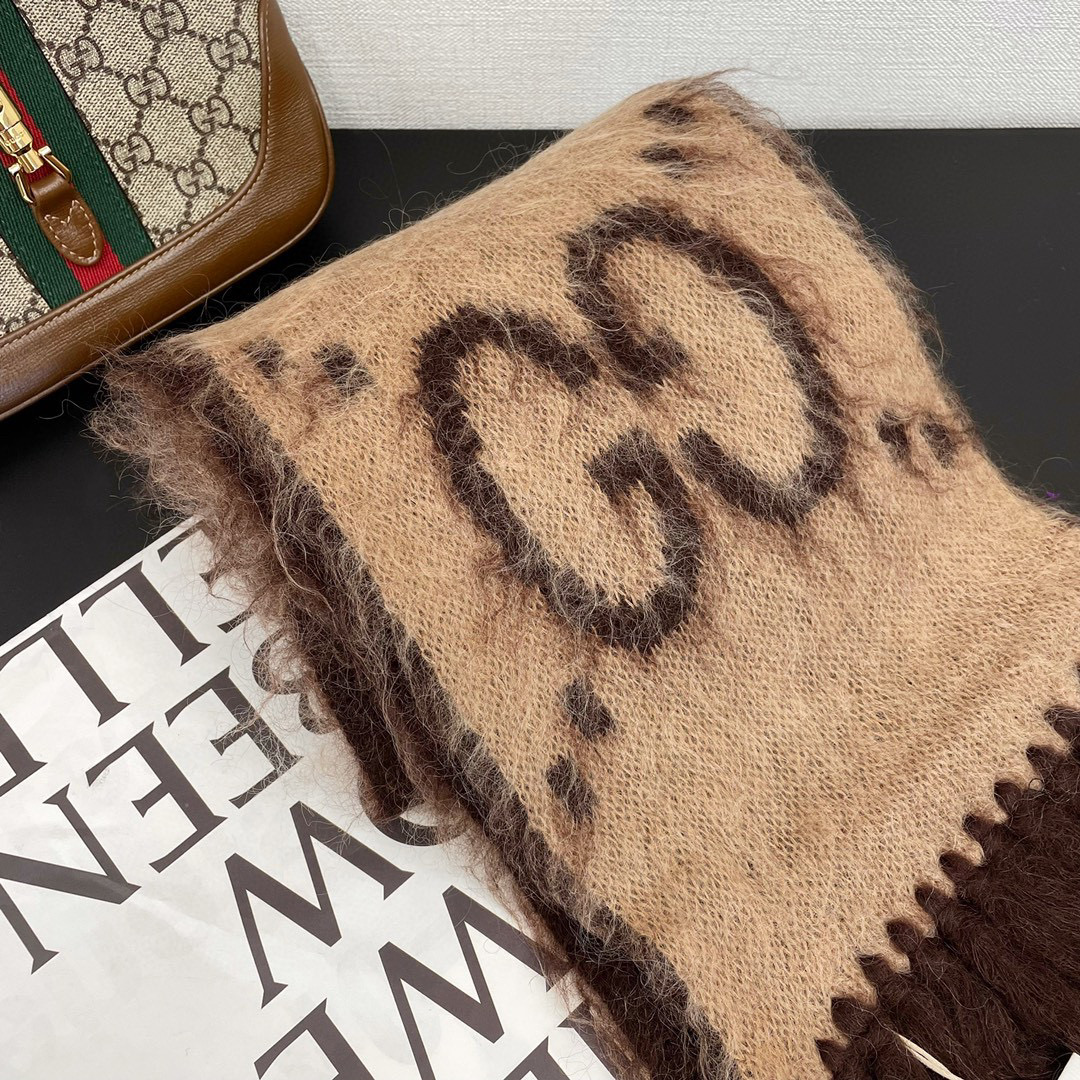 NIGO Gucci Men's and Women's GG Mohair Wool Blend Fringe Scarf #nigo96862