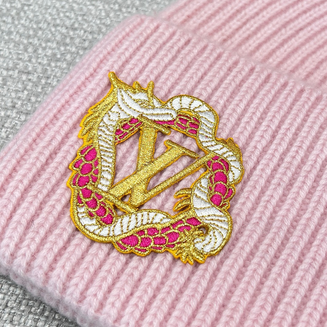 NIGO Louis Vuitton Women's Autumn and Winter Embroidery Pan Long Patch Logo Pink Woolen Fleece Hat Scarf Set #nigo98115
