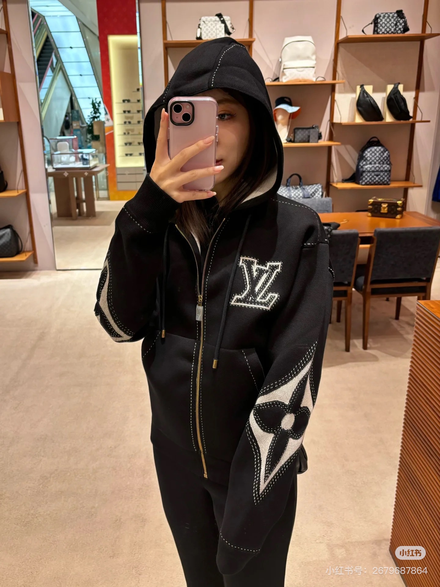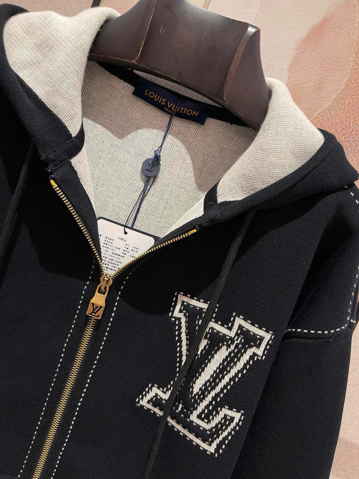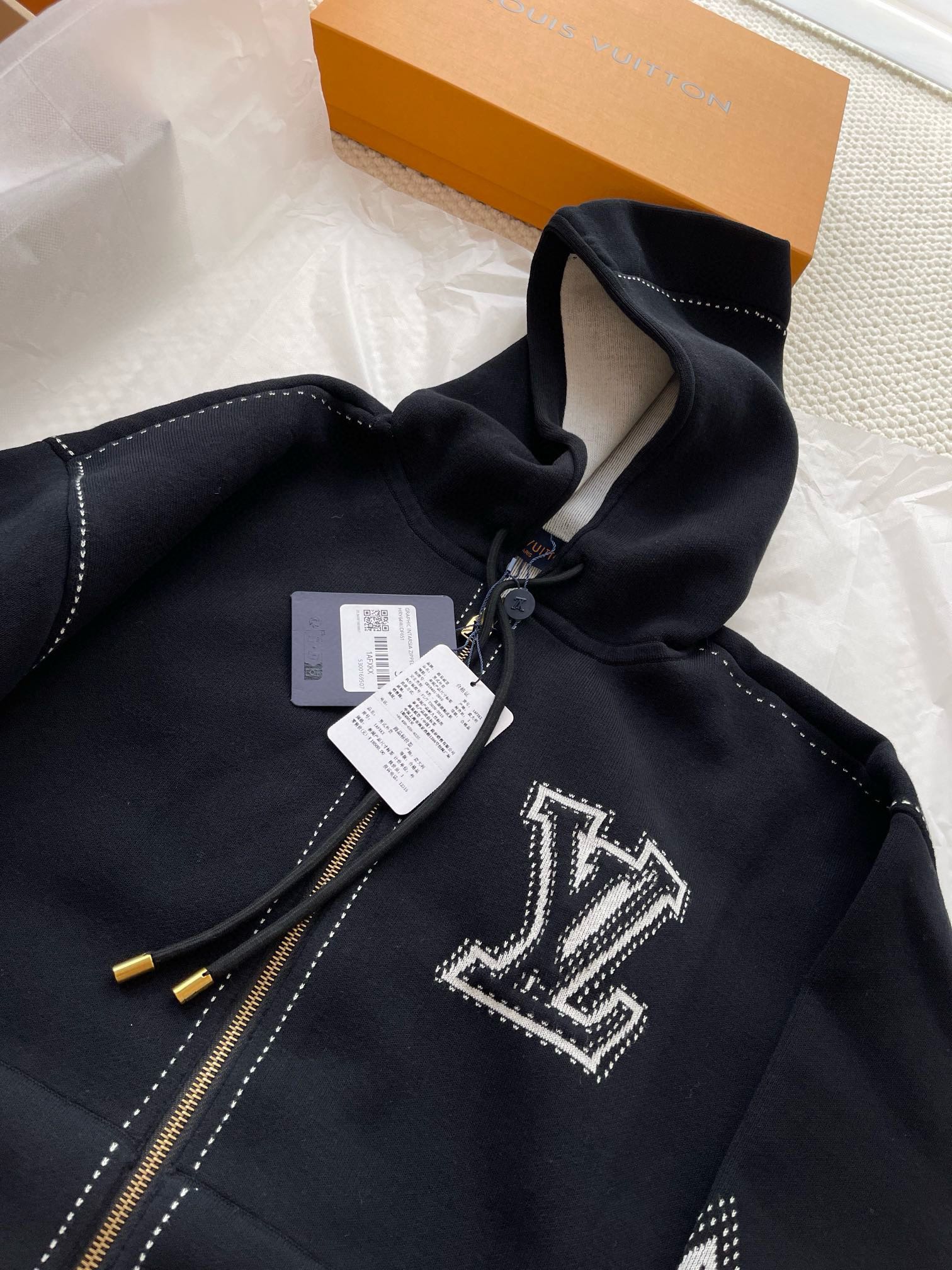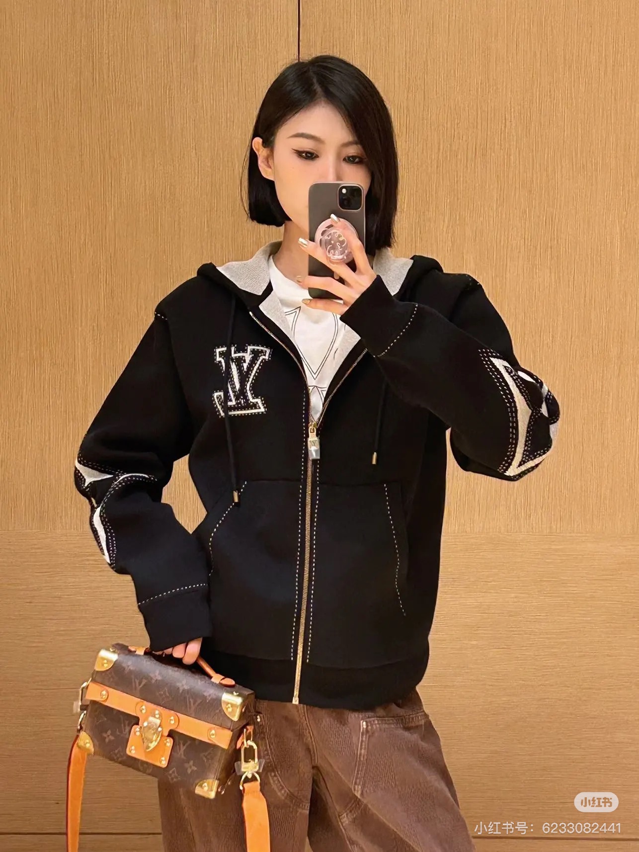 NIGO Louis Vuitton Women's Fall/Winter Black Logo Applique Zipper Hooded Long Sleeve Jacket #nigo73154