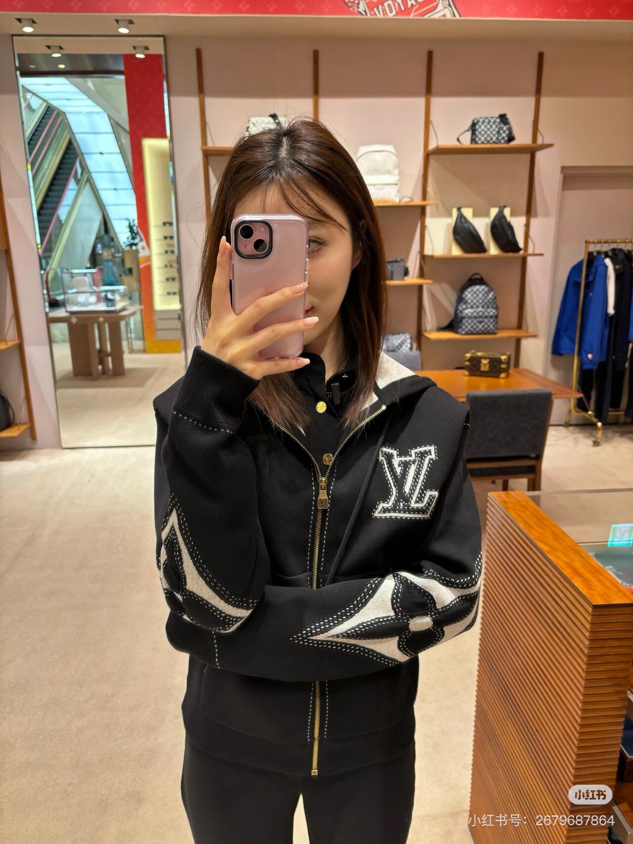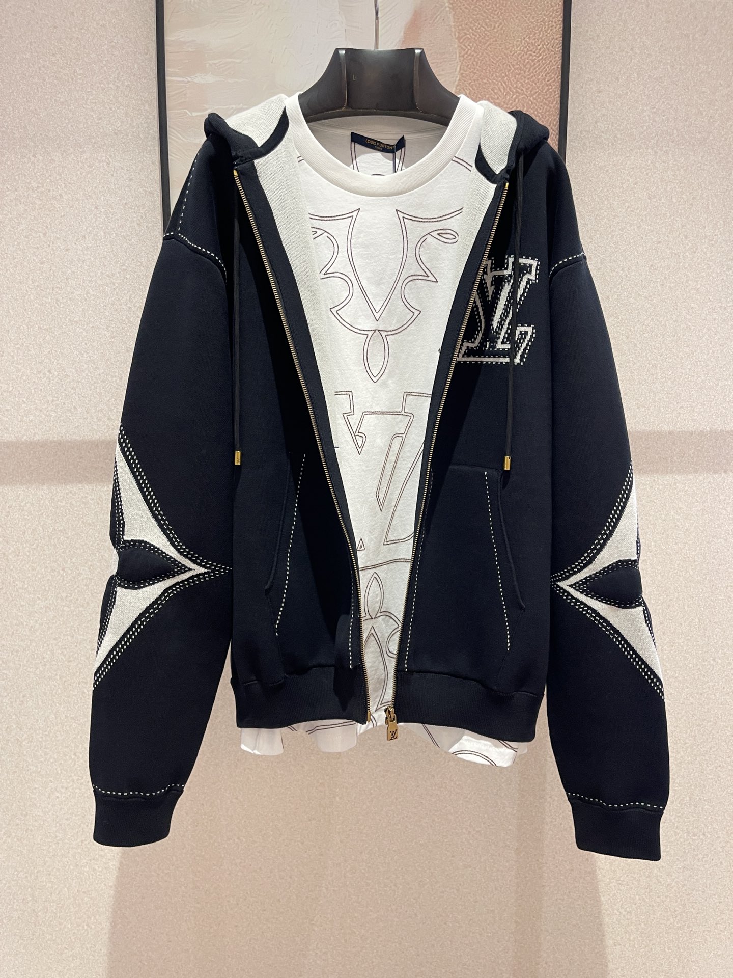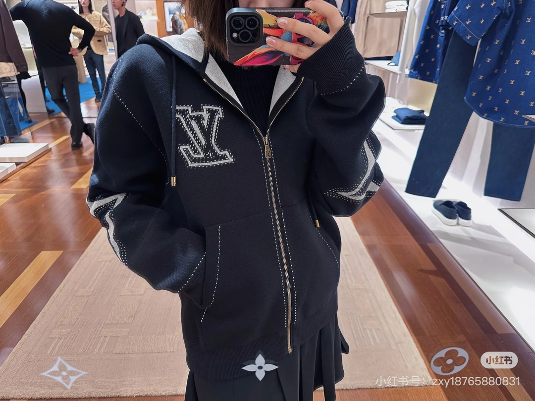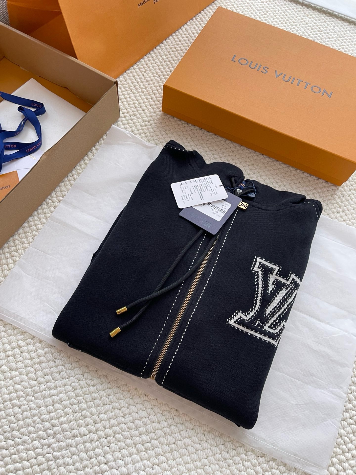 NIGO Louis Vuitton Women's Fall/Winter Black Logo Applique Zipper Hooded Long Sleeve Jacket #nigo73154
