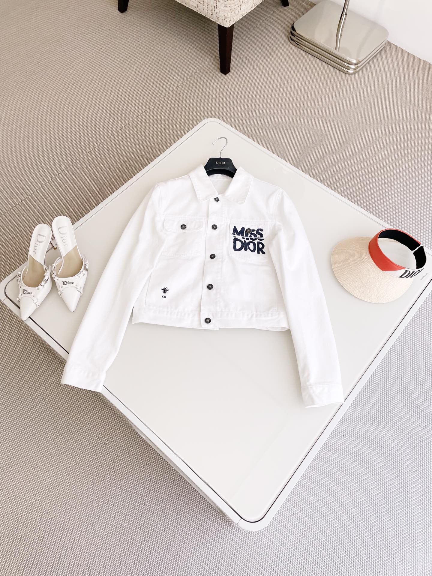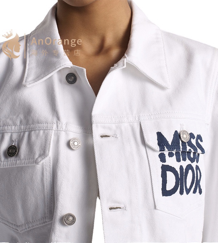 NIGO Dior Women's Spring Summer Logo Letter Printed White Single Breasted Denim Jacket #nigo72762