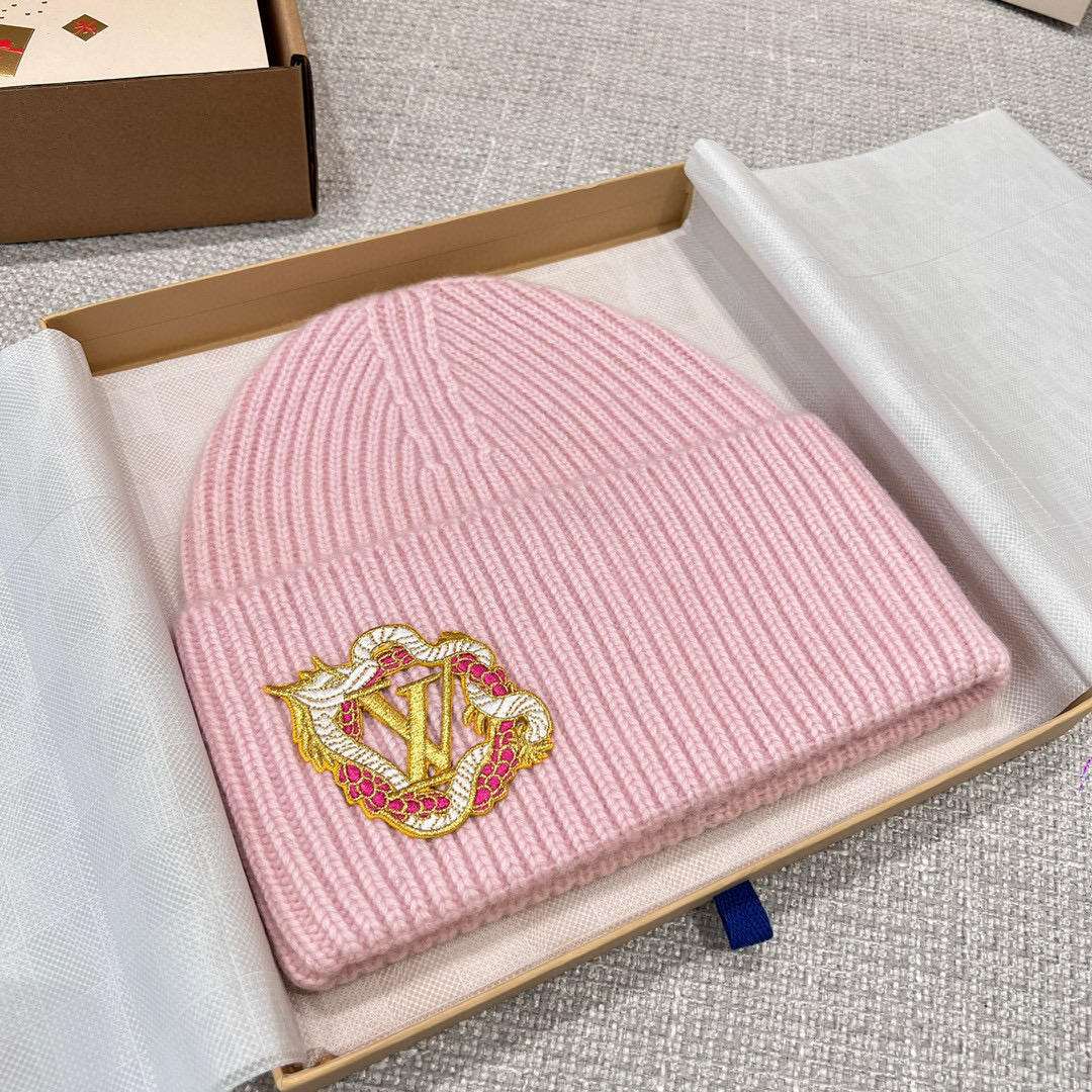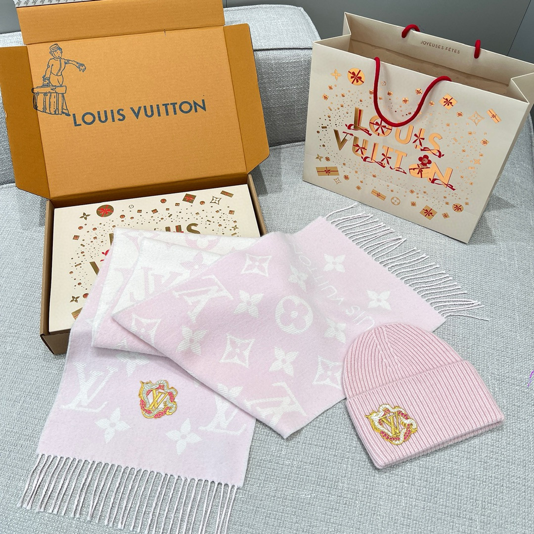 NIGO Louis Vuitton Women's Autumn and Winter Embroidery Pan Long Patch Logo Pink Woolen Fleece Hat Scarf Set #nigo98115