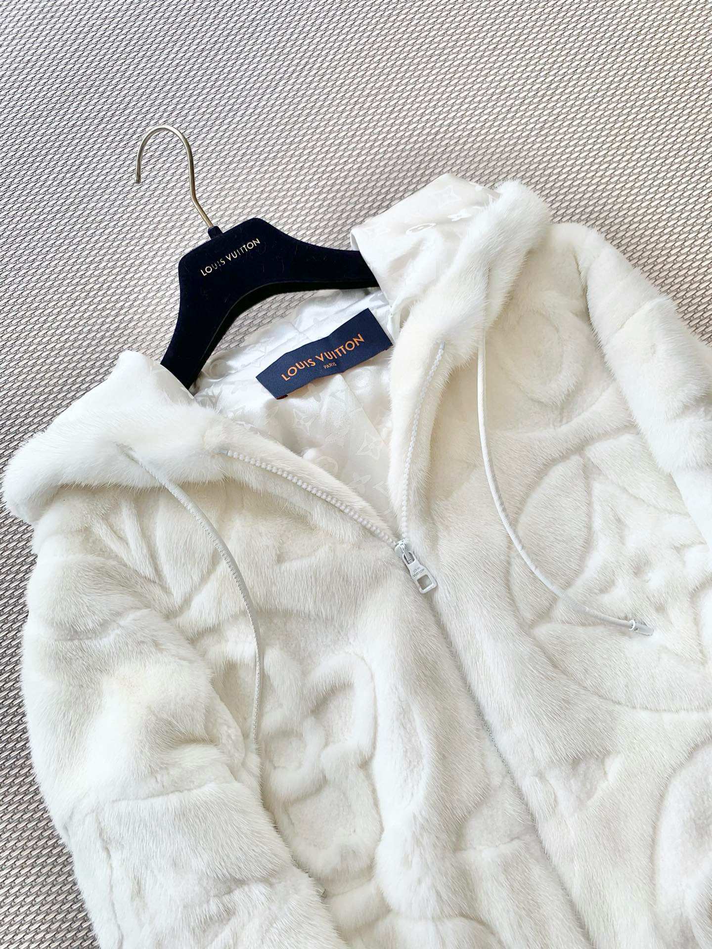 NIGO Louis Vuitton Men's And Women's Aged Shearling Embossed Craft Velvet Mink Pure White Zip Jacket #nigo97838
