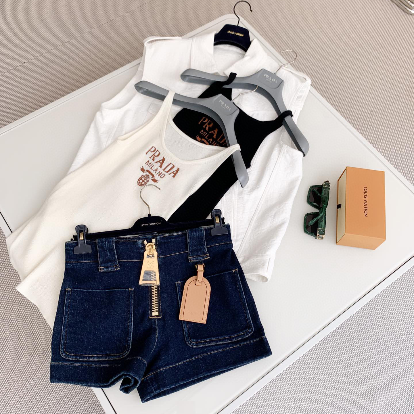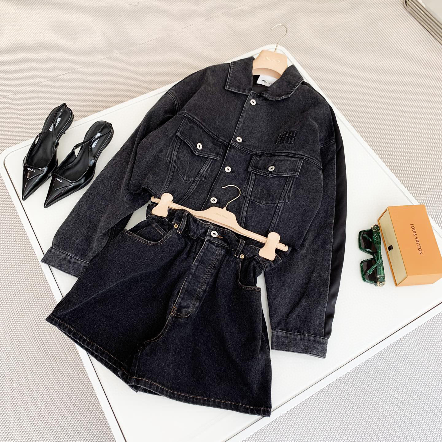 MIU MIU NIGO Woman Denim Short Long Sleeved Jacket Shorts Set pants #nigo21128