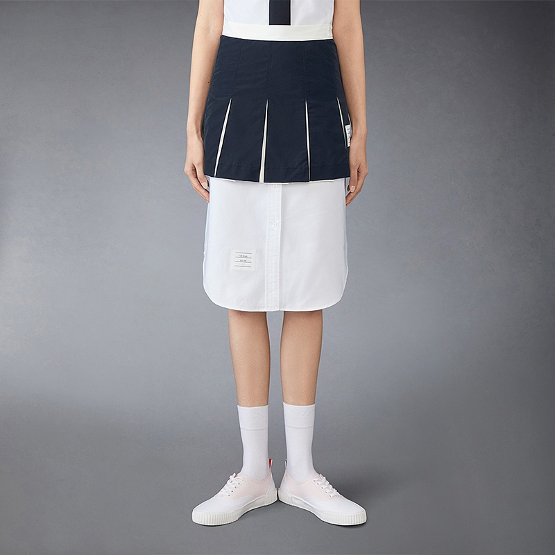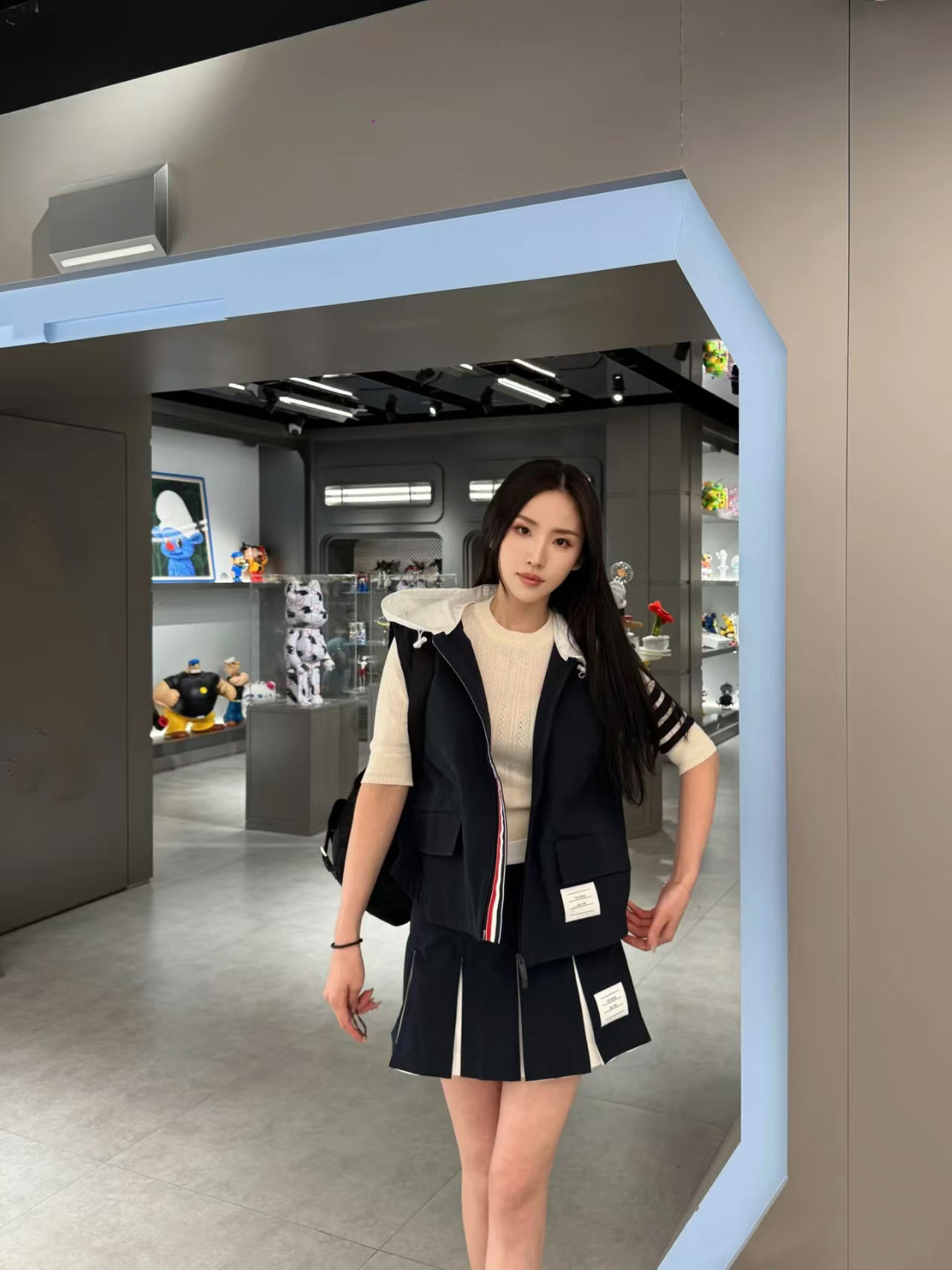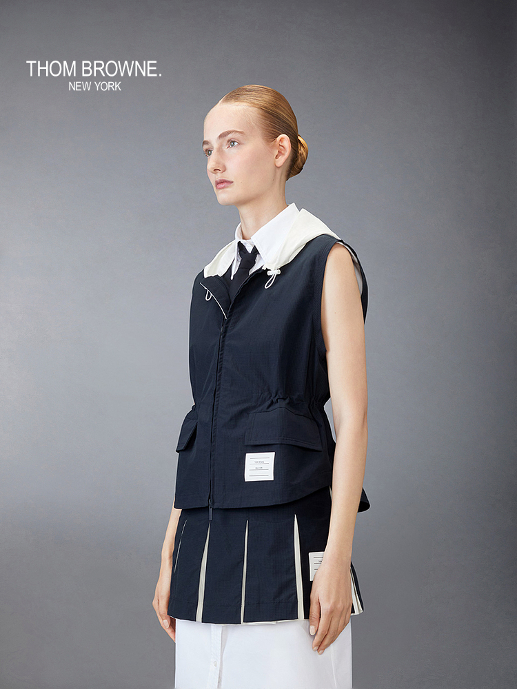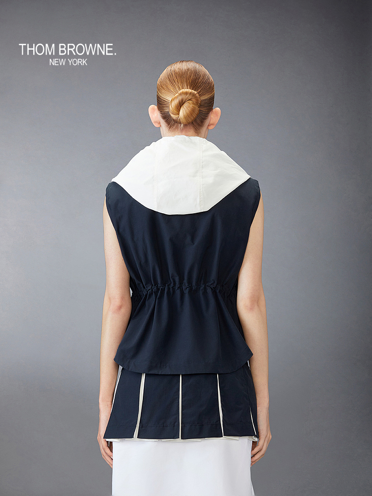 L NIGO Women's Spring/Summer Drawstring Color-Block Sleeveless Zipper Hooded Vest And Casual Pleated Mini Skirt