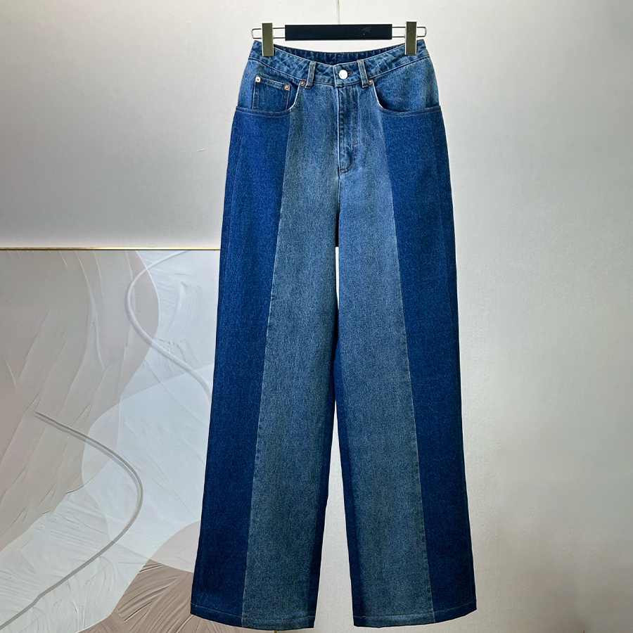 L NIGO Women's Spring/Summer Retro Color Block Straight Leg Casual Denim Pants