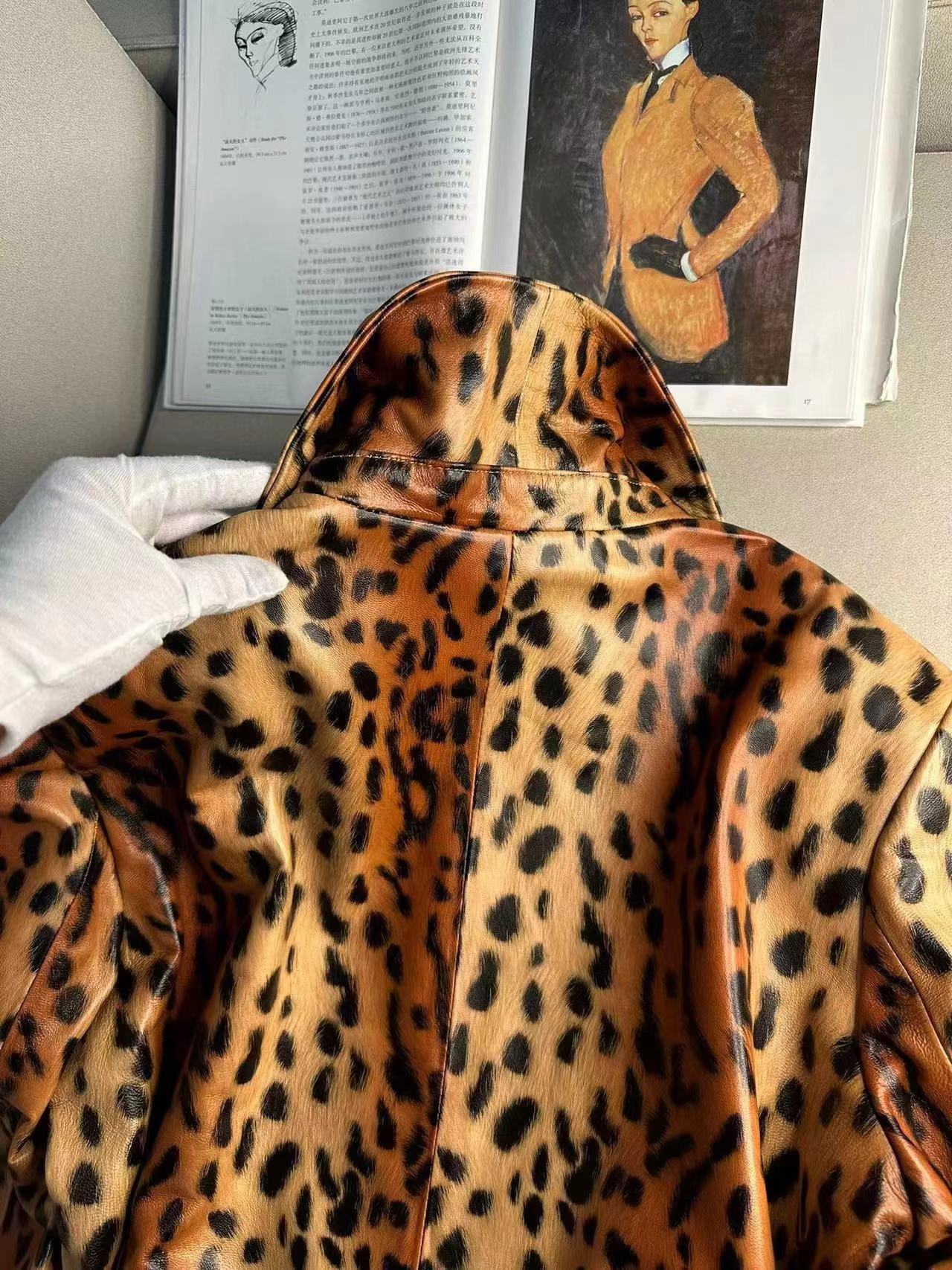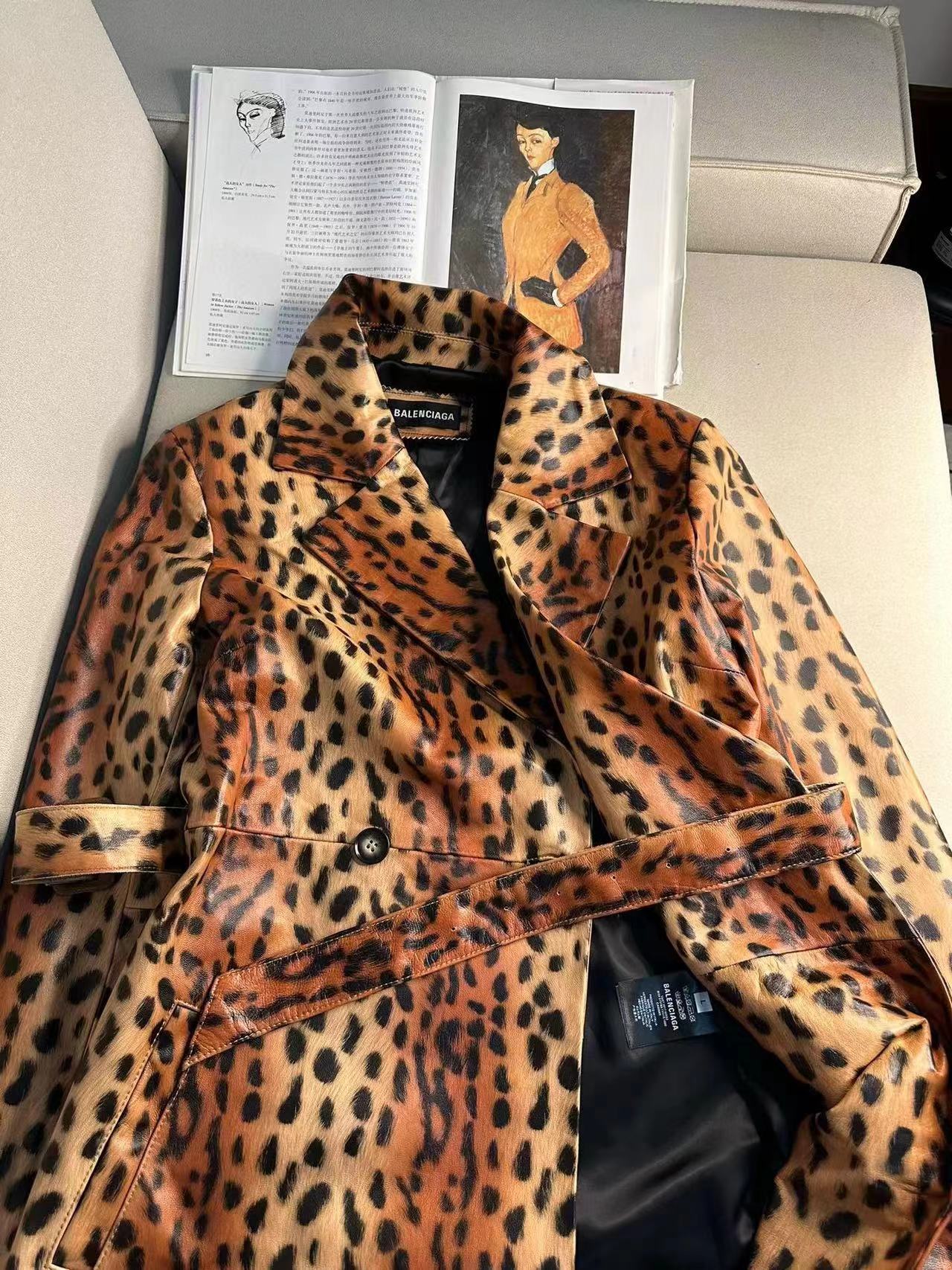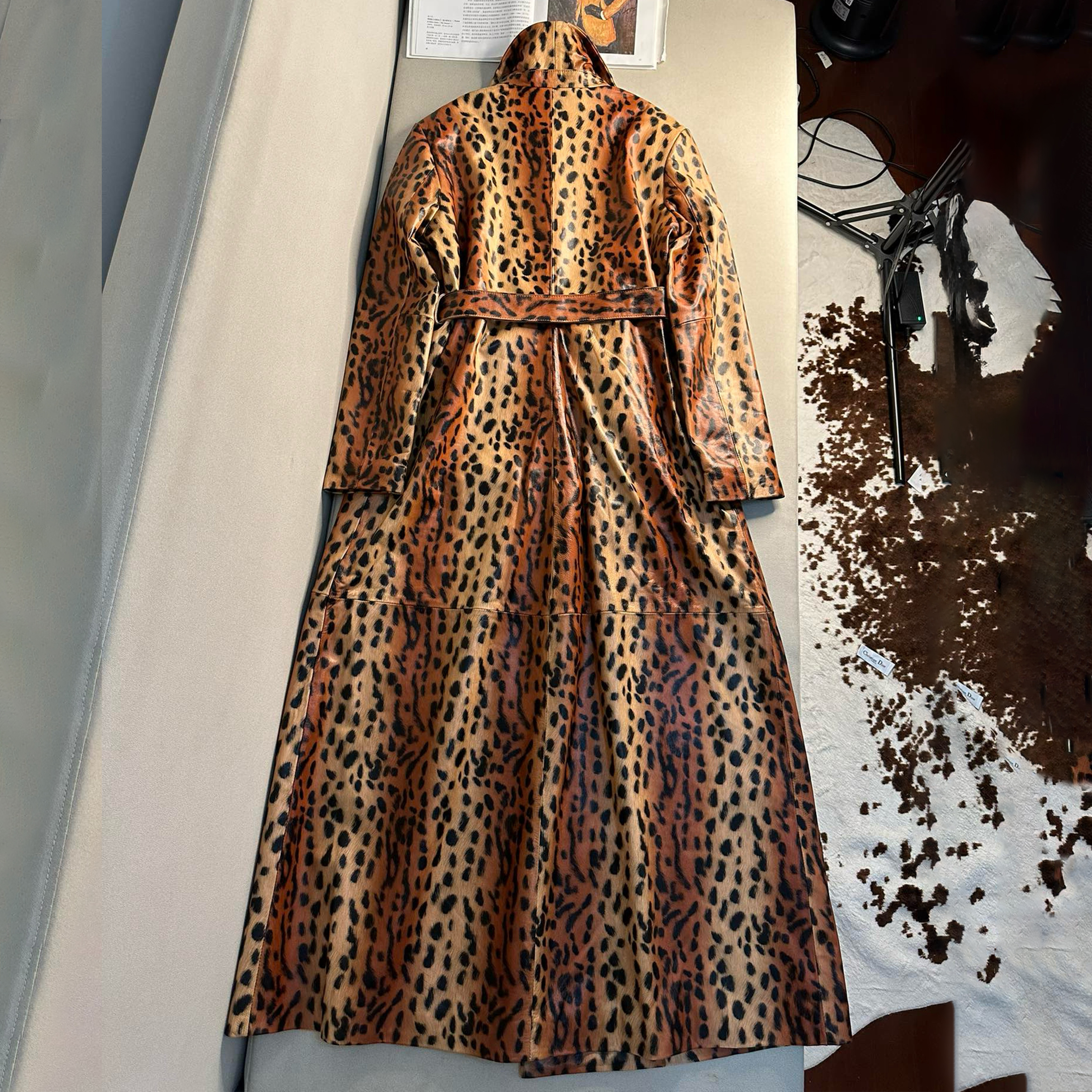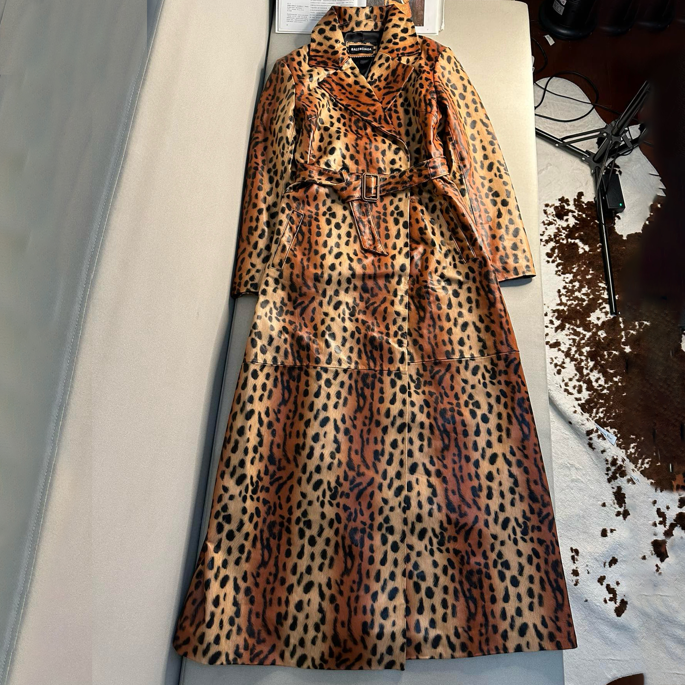 NIGO Balenciaga Women's Spring And Fall Fashion Temperament Leopard Print Sheepskin Long Trench Coat Lapel Belt Luxury Jacket Ngvp #nigo8117