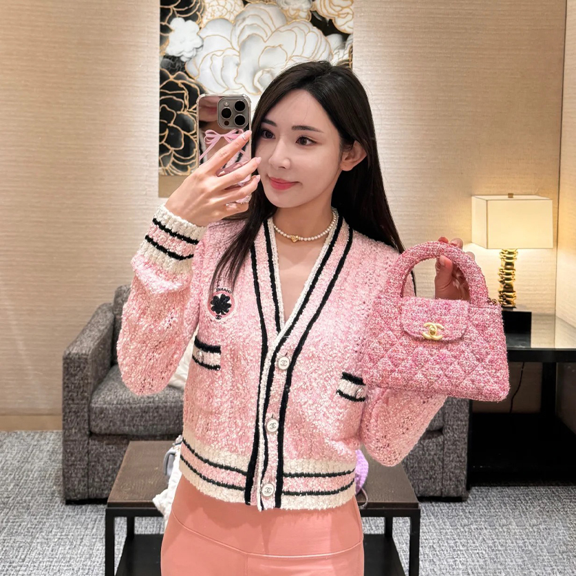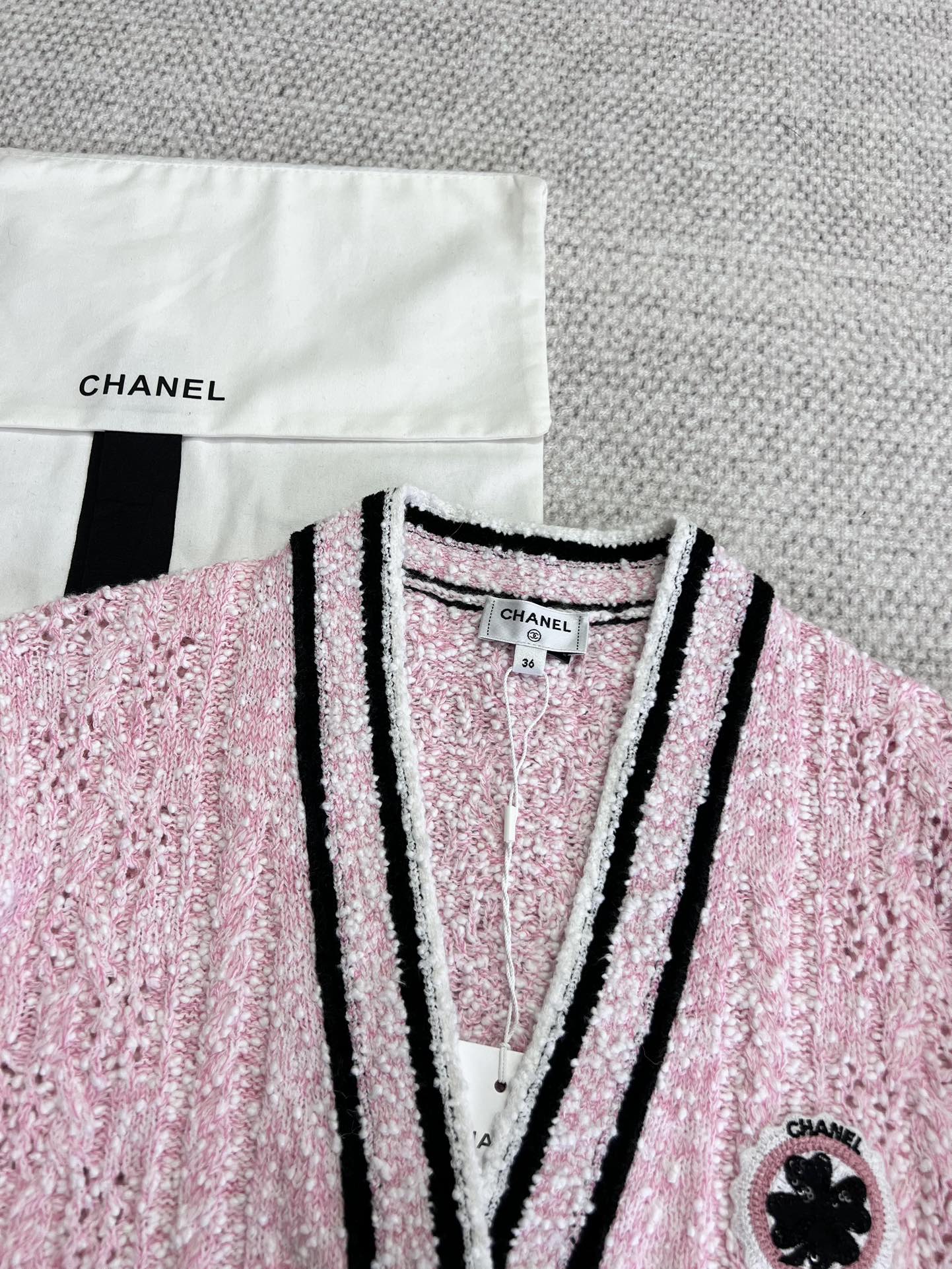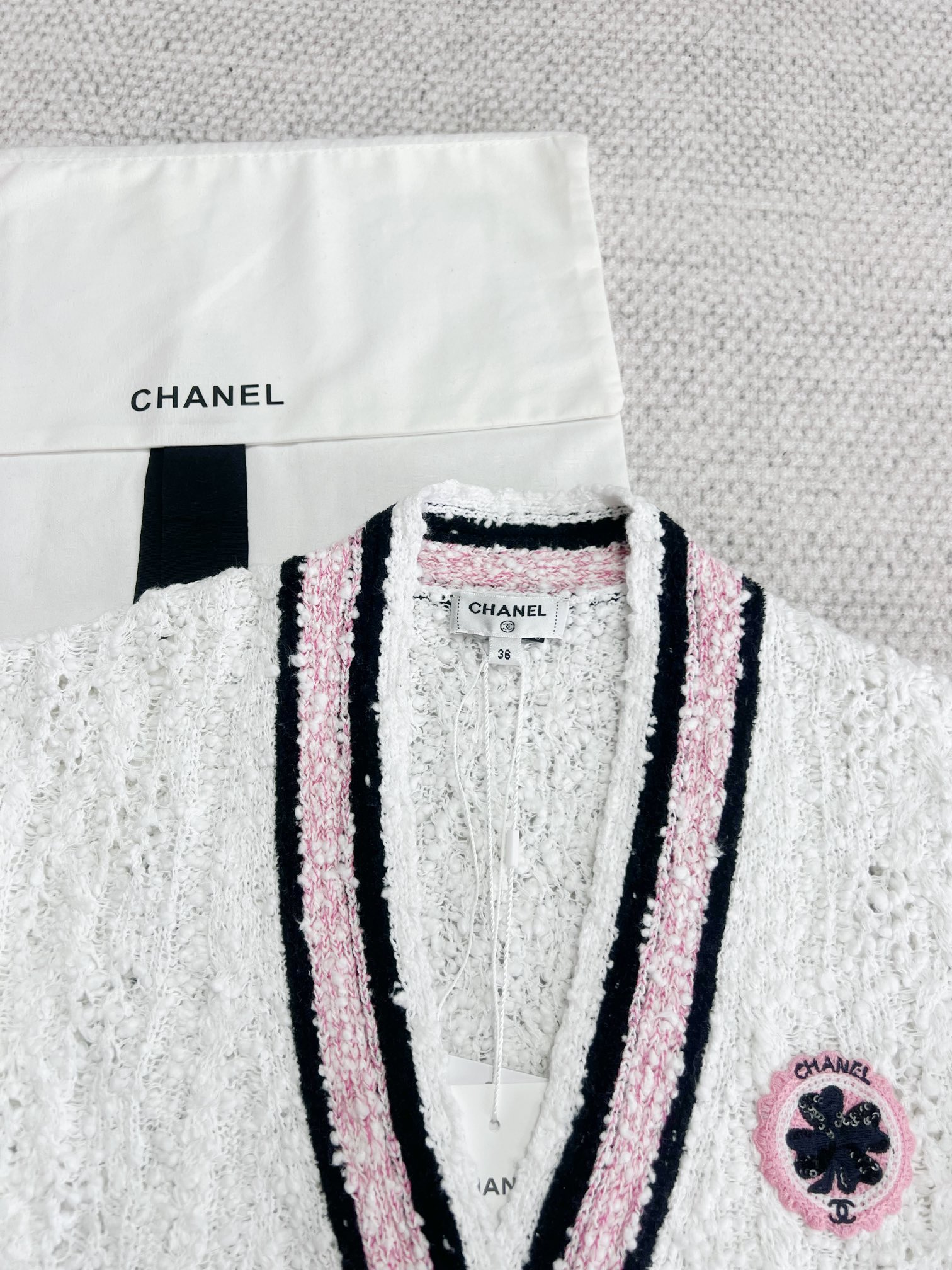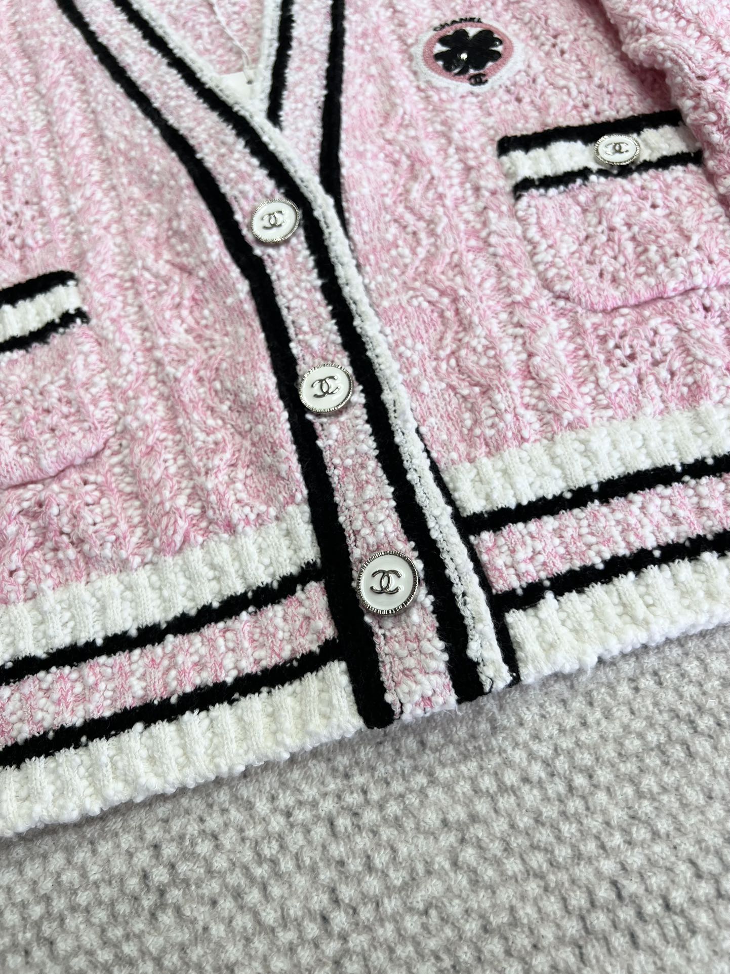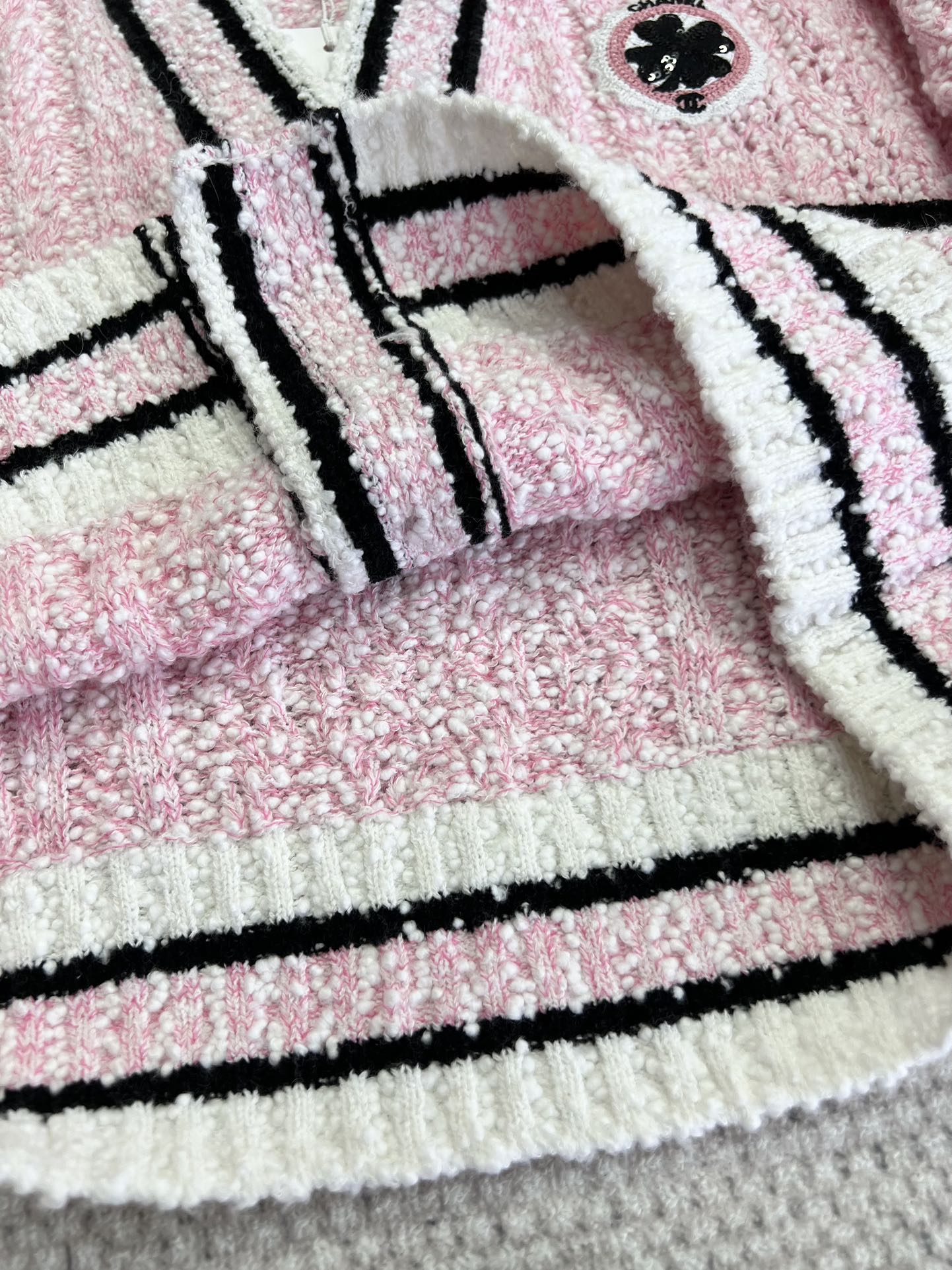 NIGO Chanel Women's Spring And Autumn Winter Badge Clover Stripe Single breasted V-neck Long sleeved Knitted Shirt Coat Cardigan #nigo71628