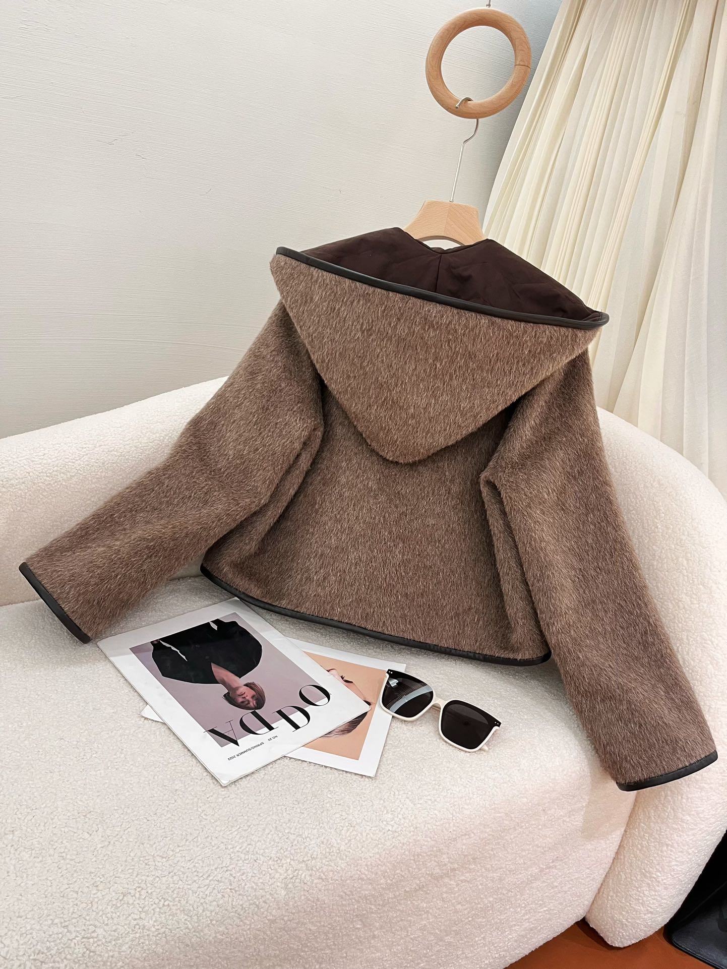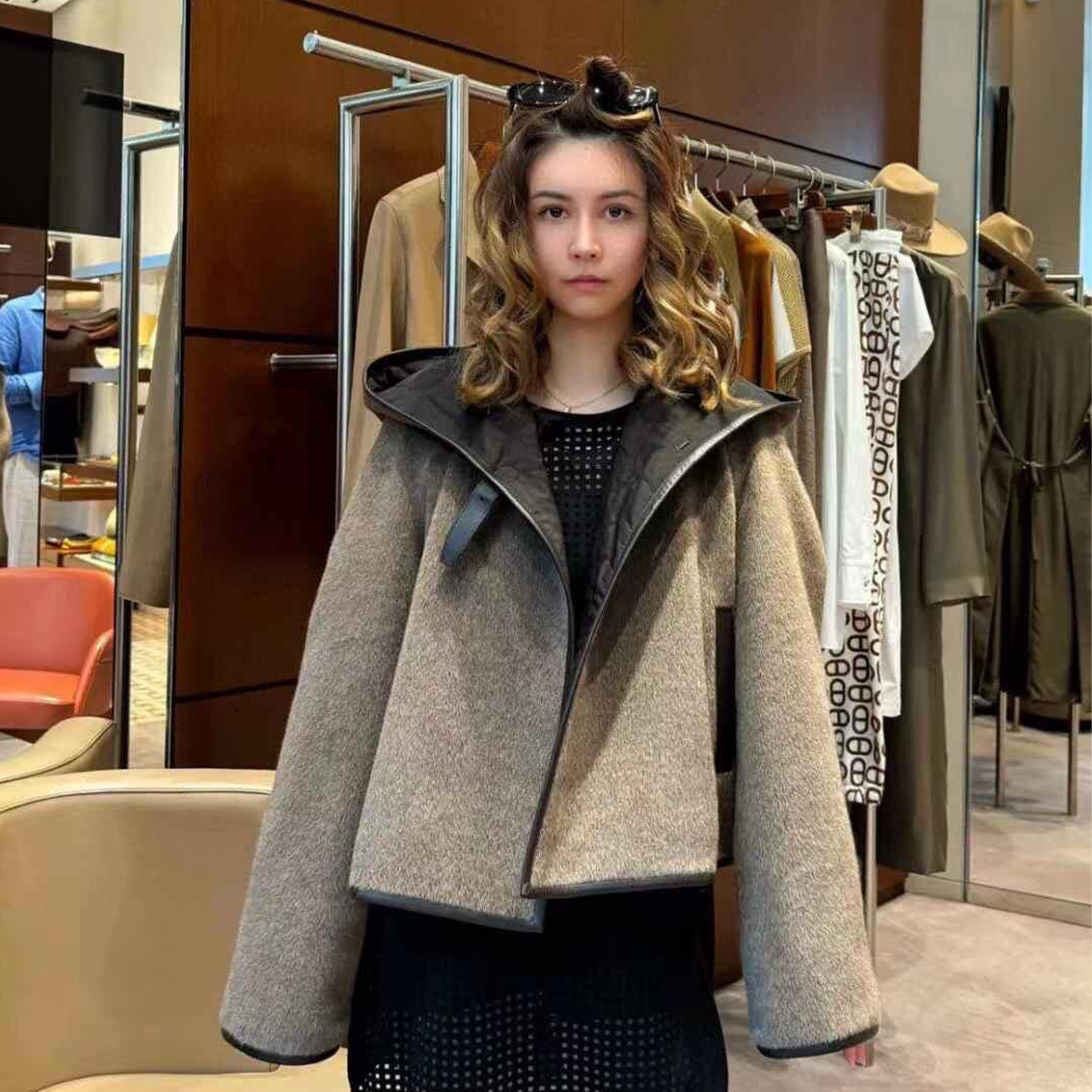 NIGO Hermes Women's Autumn And Winter Fashionable A Silhouette Leather Buckle Hooded Jacket Short Fashion Casual Temperament Coat Ngvp #nigo9786