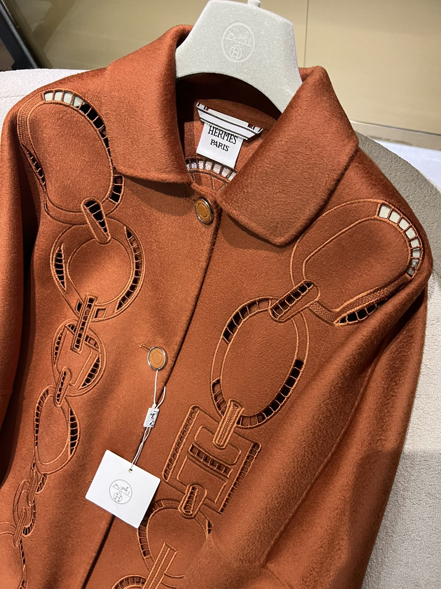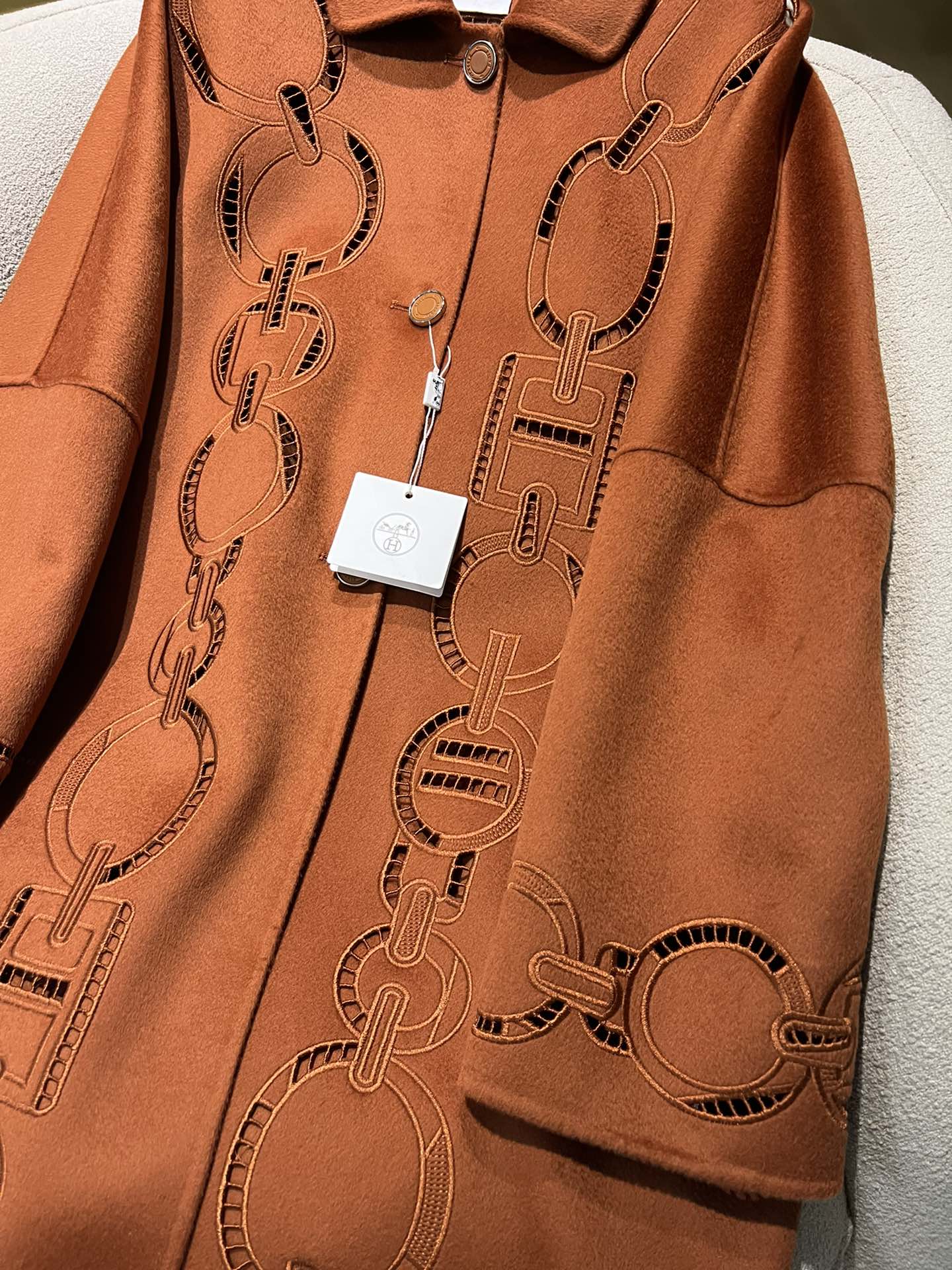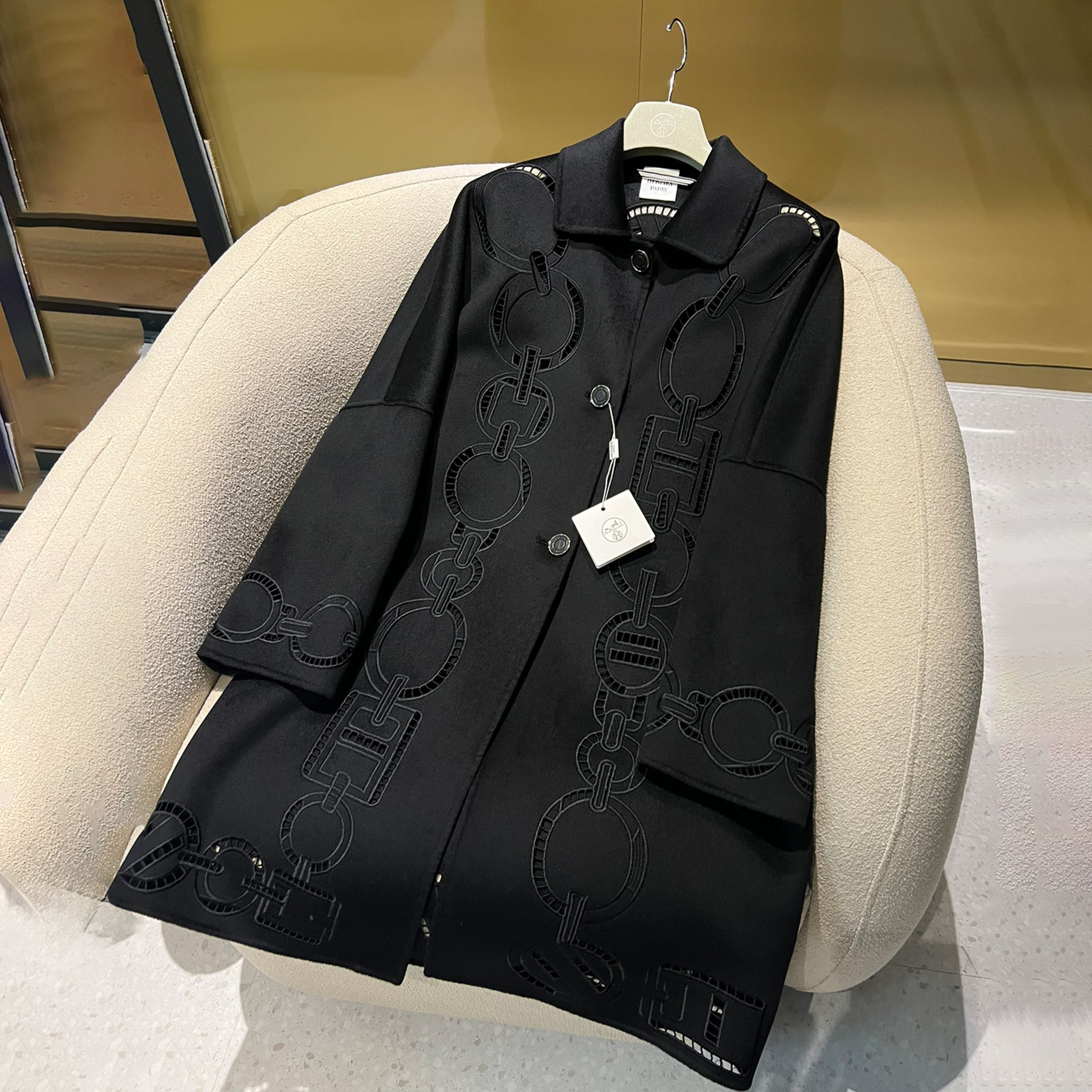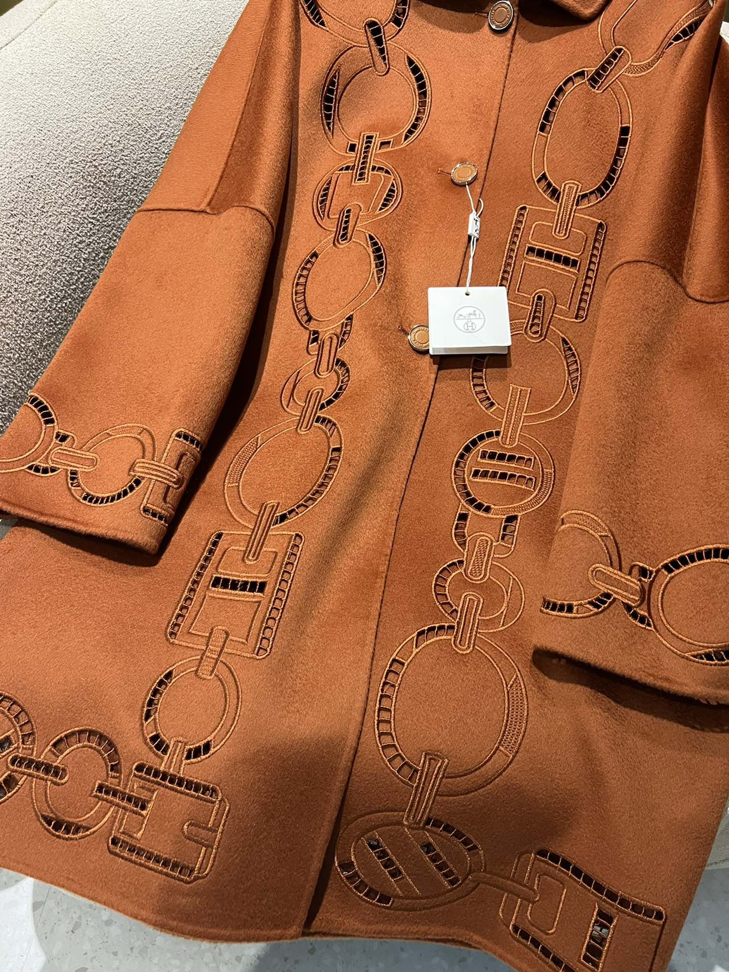 NIGO Hermes Women's Fall And Winter Ring Hollow 100% Cashmere Silhouette Coat Fashion Temperament Elegant Tweed Jacket #nigo71557