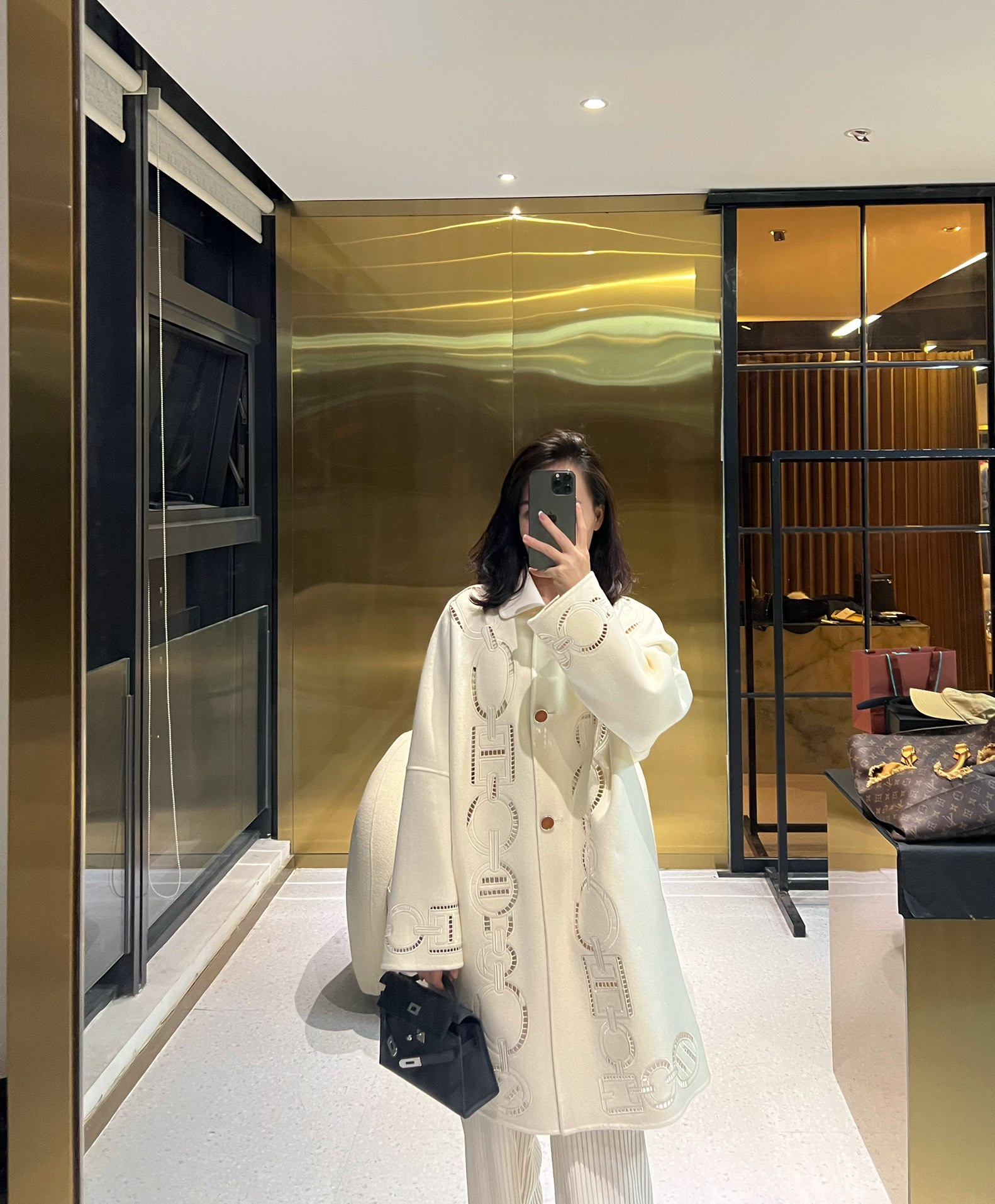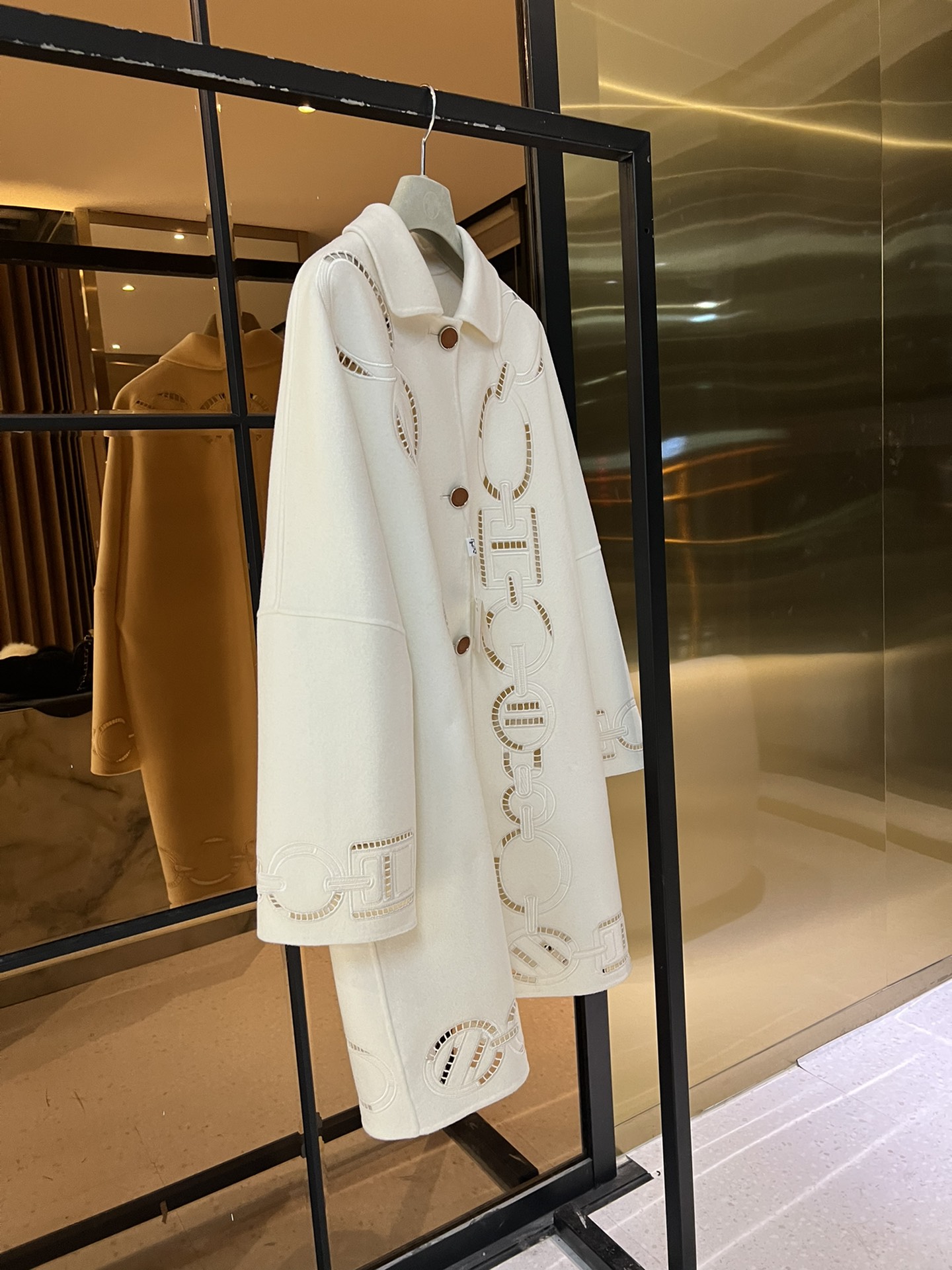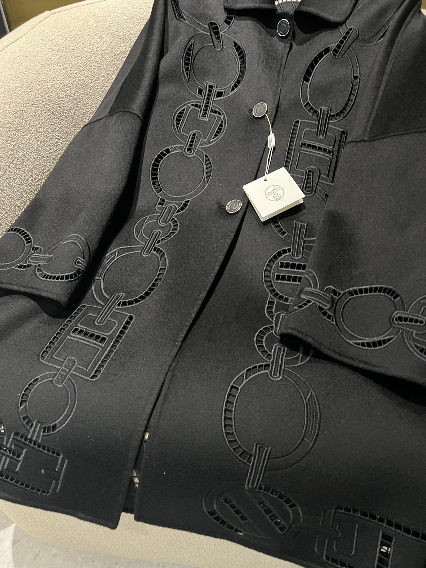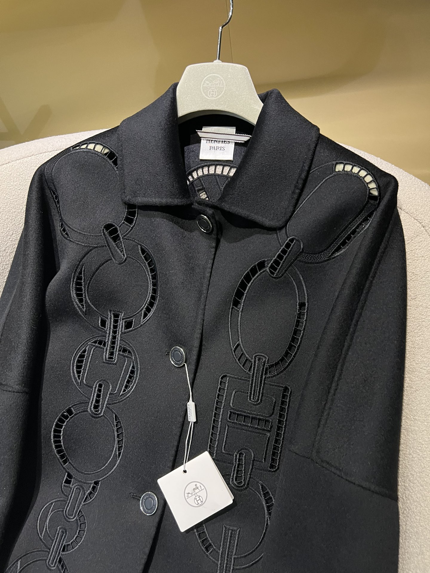 NIGO Hermes Women's Fall And Winter Ring Hollow 100% Cashmere Silhouette Coat Fashion Temperament Elegant Tweed Jacket #nigo71557