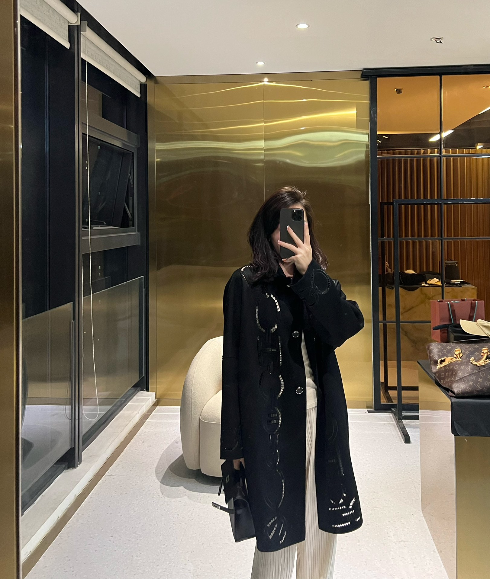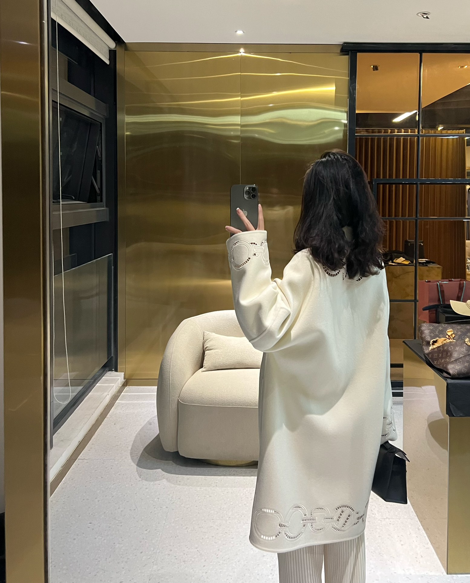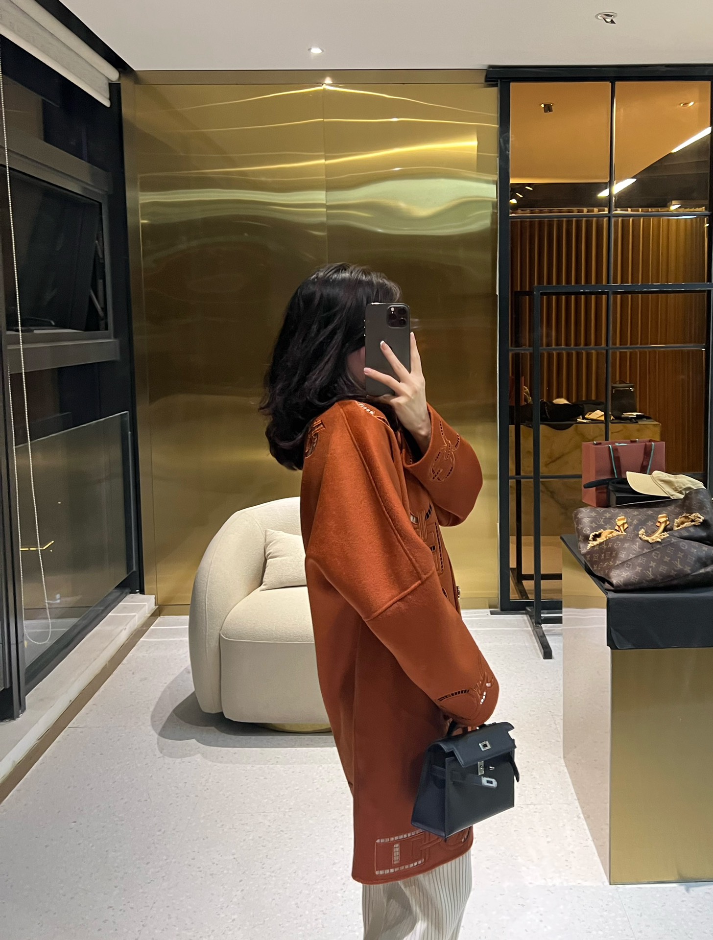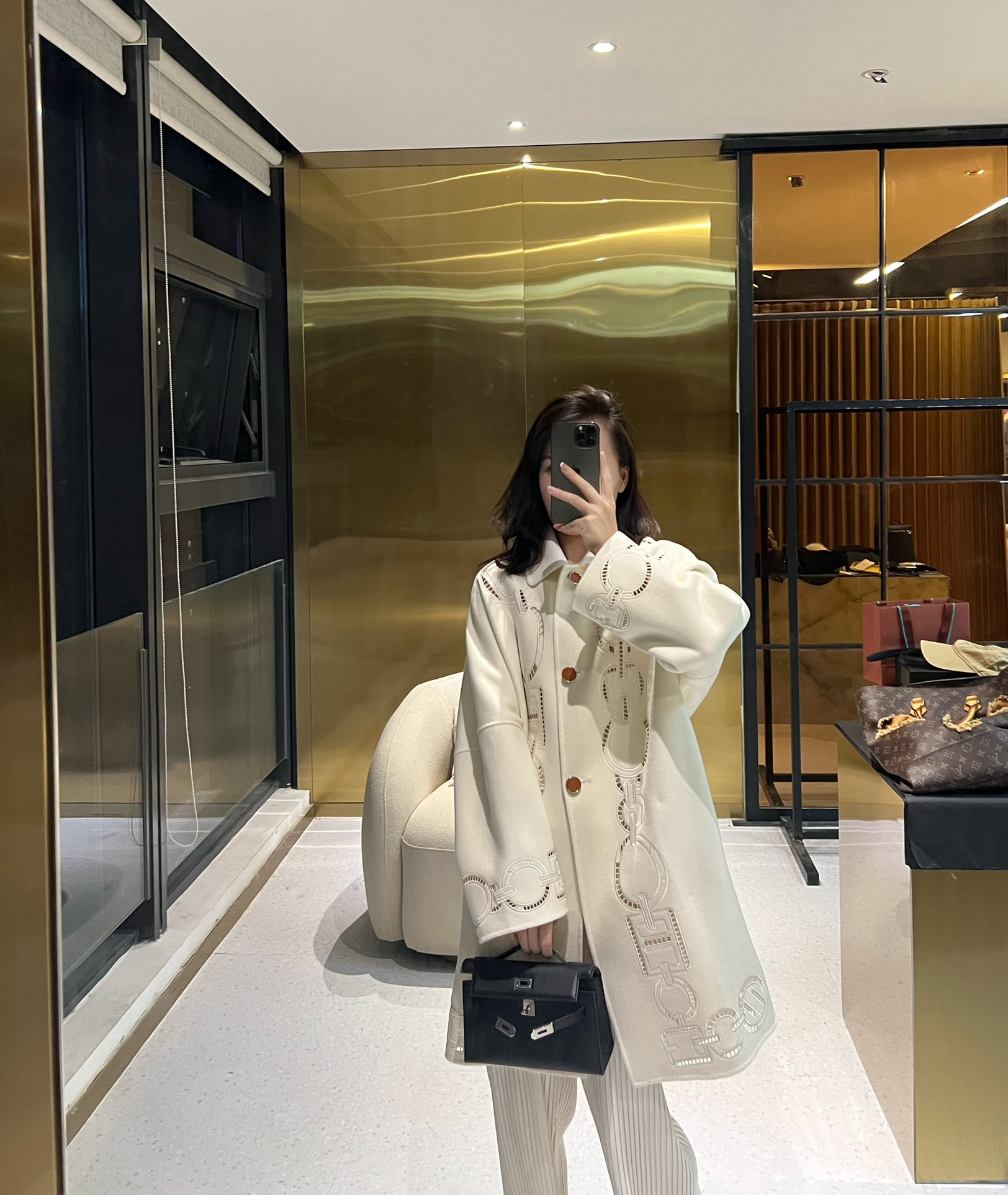 NIGO Hermes Women's Fall And Winter Ring Hollow 100% Cashmere Silhouette Coat Fashion Temperament Elegant Tweed Jacket #nigo71557