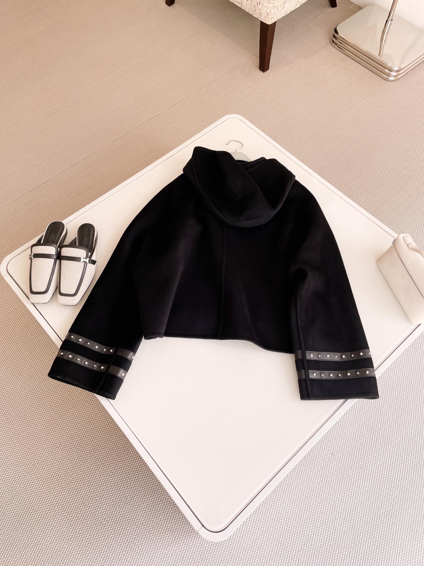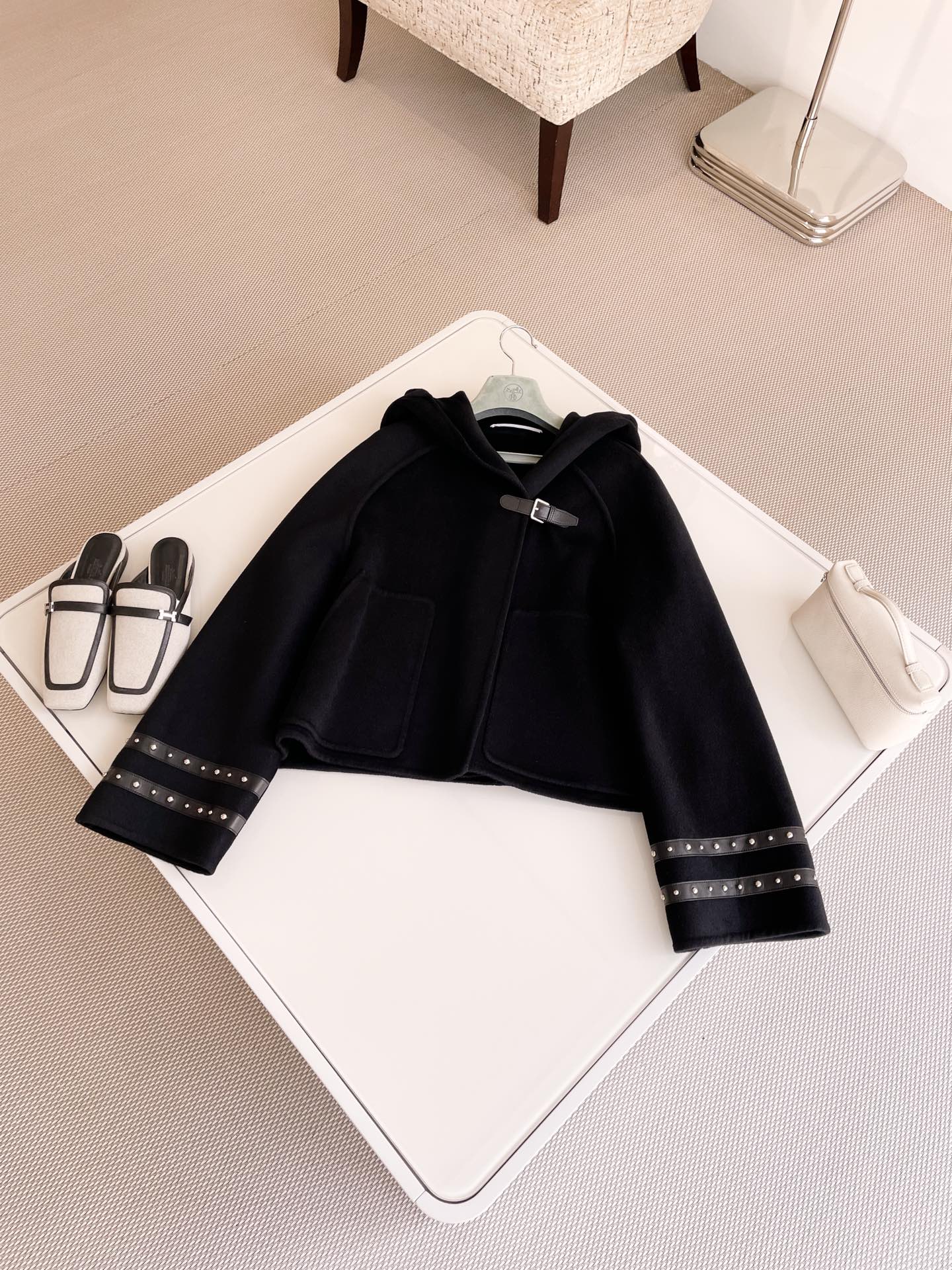 NIGO Hermes Women's Spring And Fall Double-Faced Cashmere Tweed Hooded Short Straight Solid Color Coat Ngvp #nigo9493