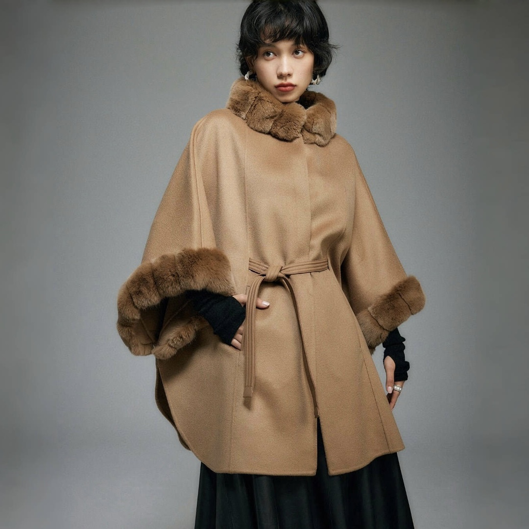 NIGO Loro Piana Women's Winter Cashmere Wool Solid Color Drawstring Hooded Double Breasted Long Coat Jacket #nigo74147