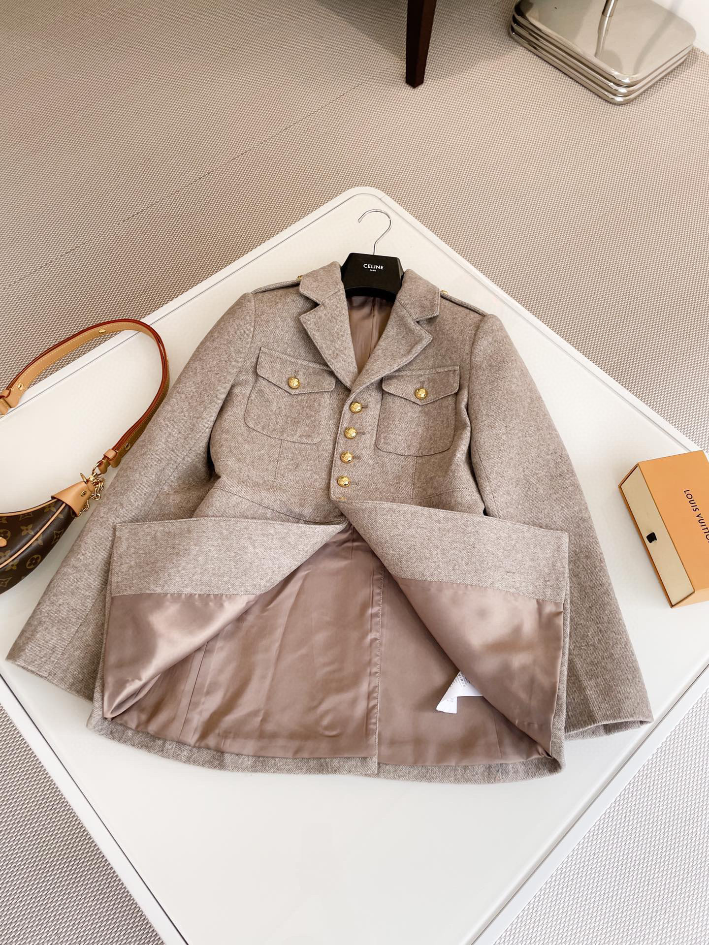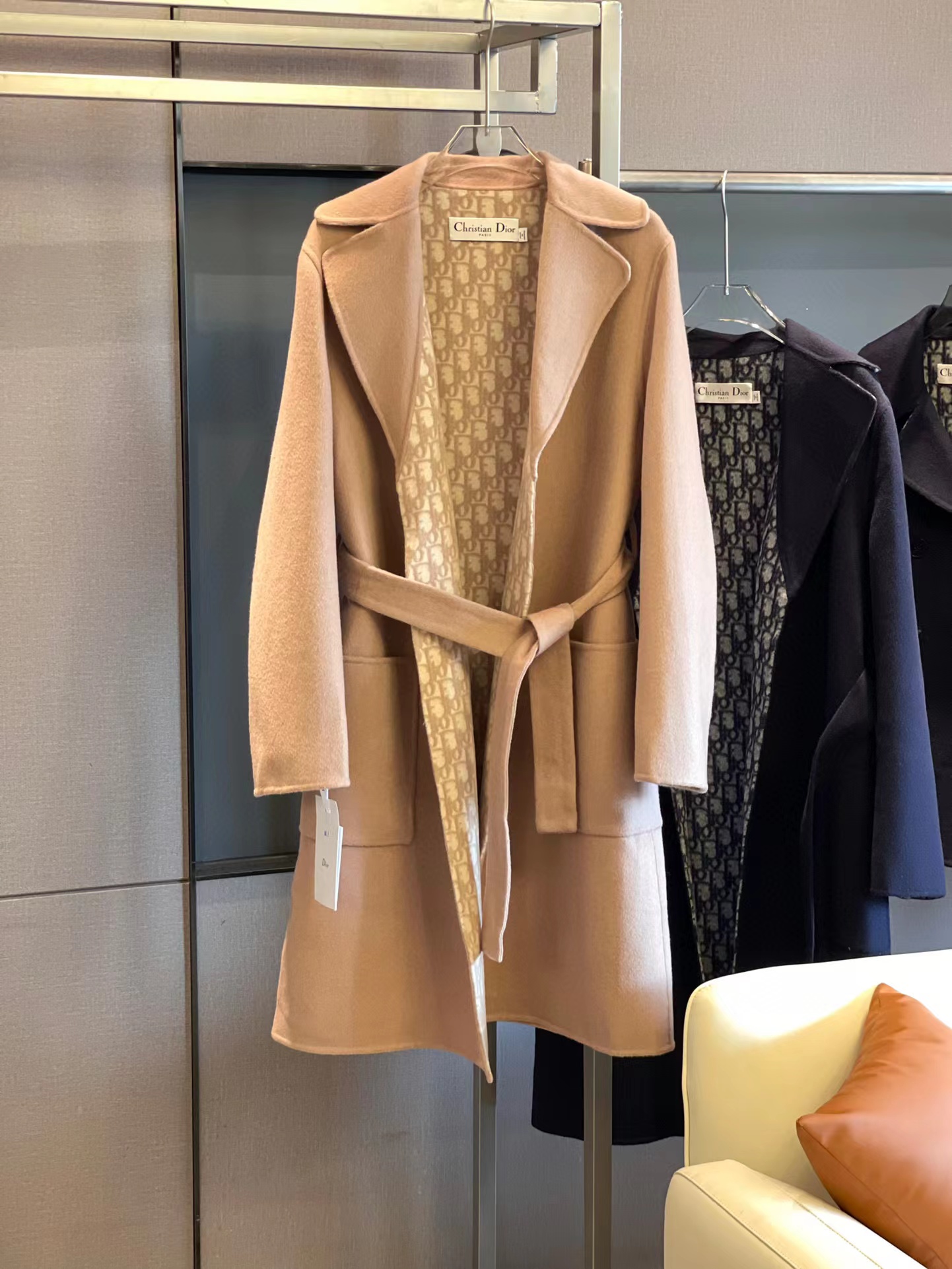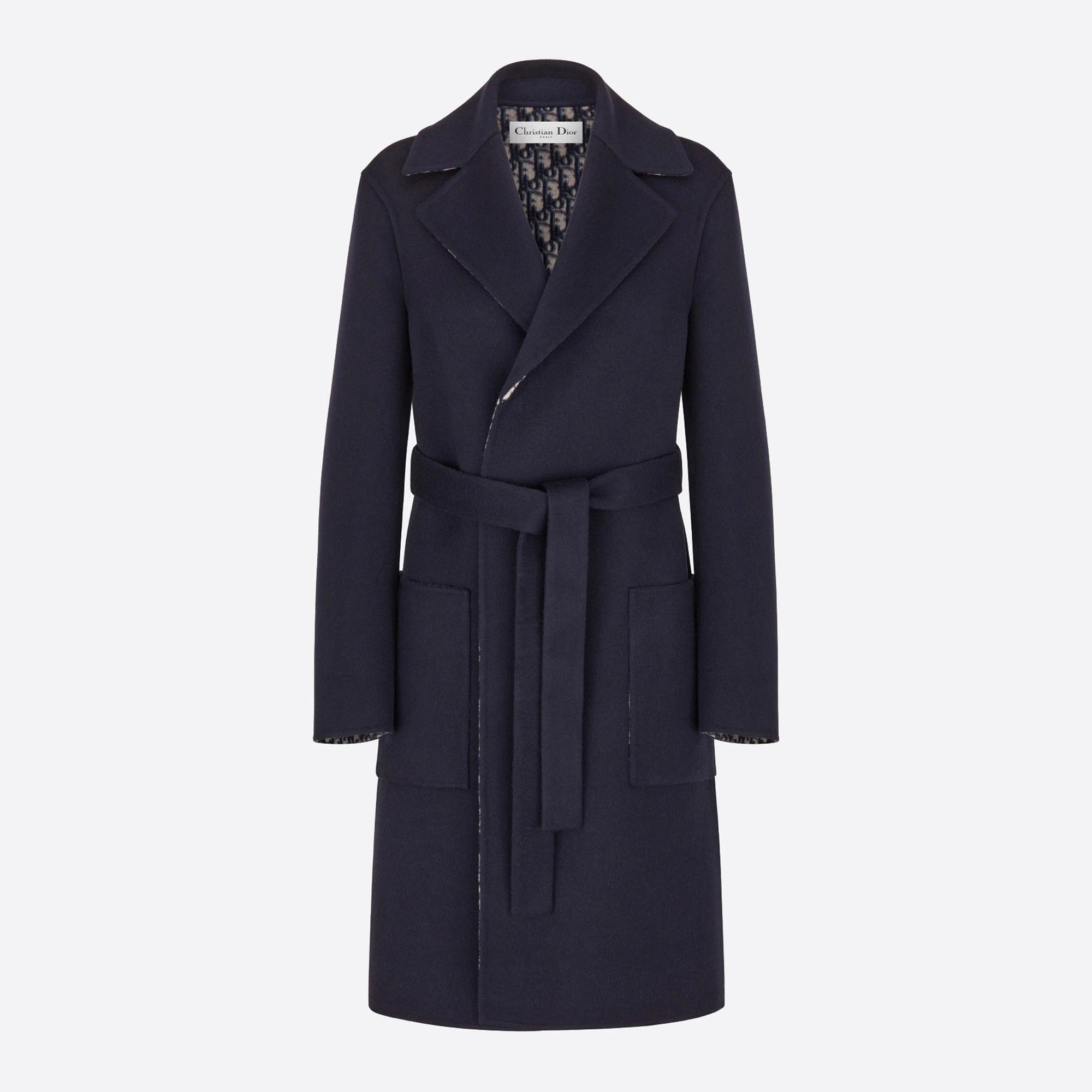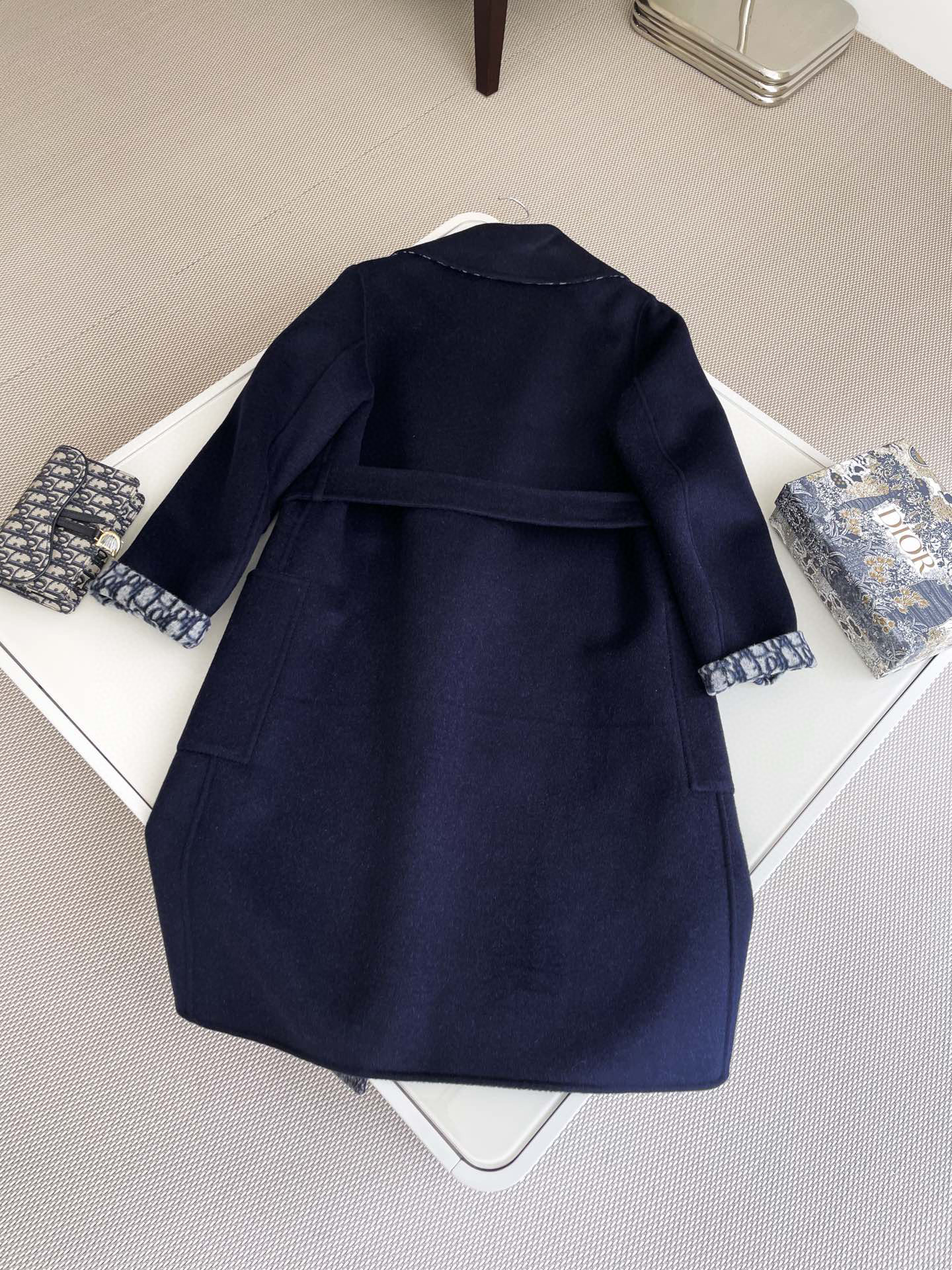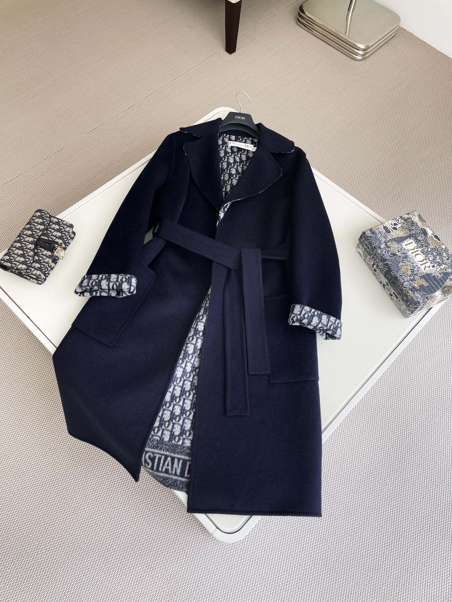 Dior WOOL Double-Faced Wool And Mulberry Silk Blend, Matching Belt, Hooded Coat Jacket #nigo59319