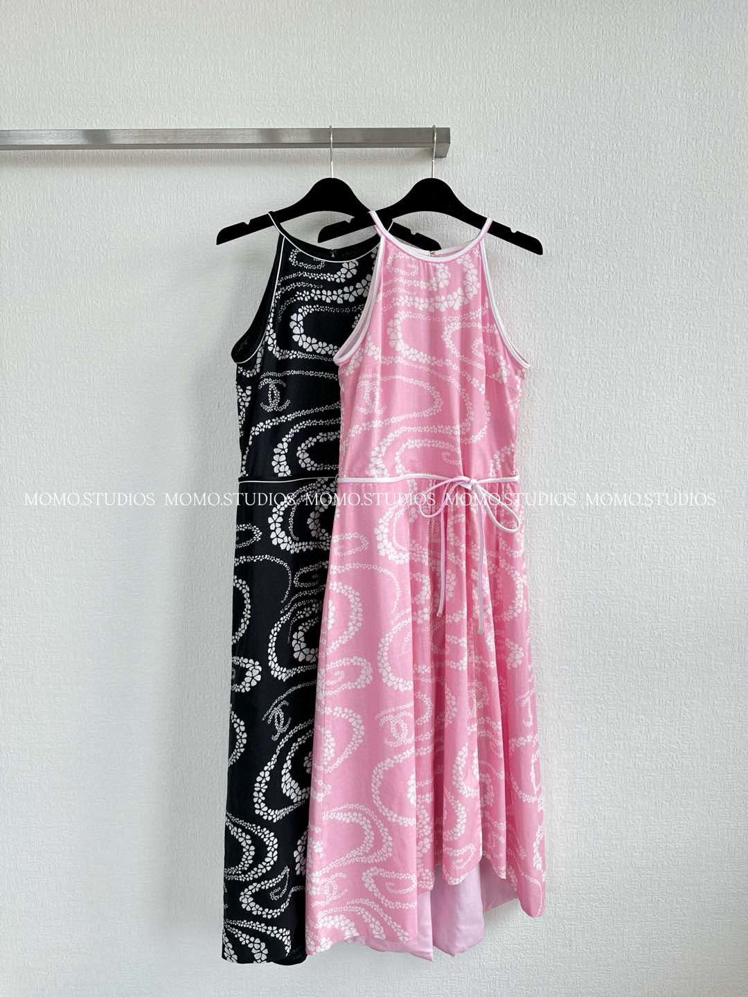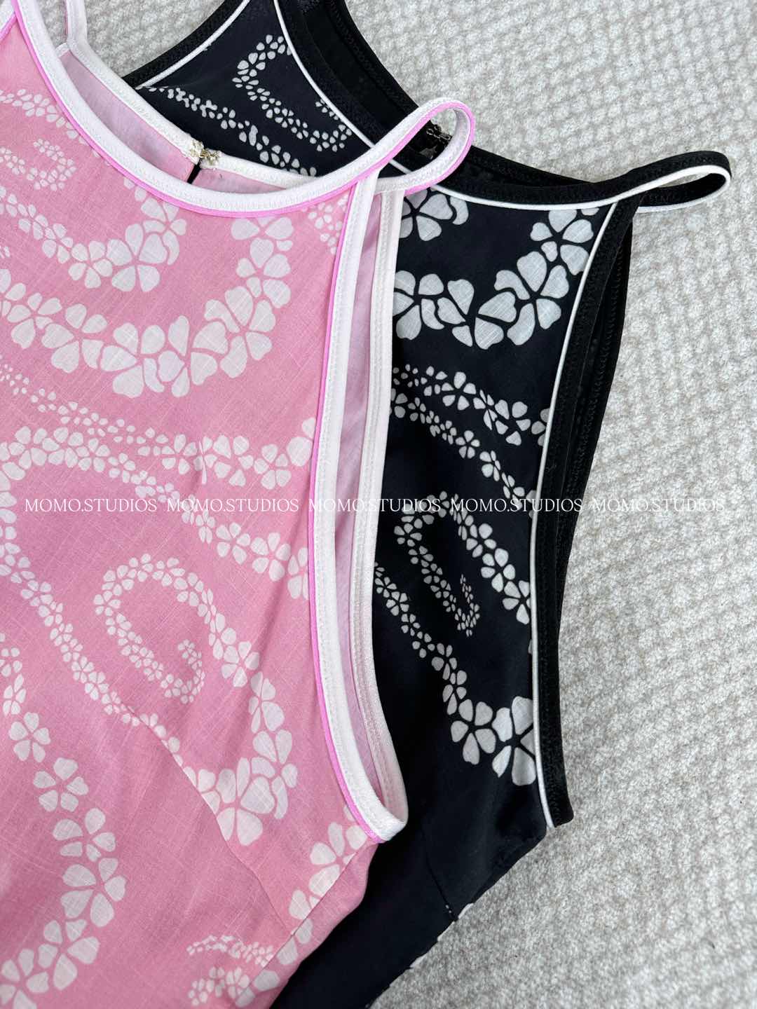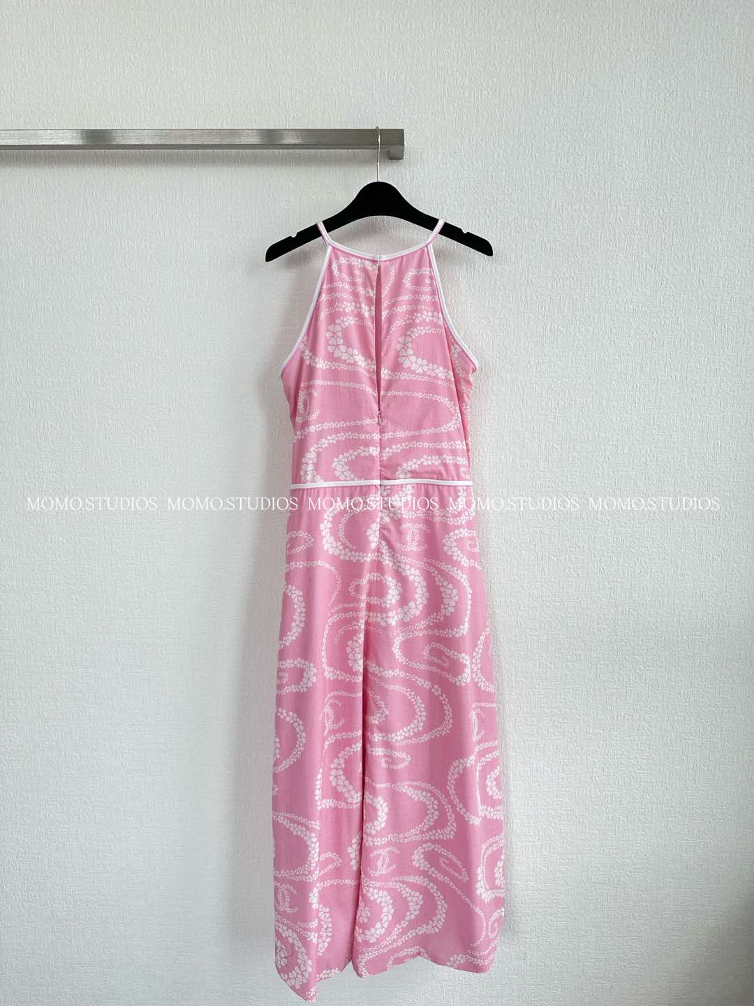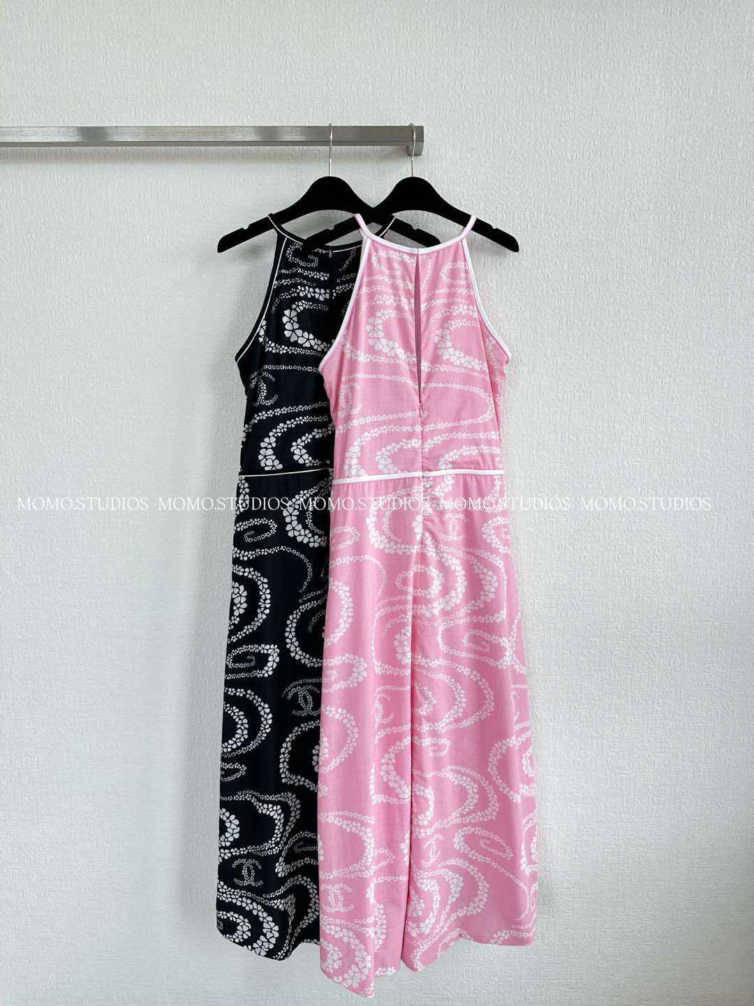NIGO Chanel Women's Summer Solid Colour Printed Cotton Halter Neck Sleeveless Long Dress #nigo77413