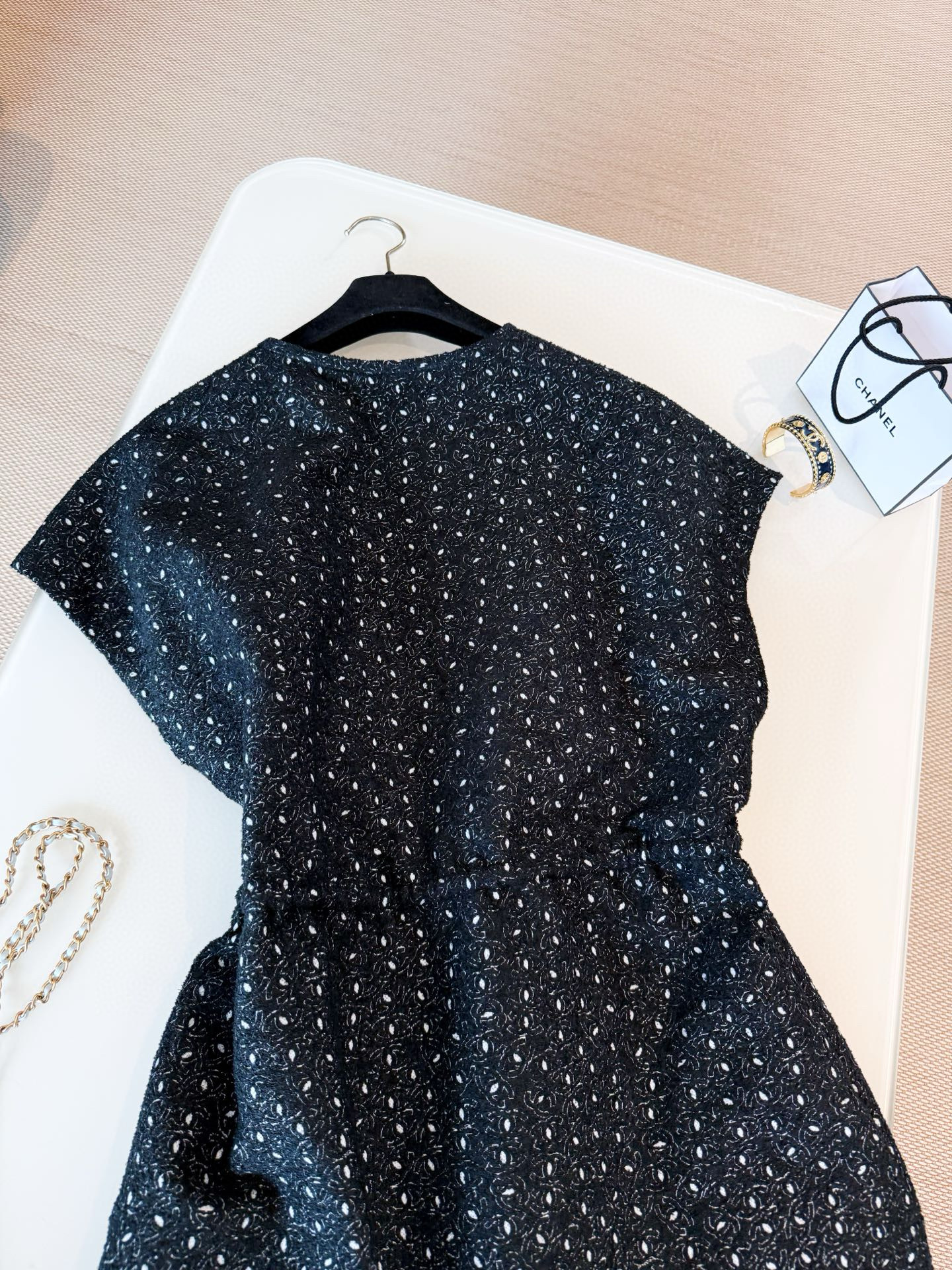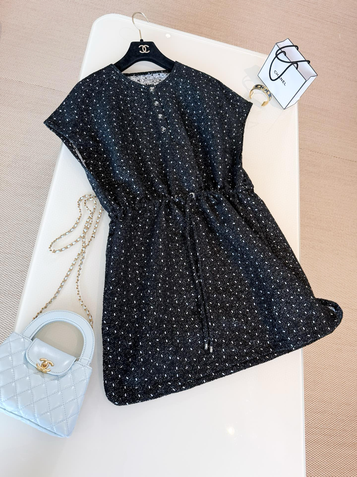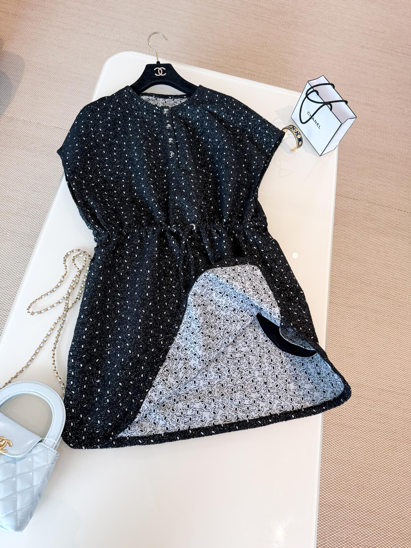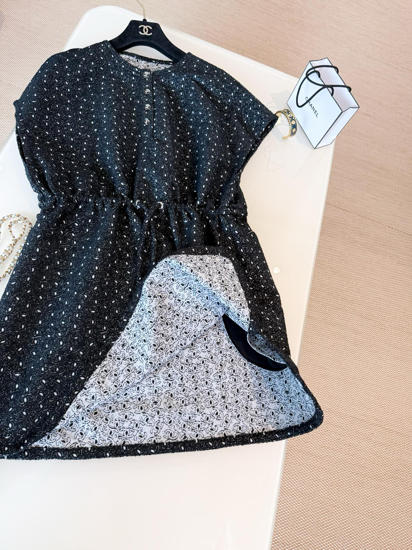NIGO Chanel Women's Summer Solid Colour Round Neck Button-Up Waist-cinched Embroidered Logo Short Sleeve Short Dress #nigo77939