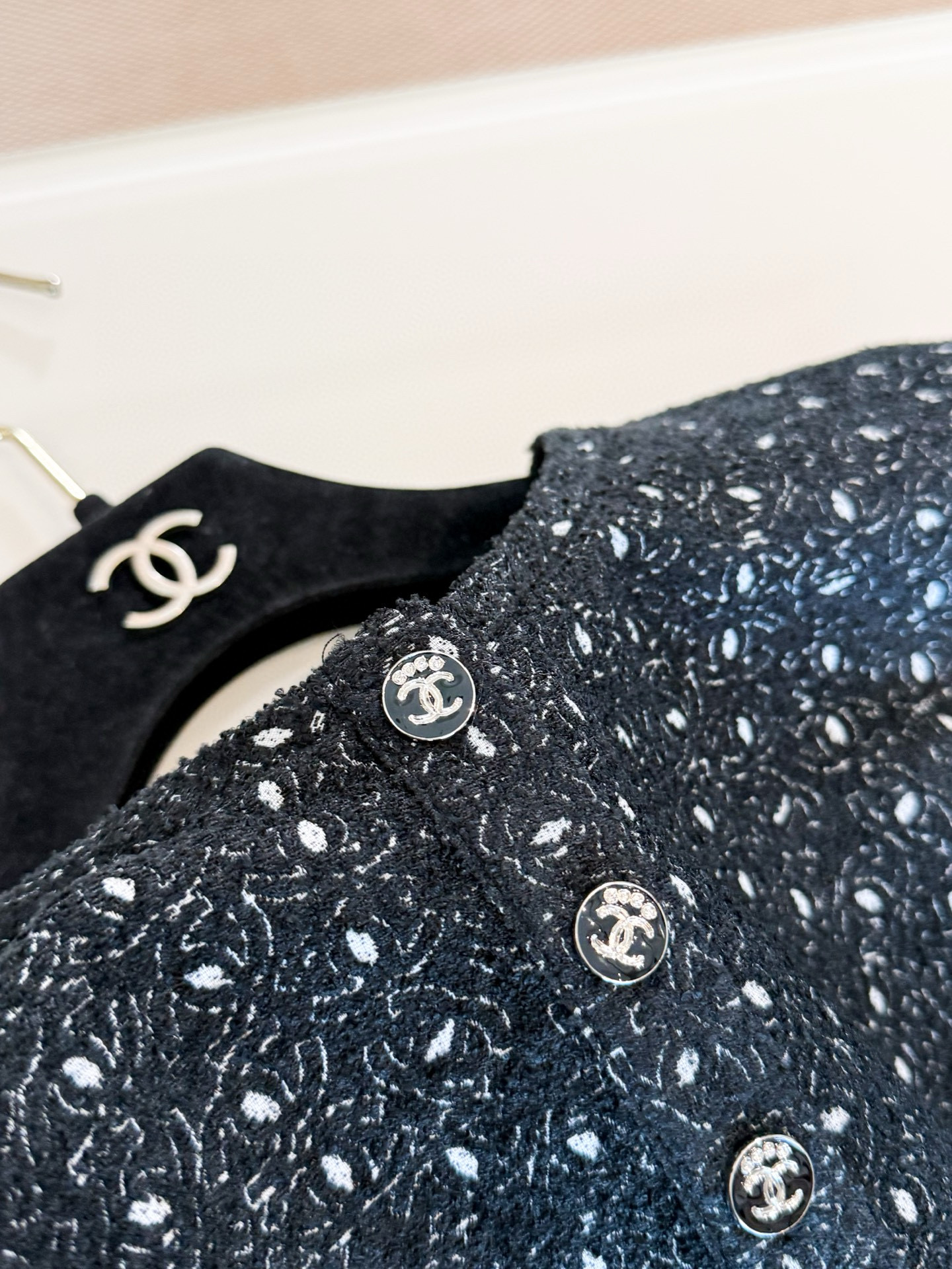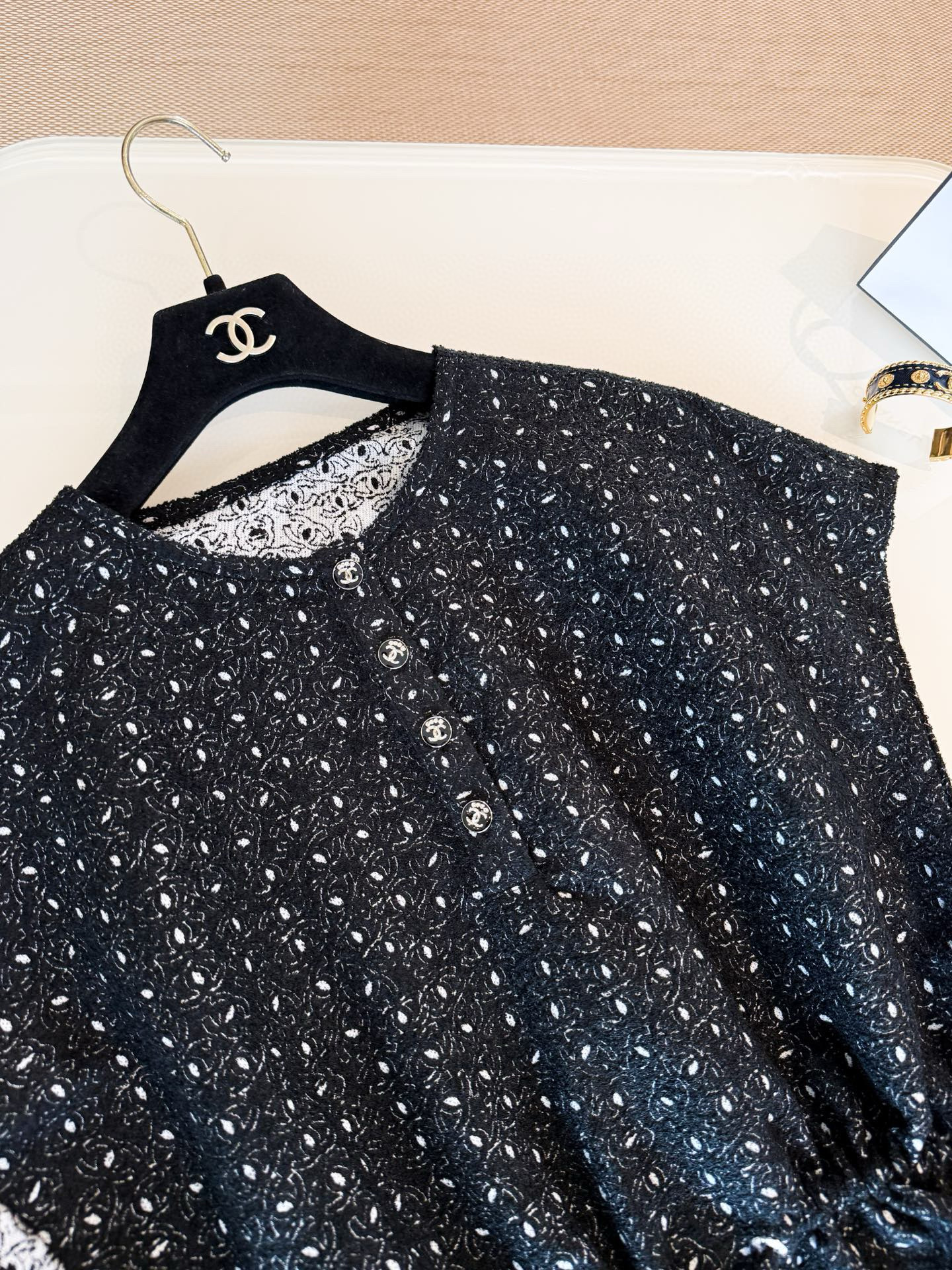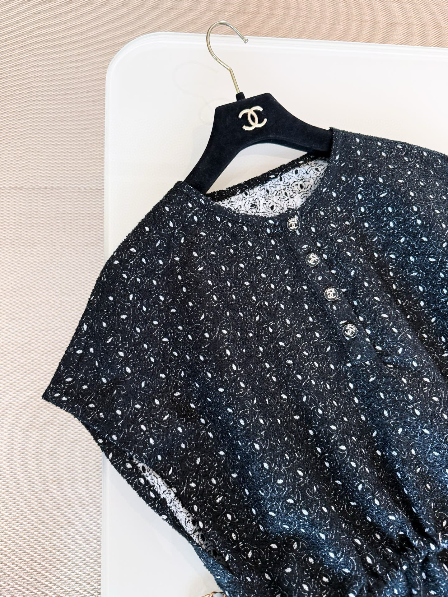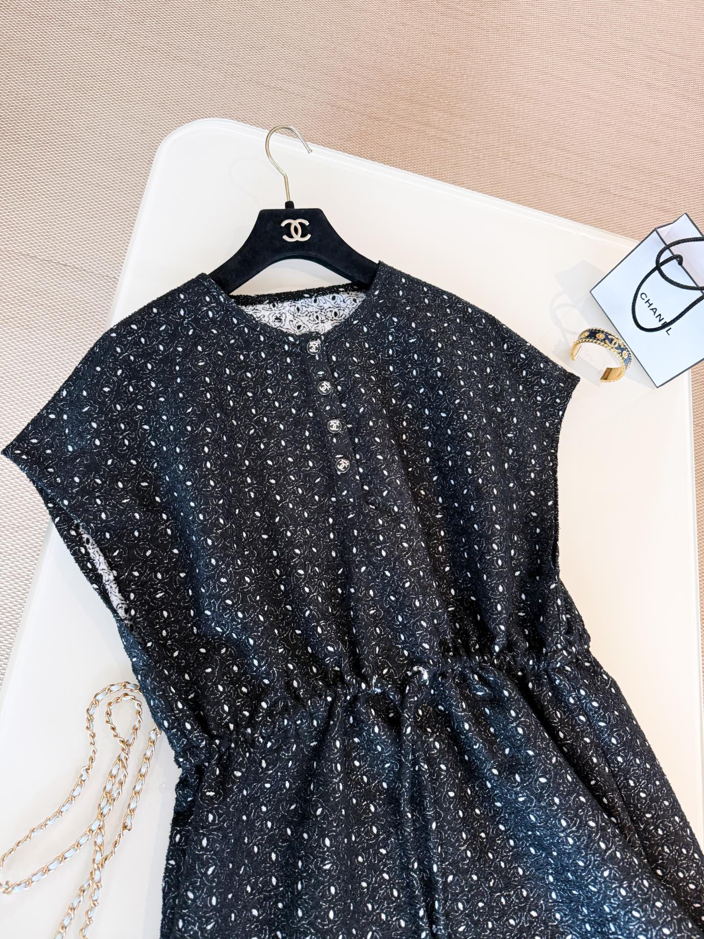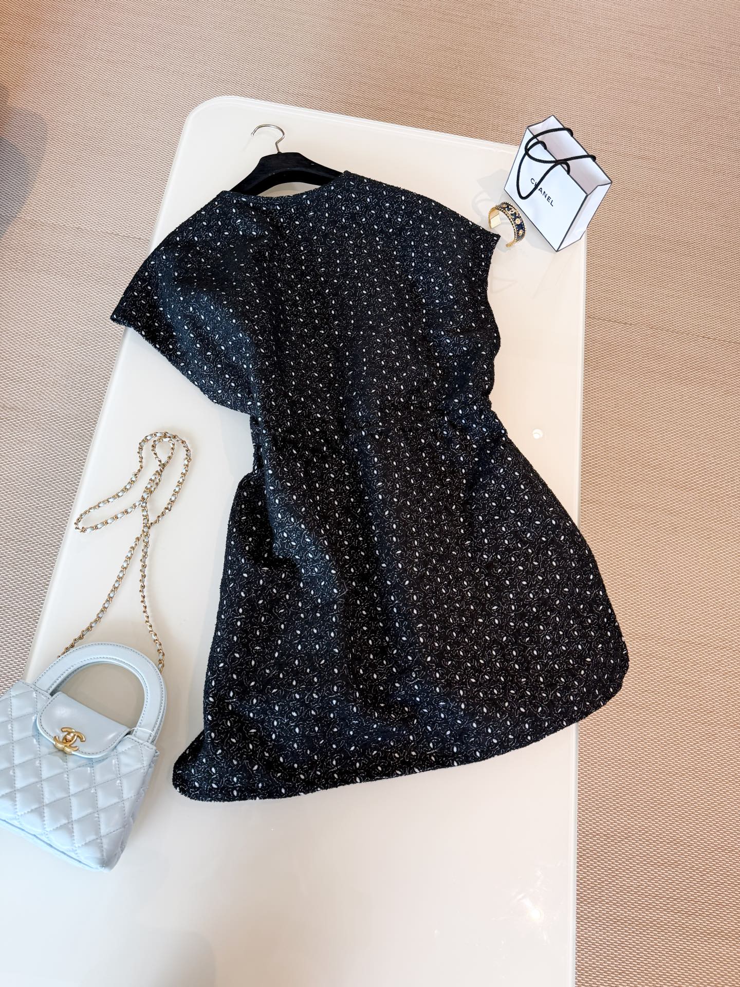 NIGO Chanel Women's Summer Solid Colour Round Neck Button-Up Waist-cinched Embroidered Logo Short Sleeve Short Dress #nigo77939