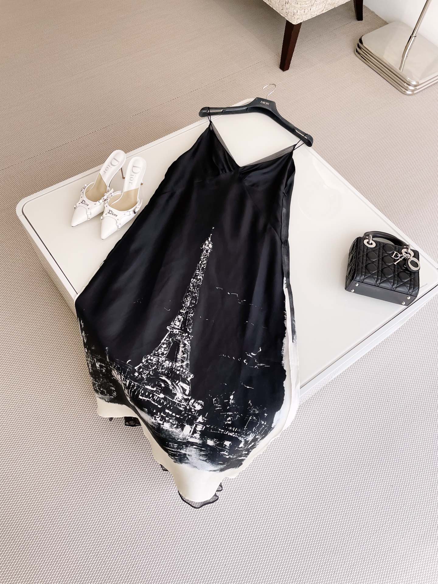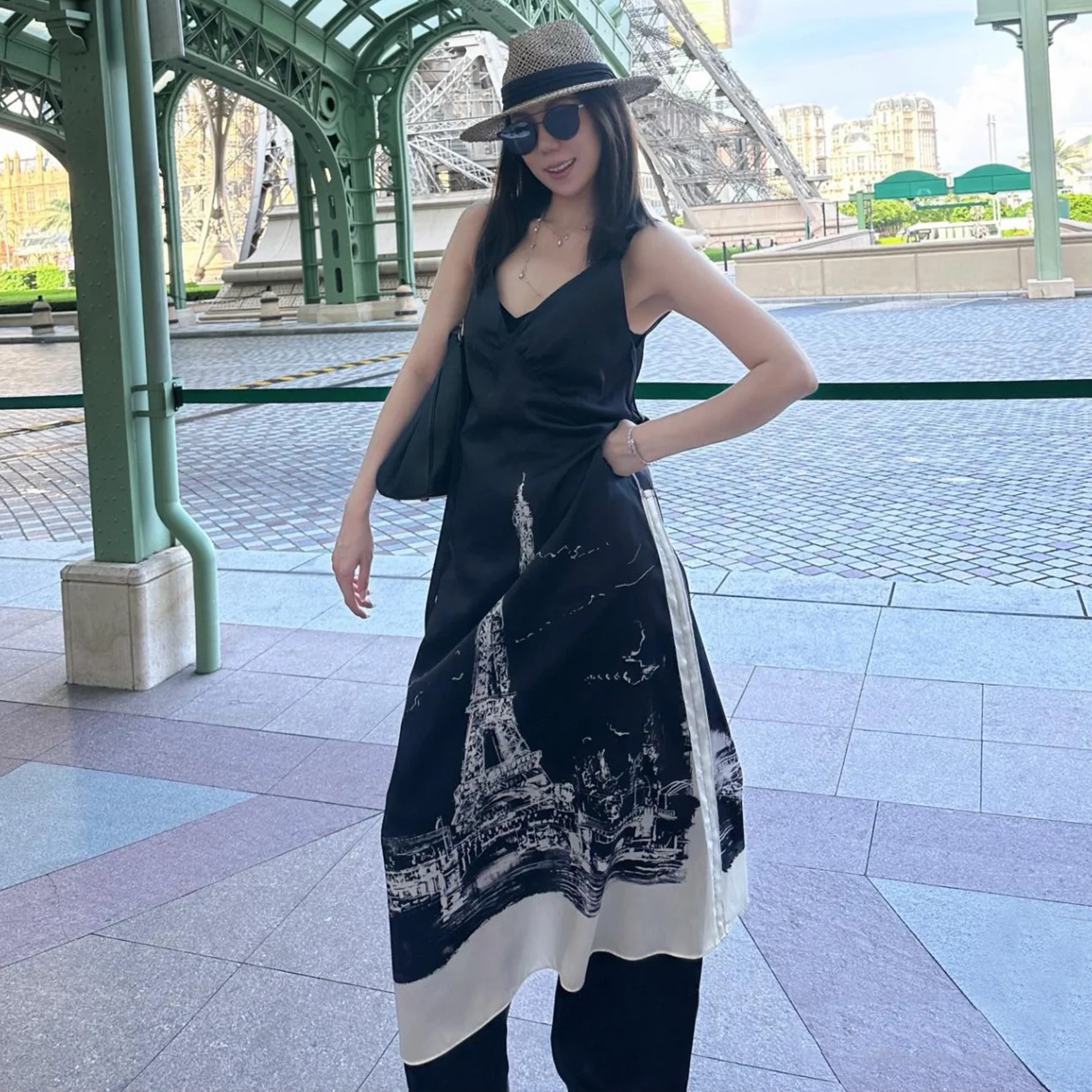 NIGO Dior Women's Summer Paris Pattern Silk A-line Midi Dress Sling Sleeveless Fashion V-neck Dresses Ngvp #nigo8727