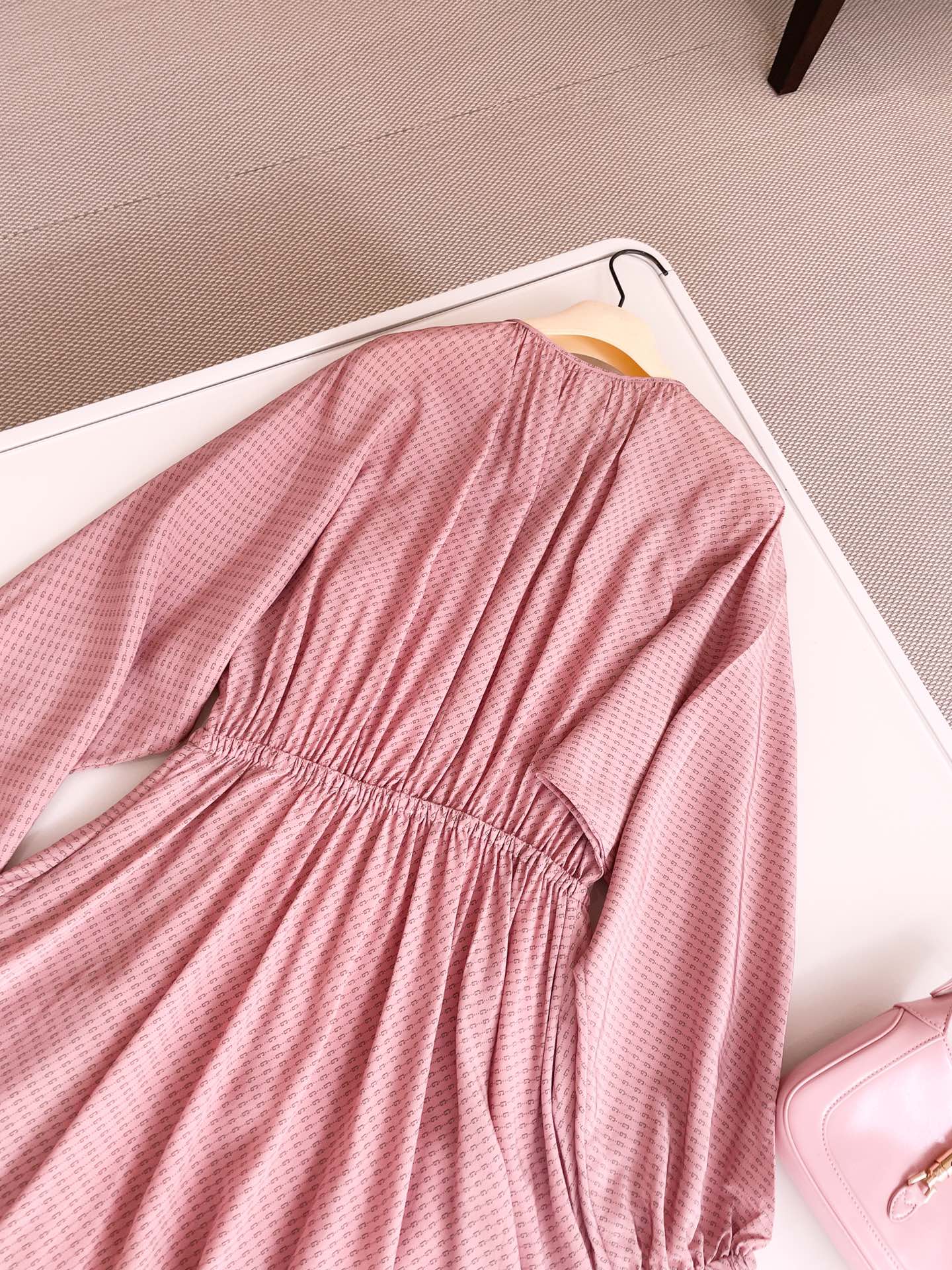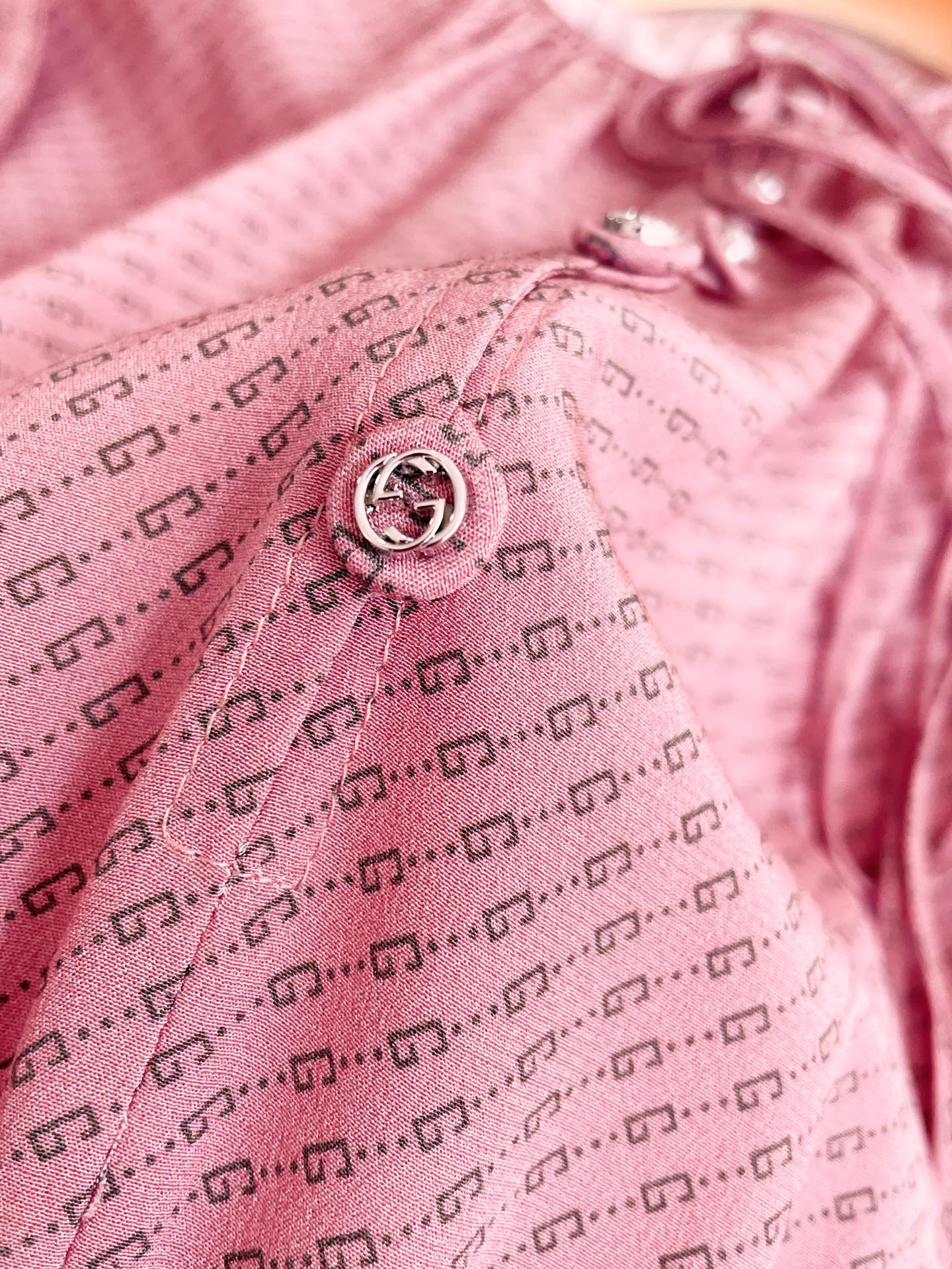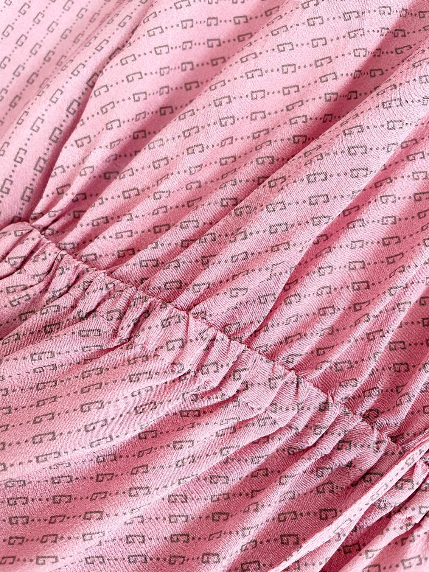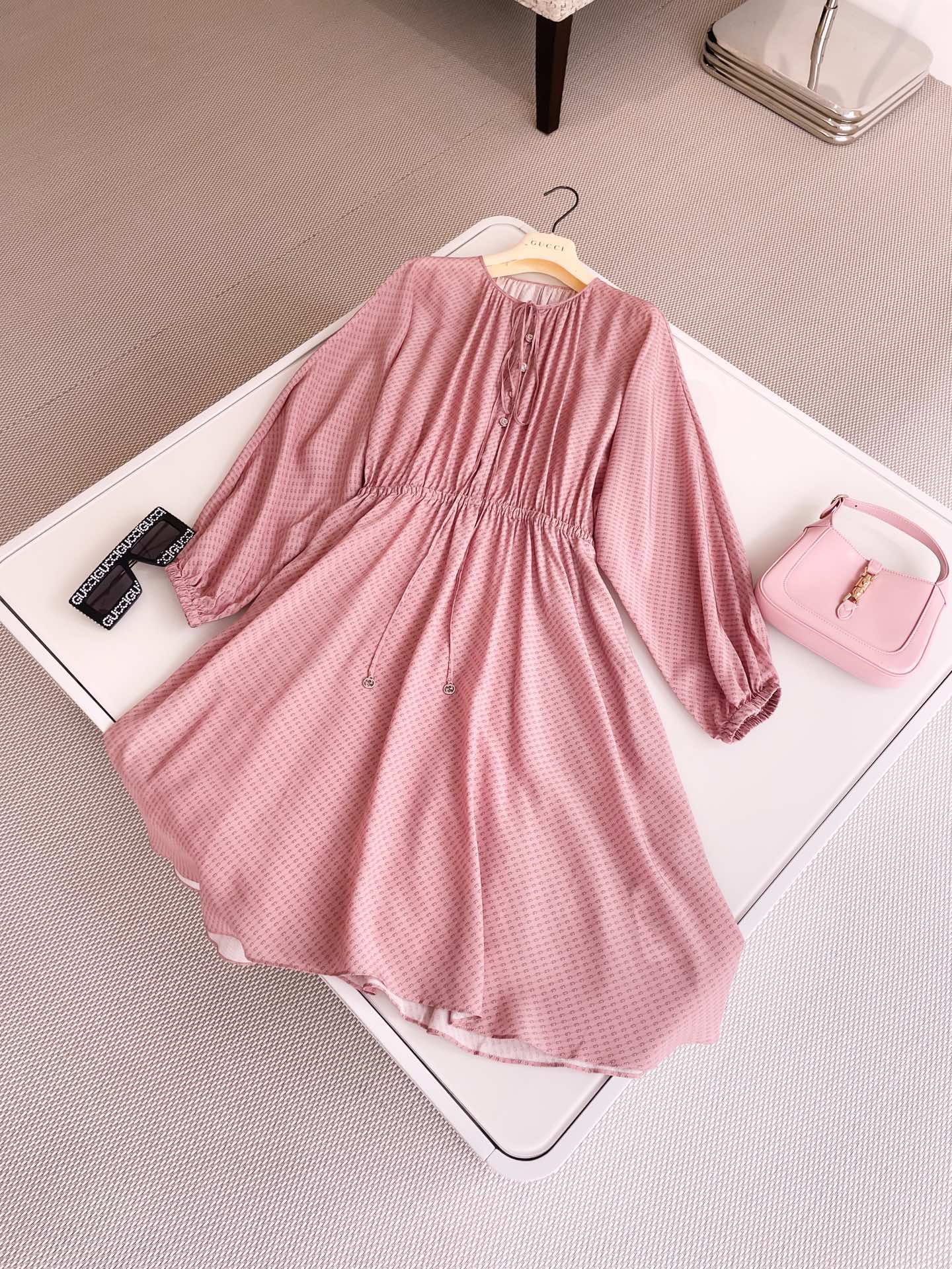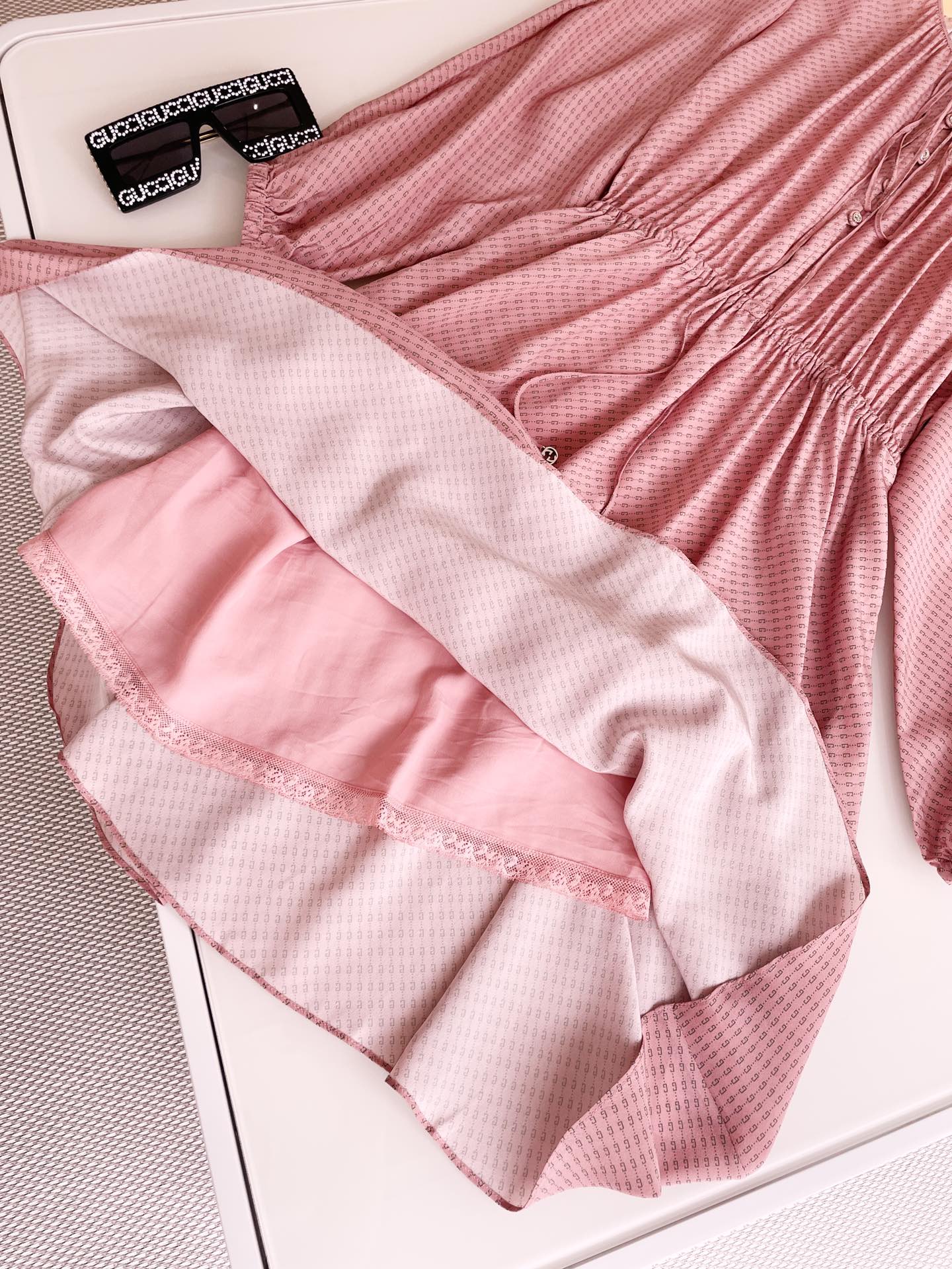 NIGO Gucci Women's Summer Pink All Over Logo Printed Silk Tunic Long Sleeve Dresses #nigo72483