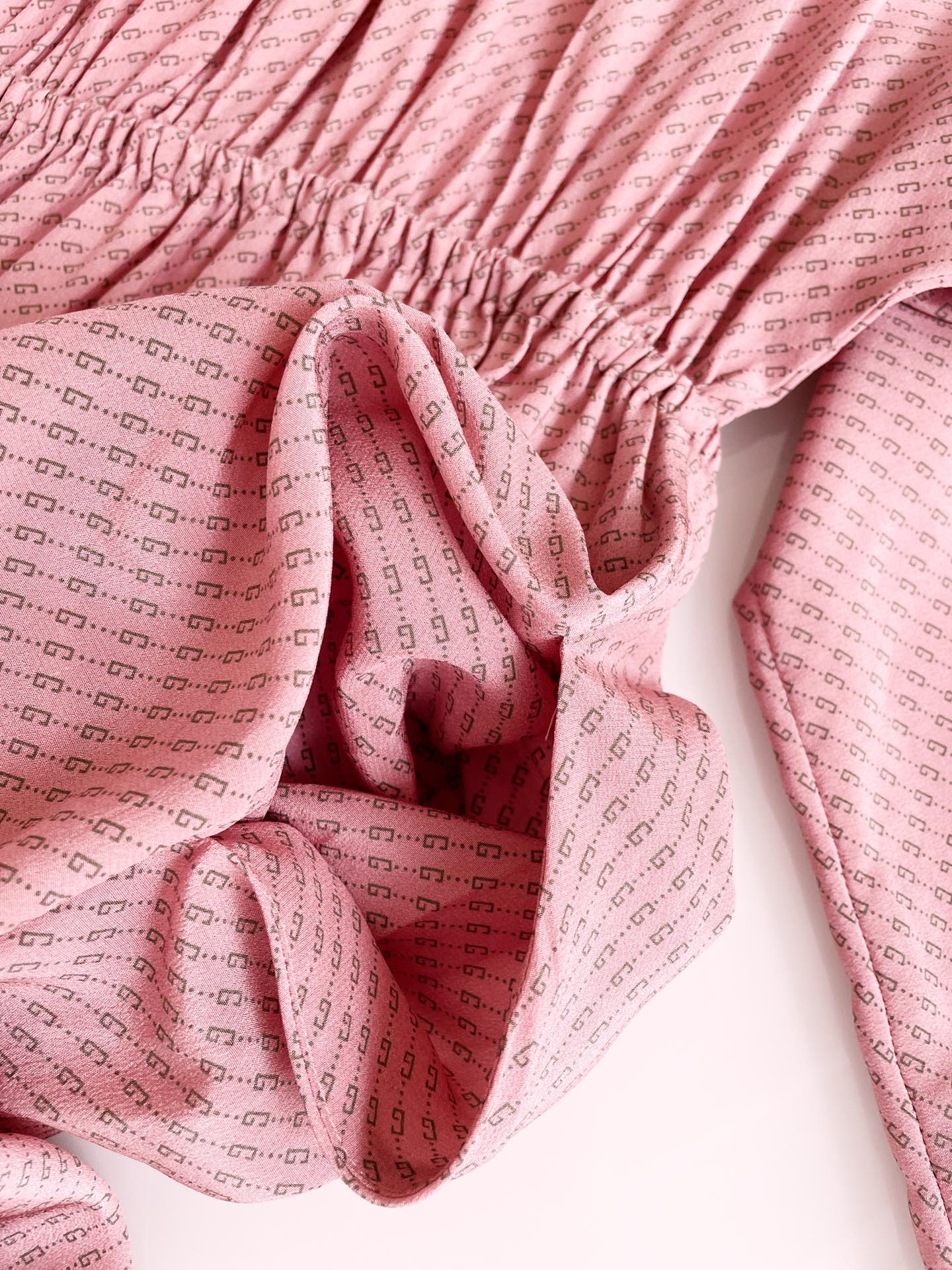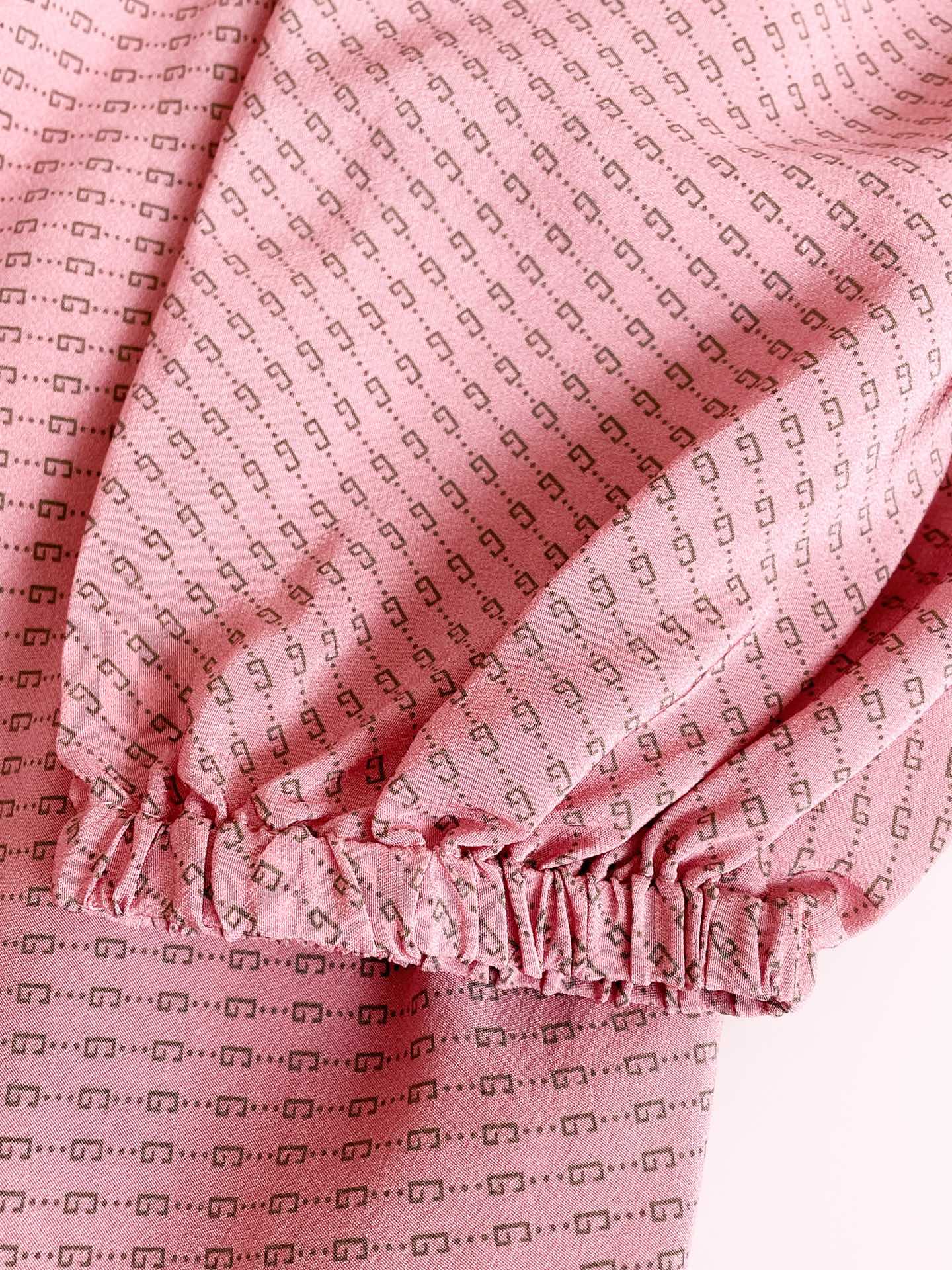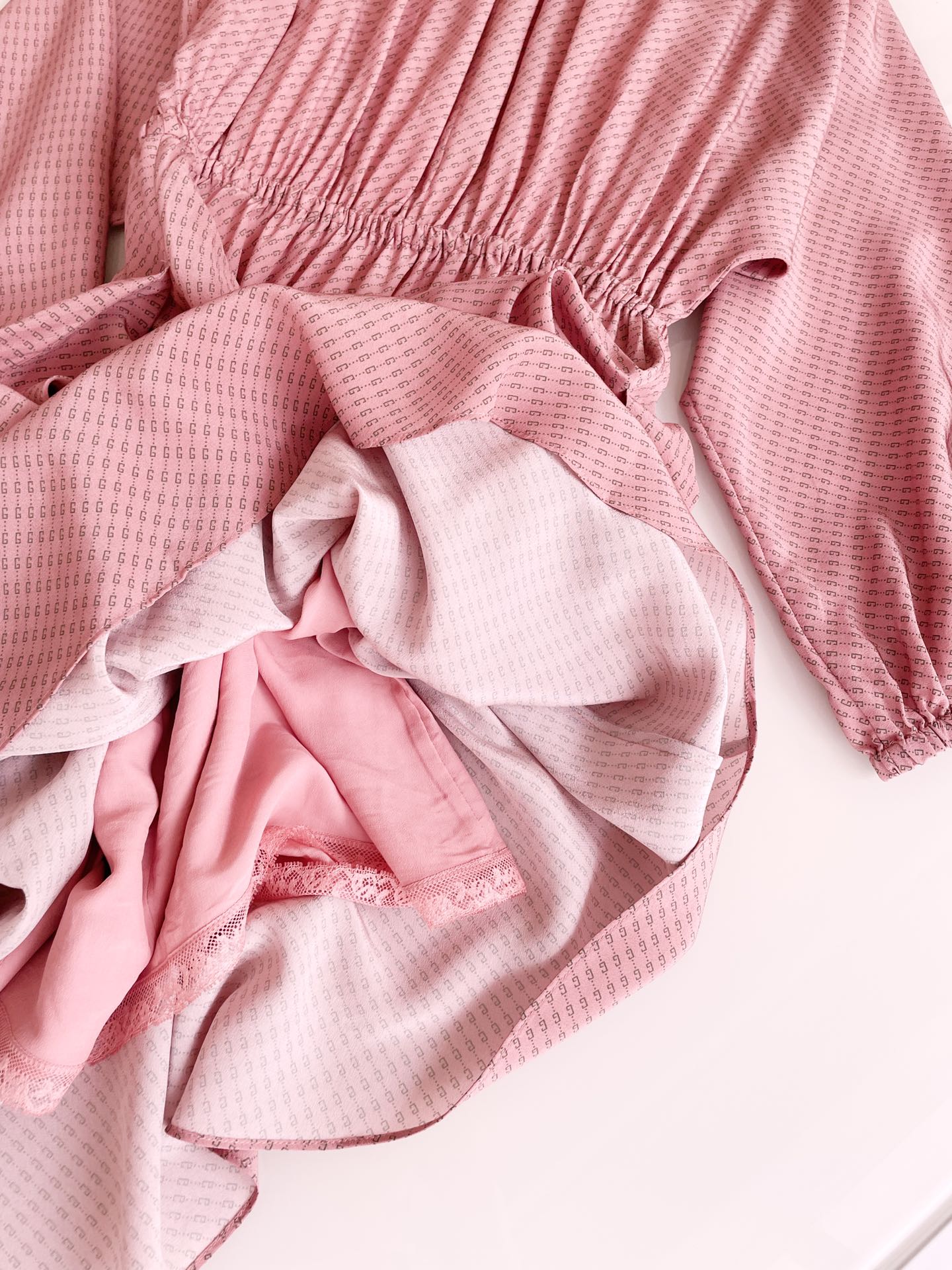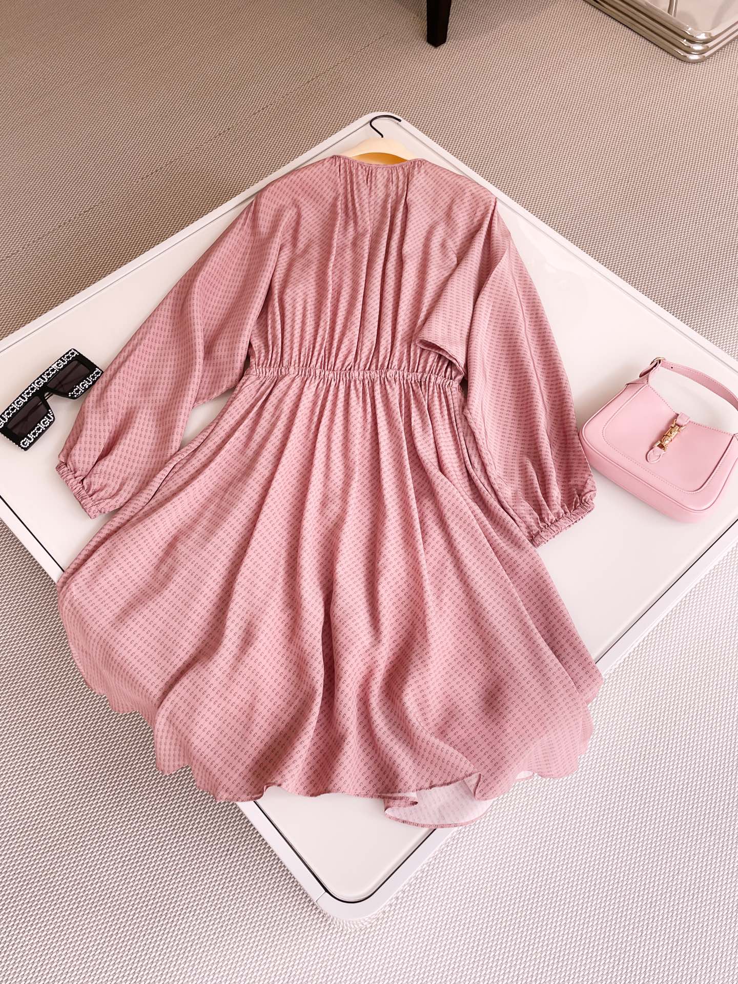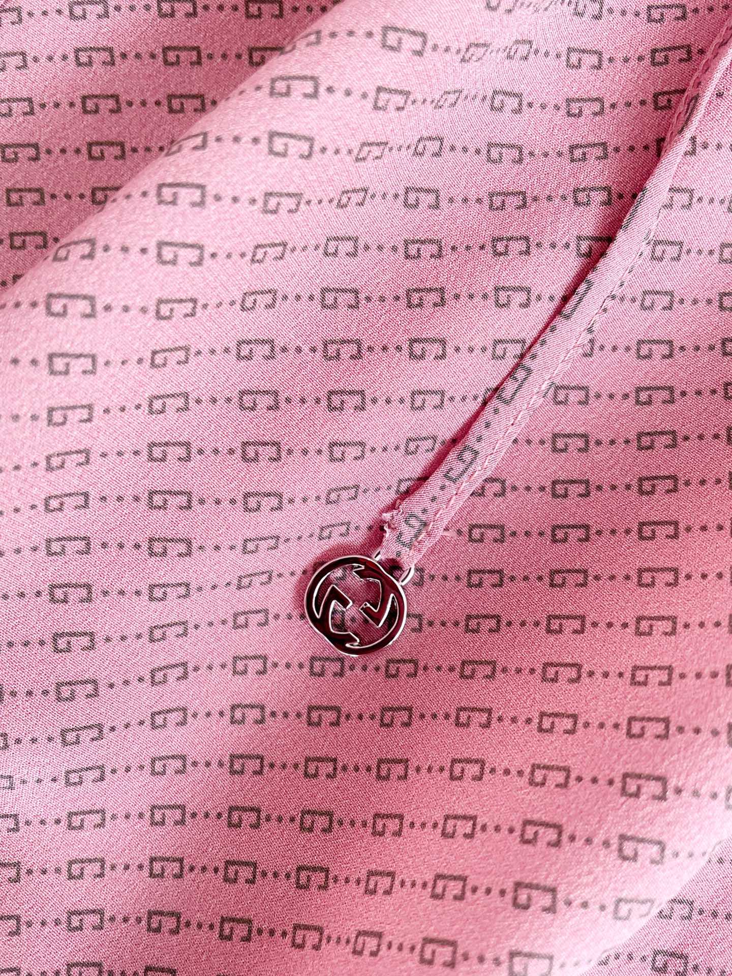 NIGO Gucci Women's Summer Pink All Over Logo Printed Silk Tunic Long Sleeve Dresses #nigo72483