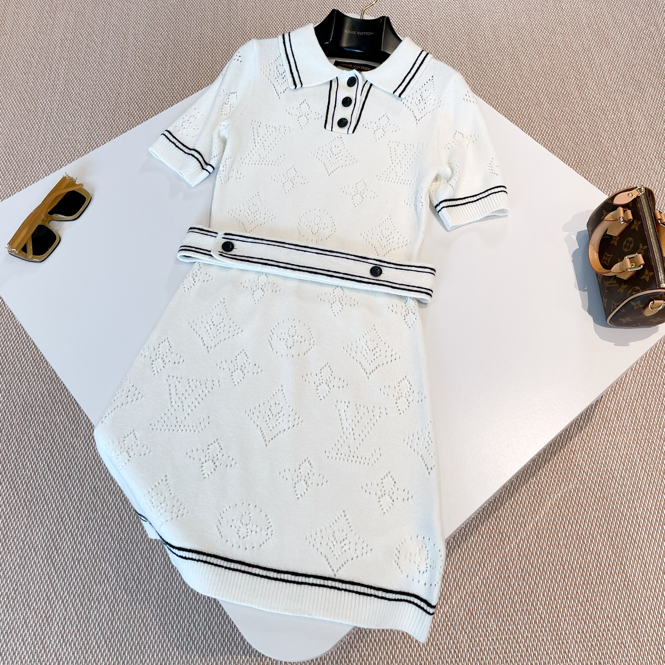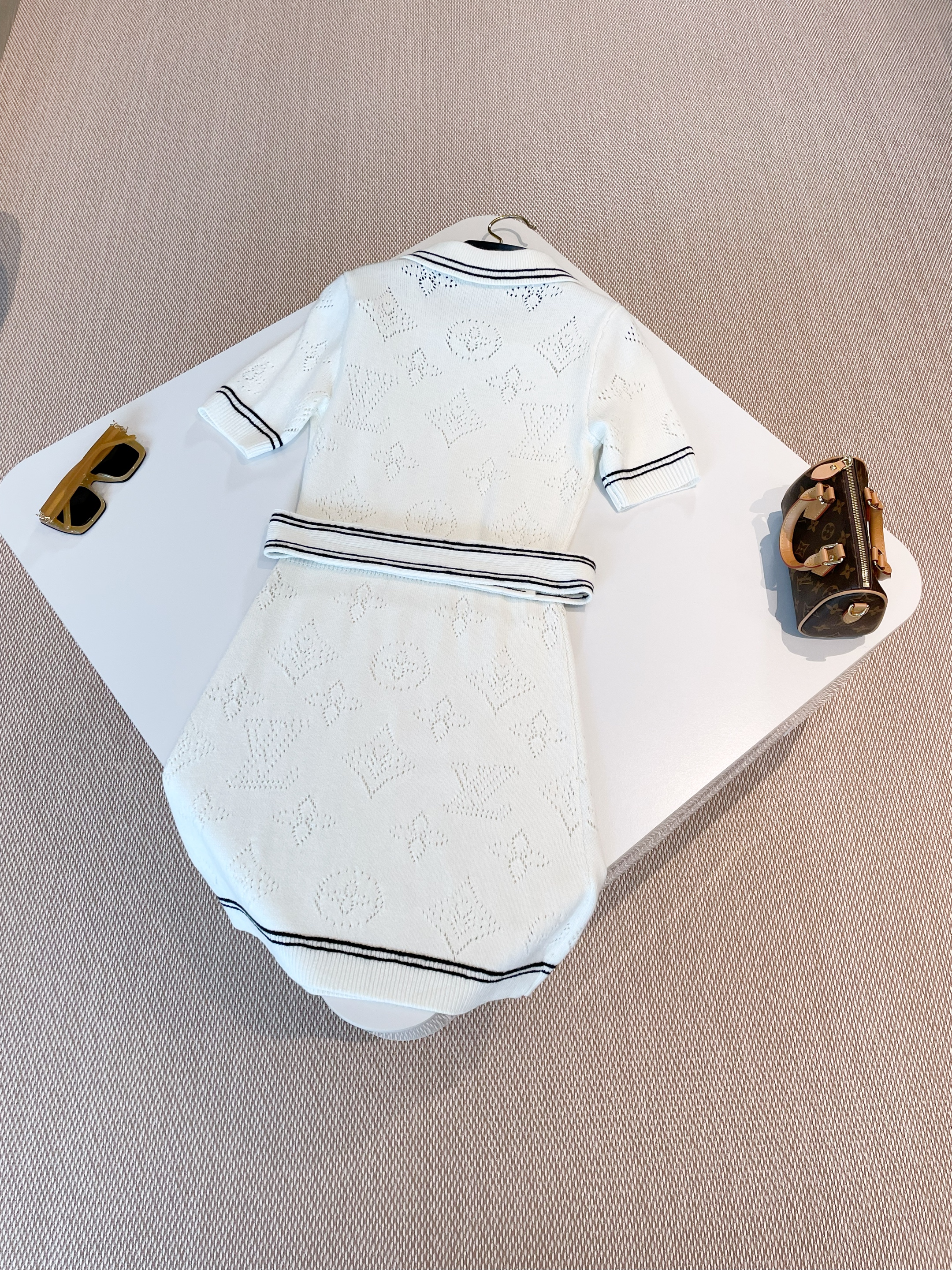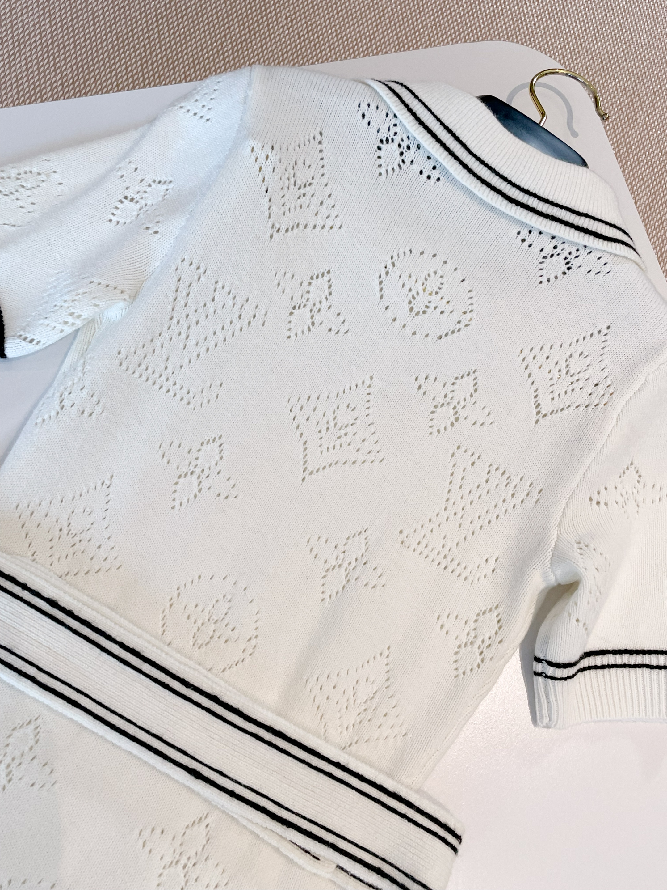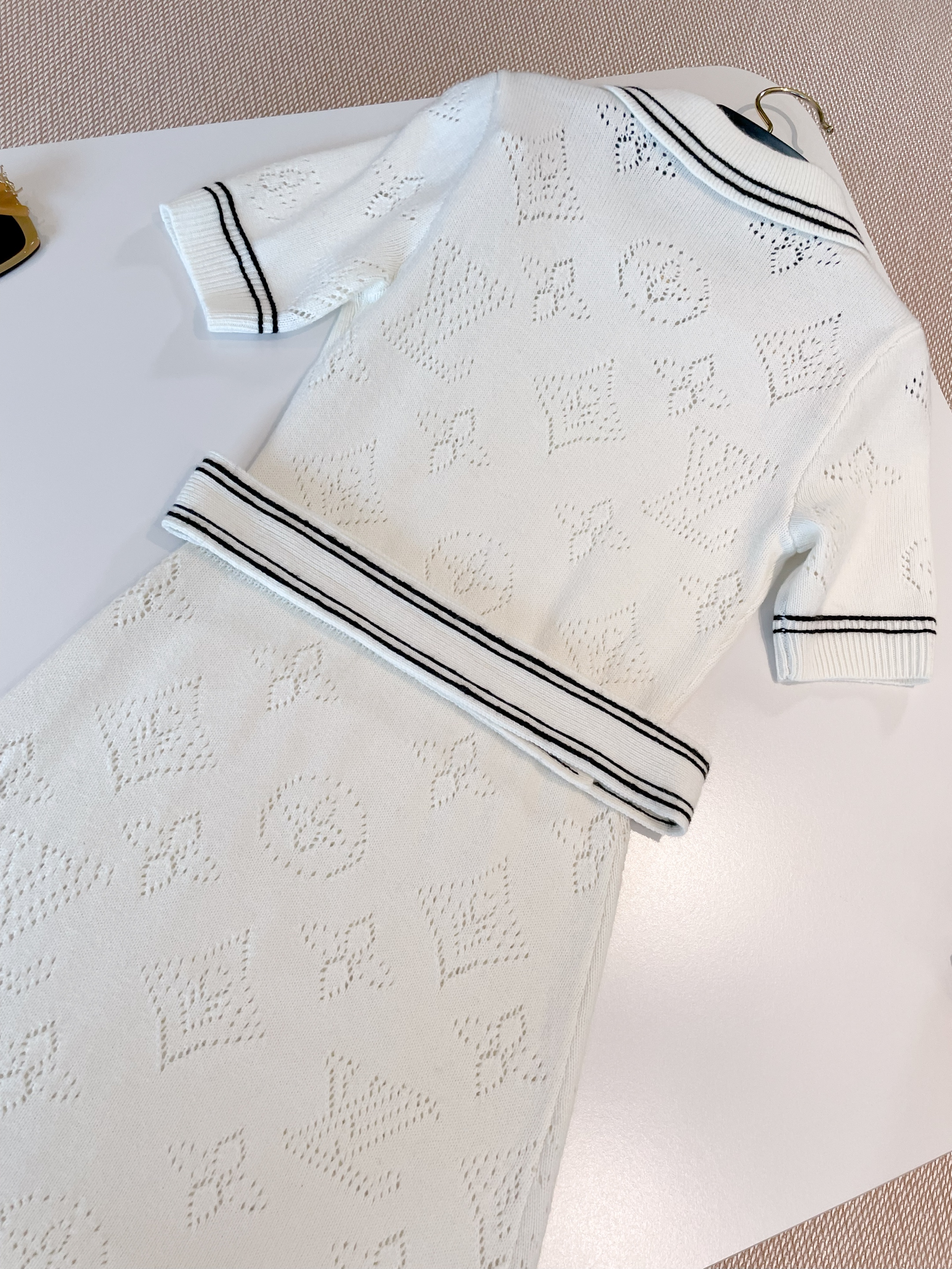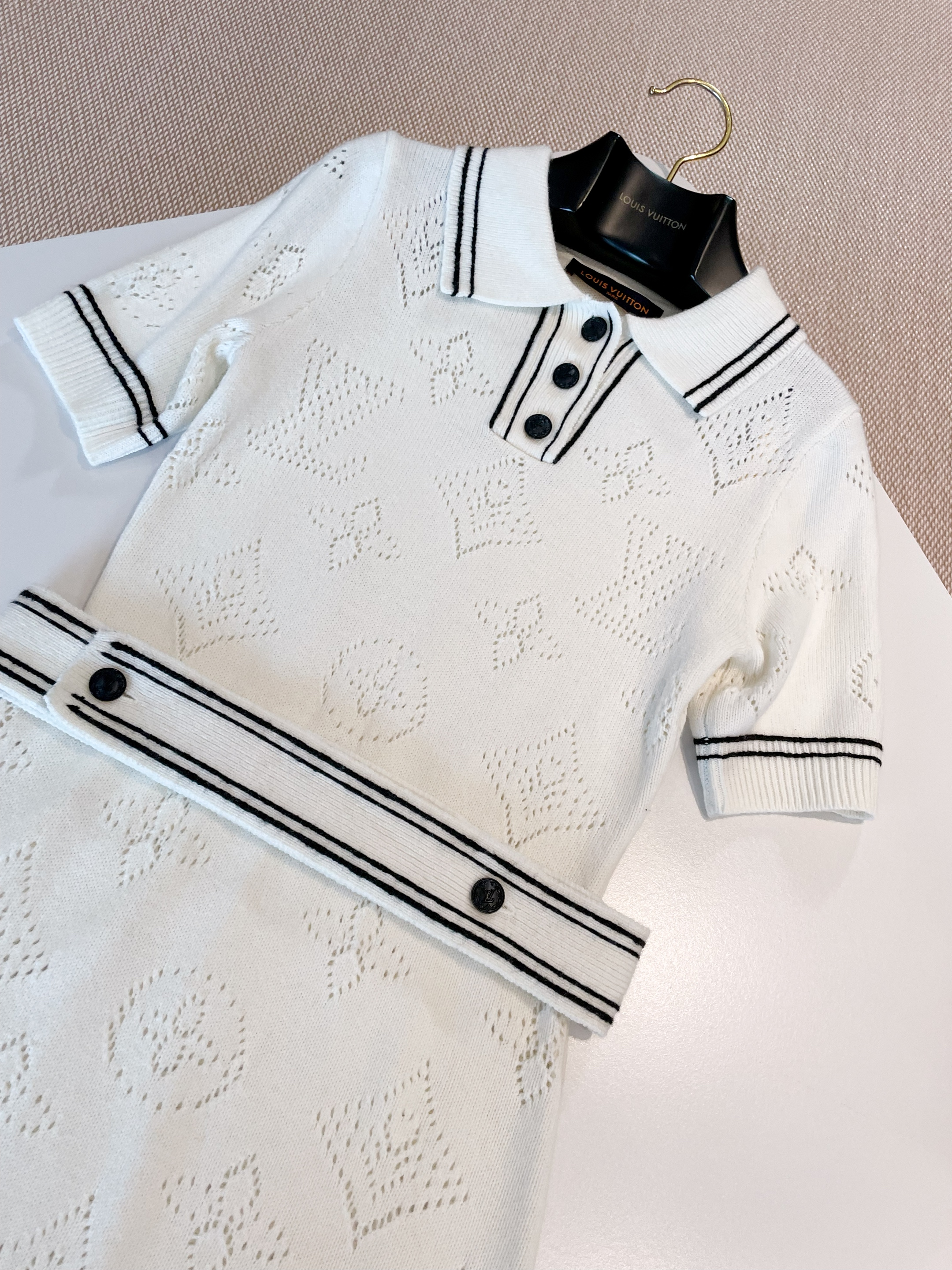 NIGO Louis Vuitton Women's Spring And Summer Hollow Monogram Jacquard Knitted Dress Lapel Polo Fashion Trend Modern Dresses #nigo75995