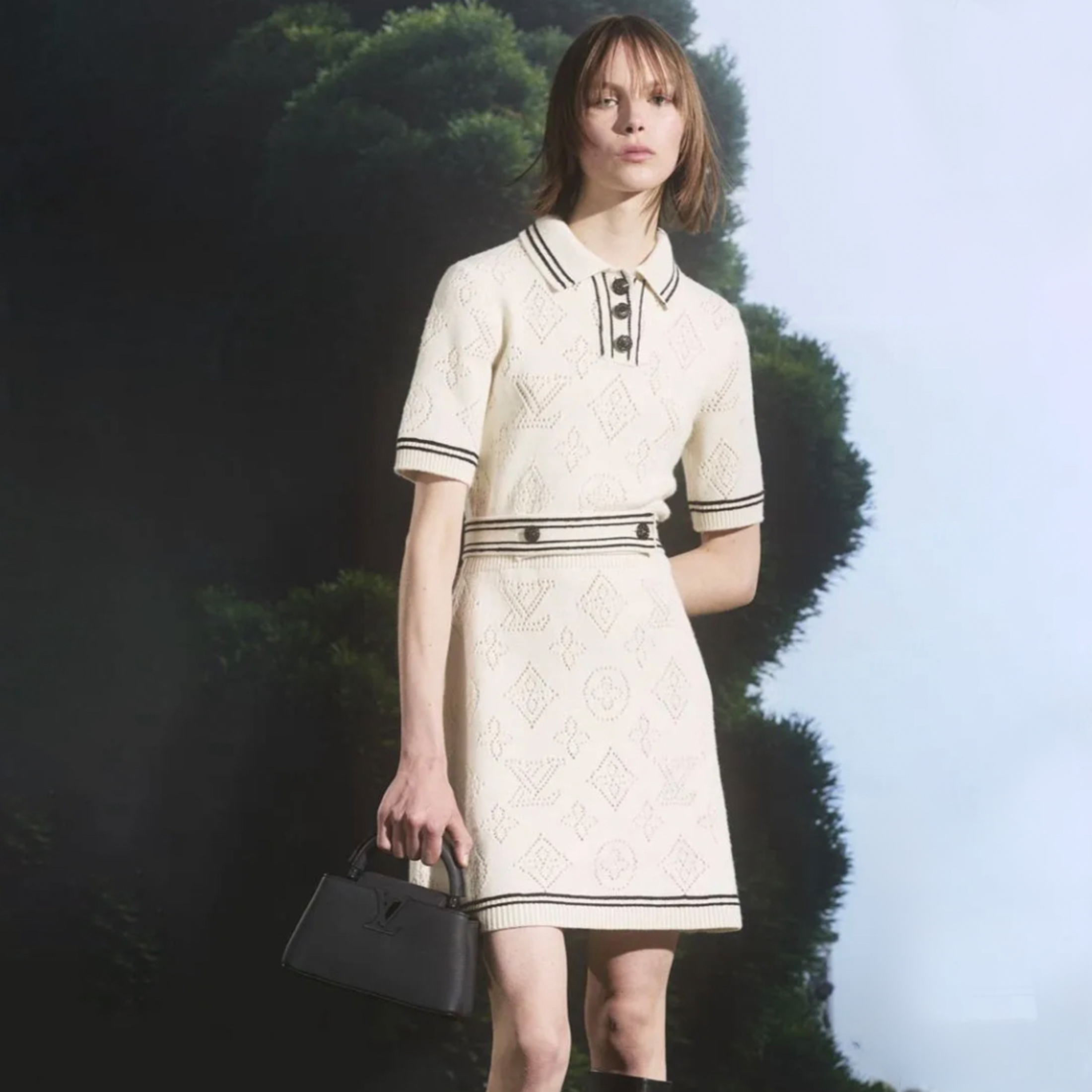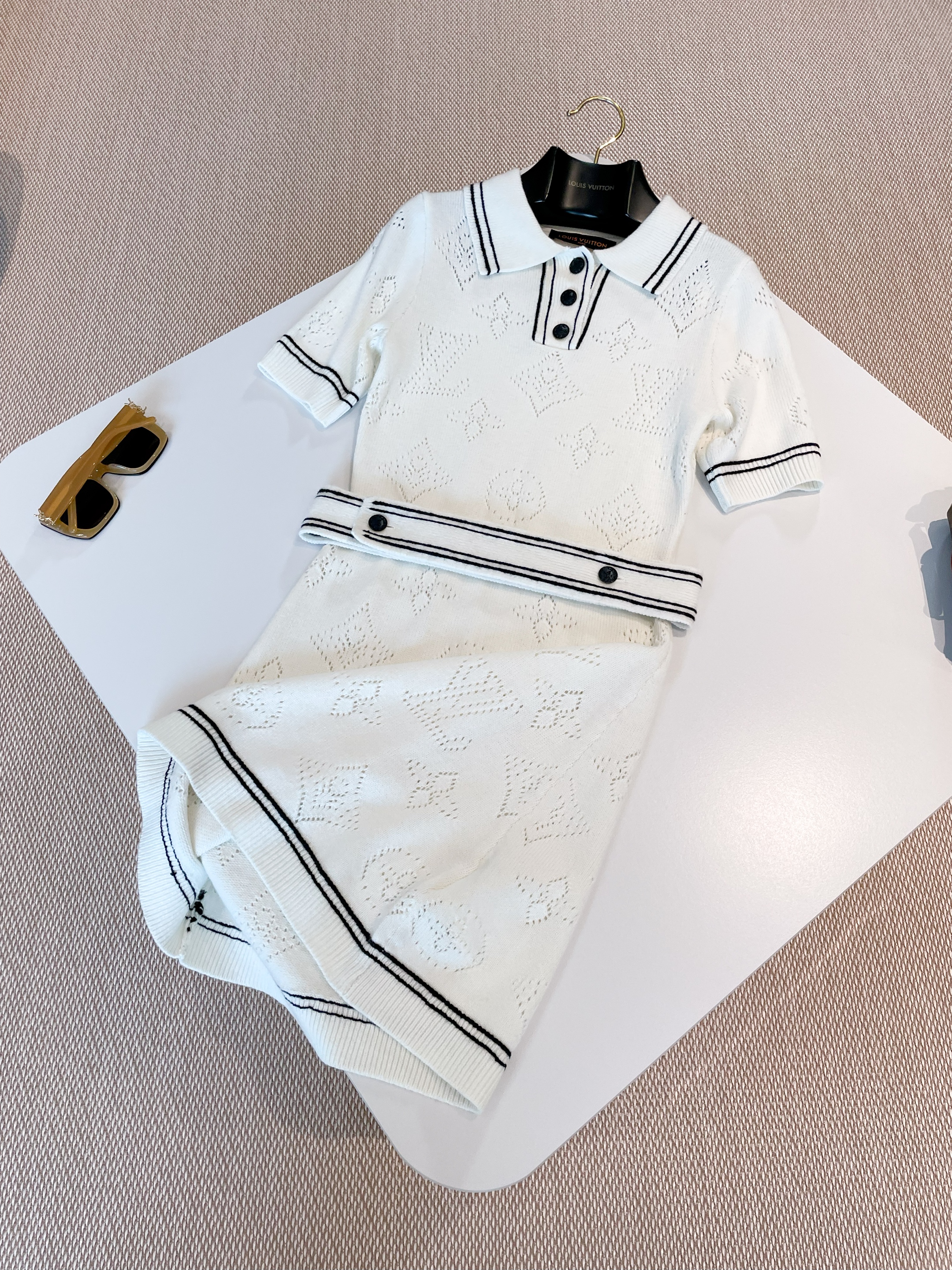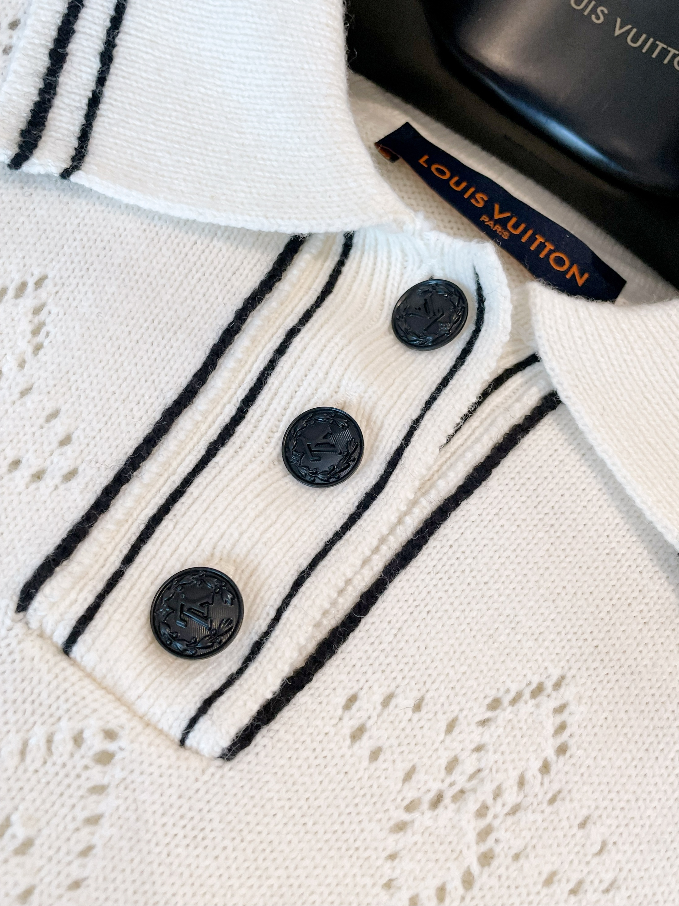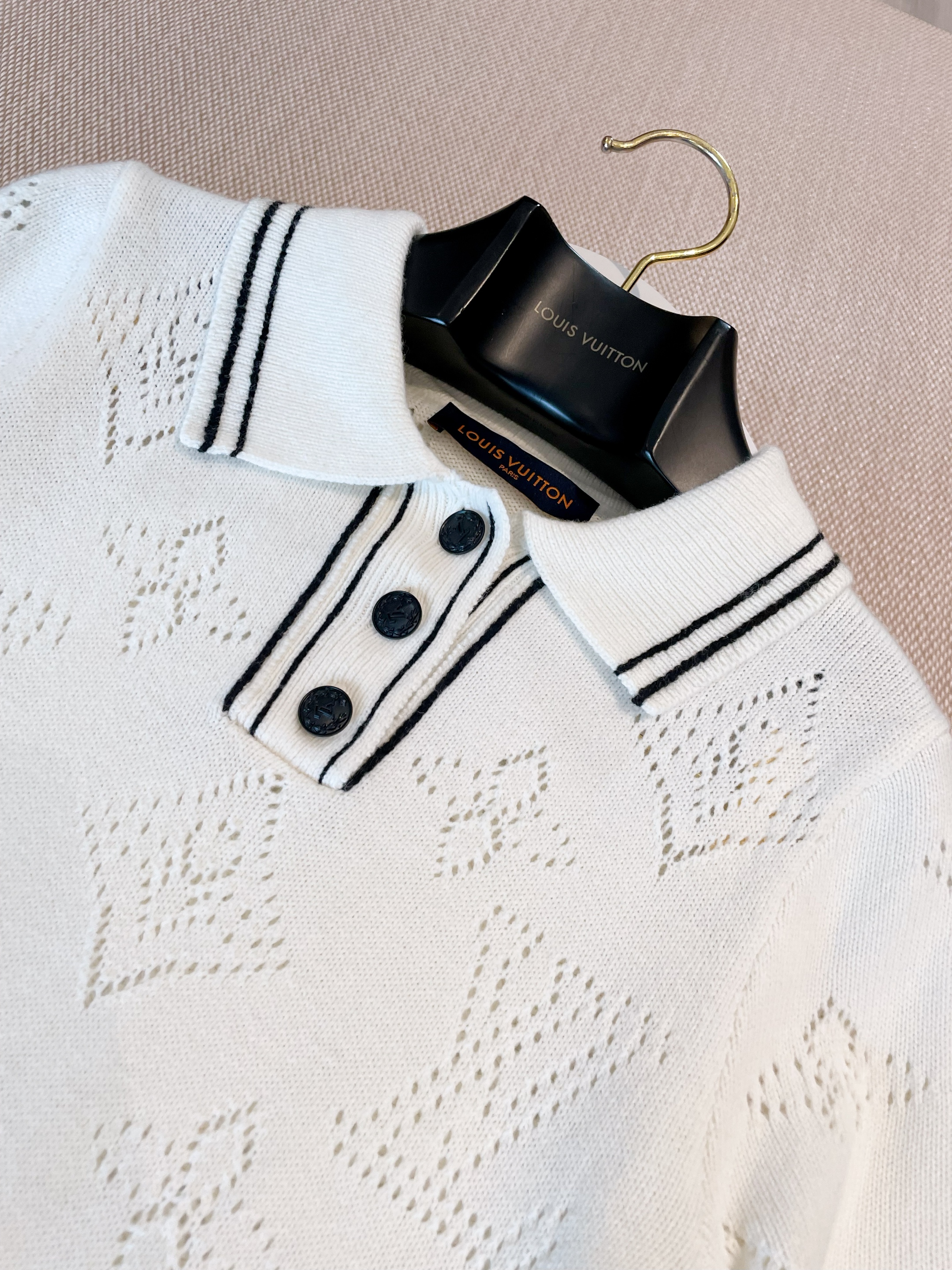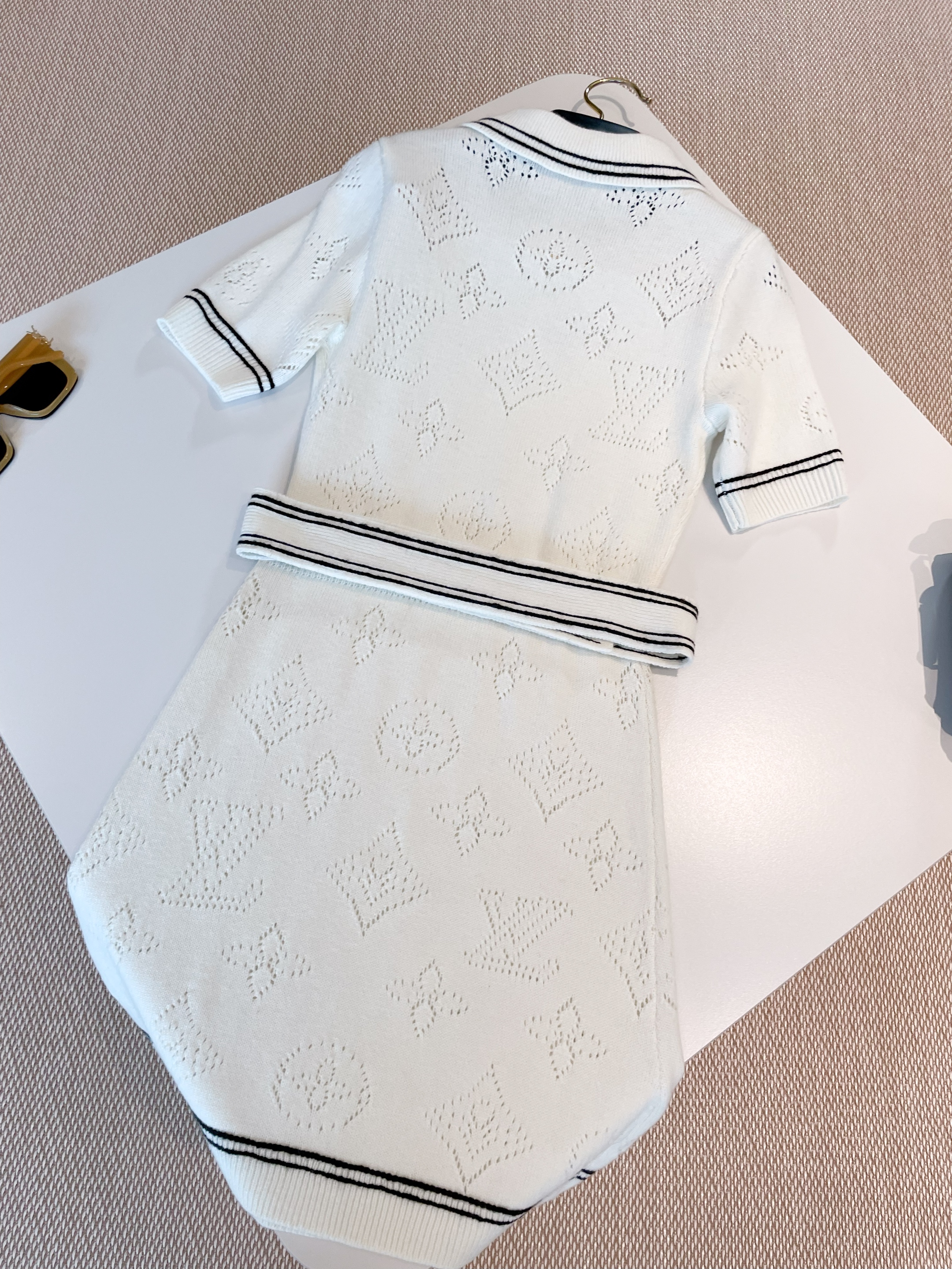 NIGO Louis Vuitton Women's Spring And Summer Hollow Monogram Jacquard Knitted Dress Lapel Polo Fashion Trend Modern Dresses #nigo75995