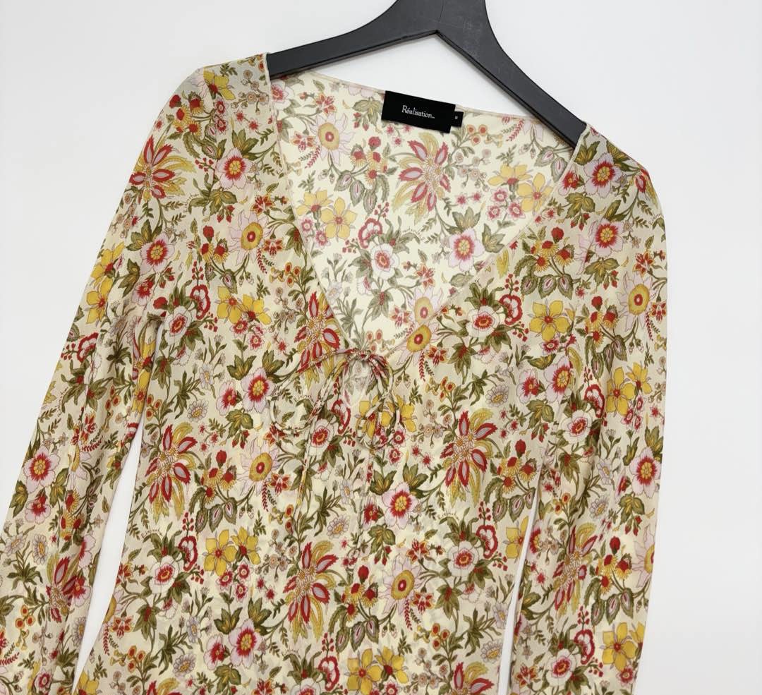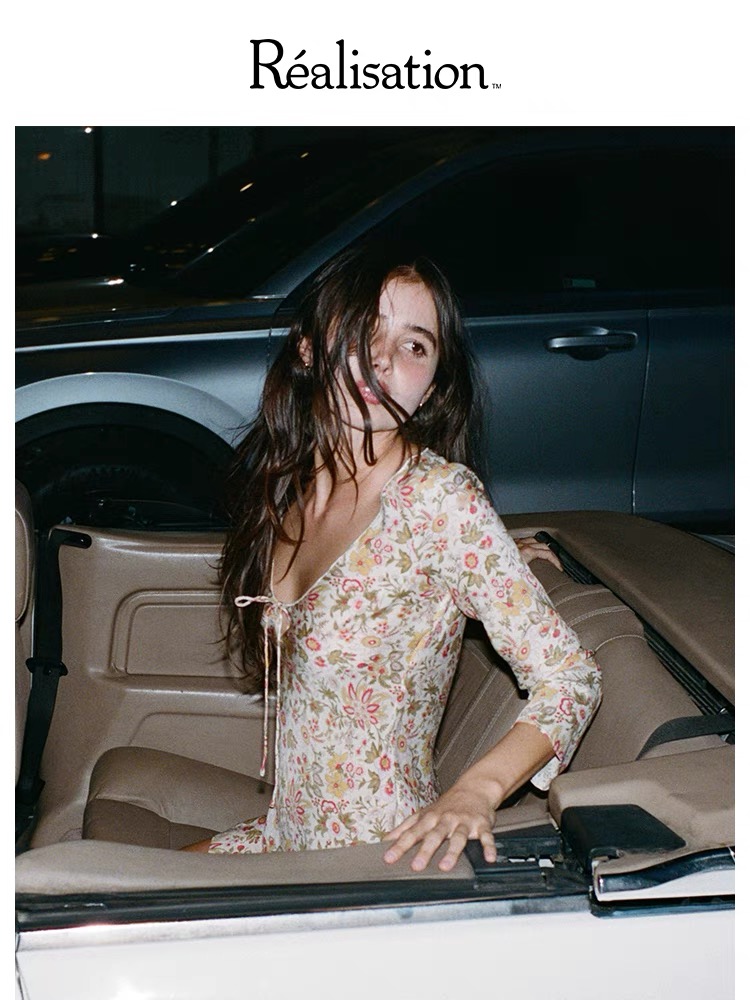 NIGO Realisation Par Women's 100% Silk Summer Vacation Style Beach Photo Deep V-neck Long-sleeved Sunscreen Short Floral Dress Temperament Elegant Dress Dresses Ngvp #nigo1968