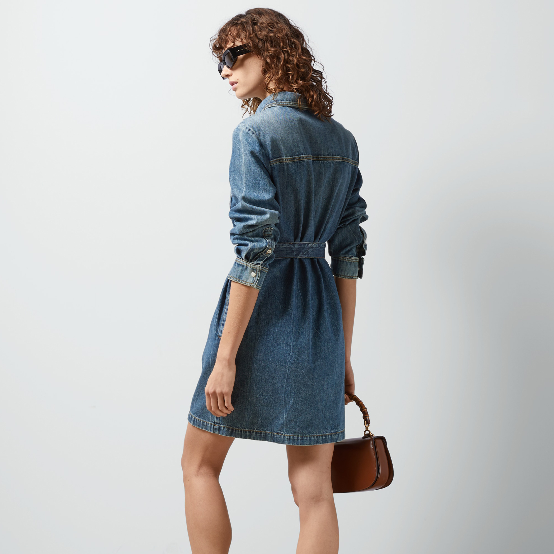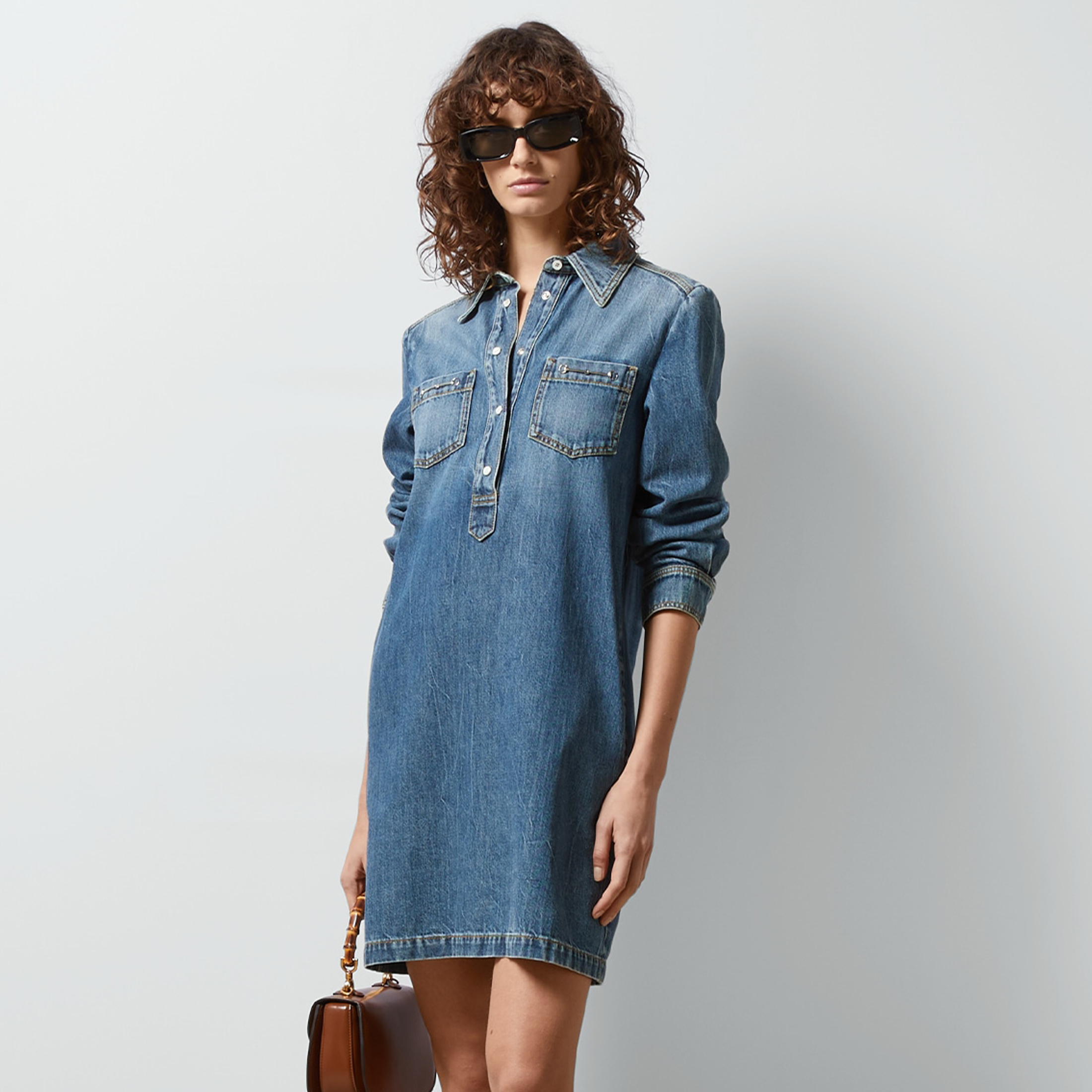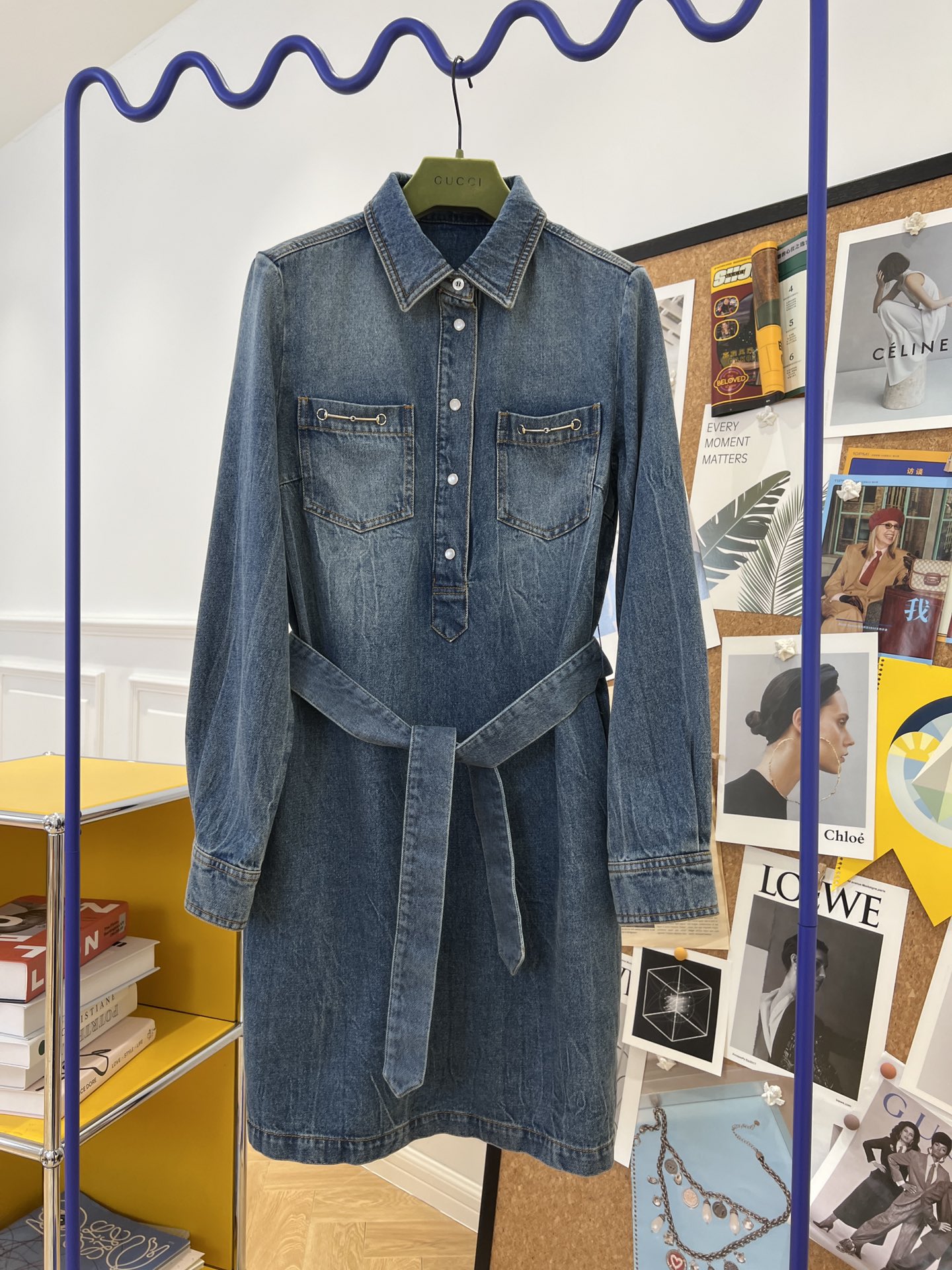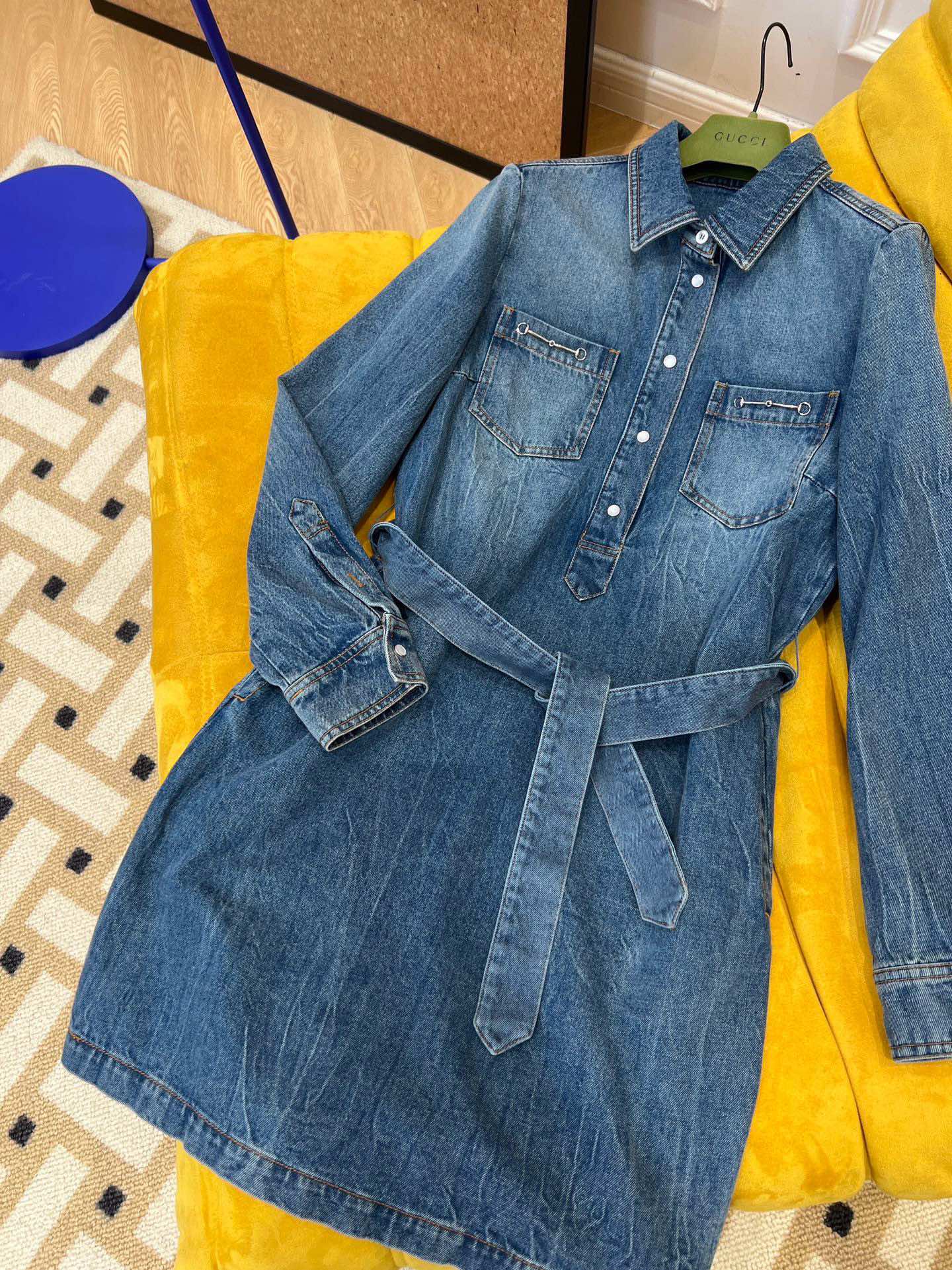 NIGO Gucci Women's Spring And Autumn Fashion Blue Denim Dress Vintage Silhouette Belted Shirt Dresses #nigo71483