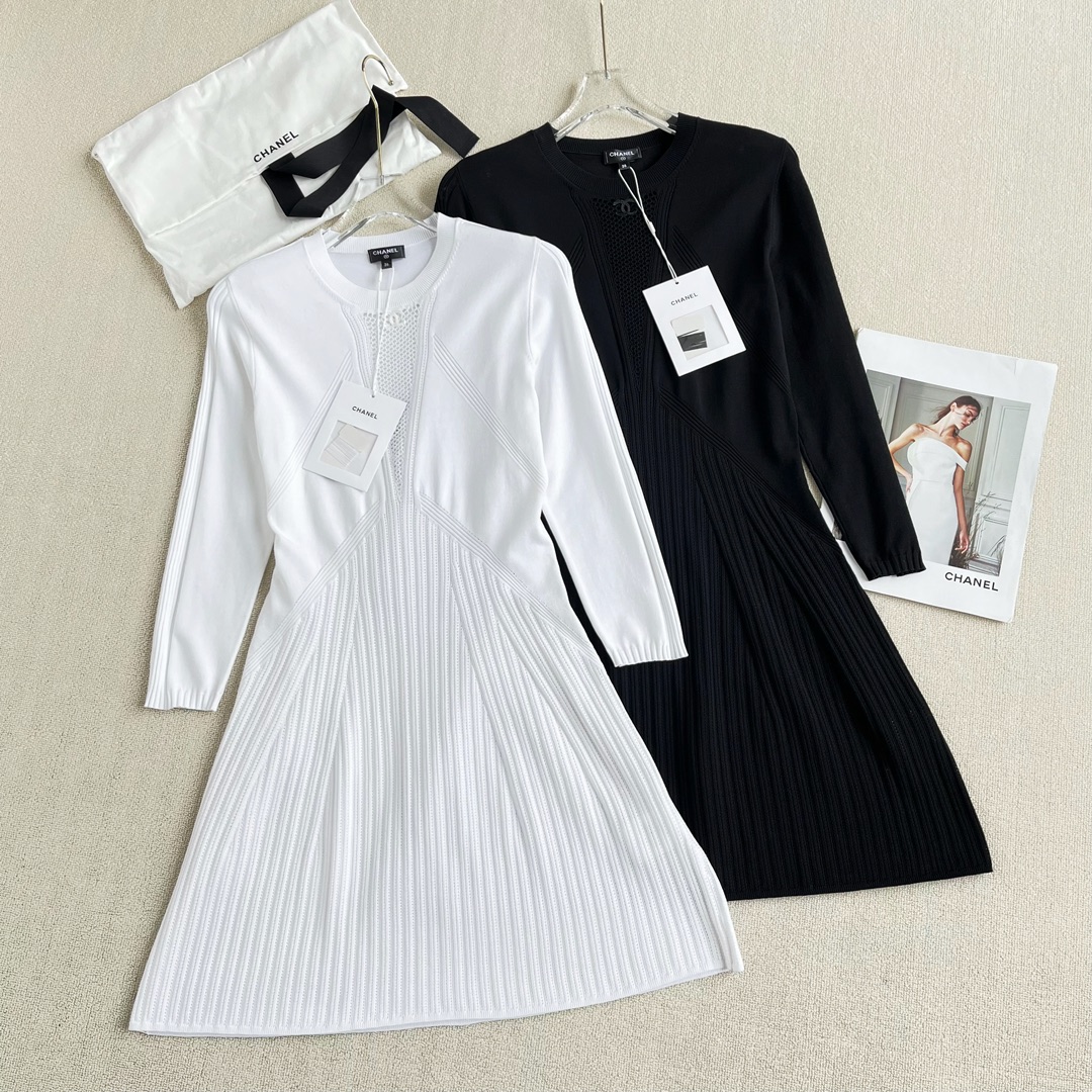 NIGO Chanel Women's Spring/Summer Solid Color Hollow Knit Long Sleeve Dresses #nigo73328