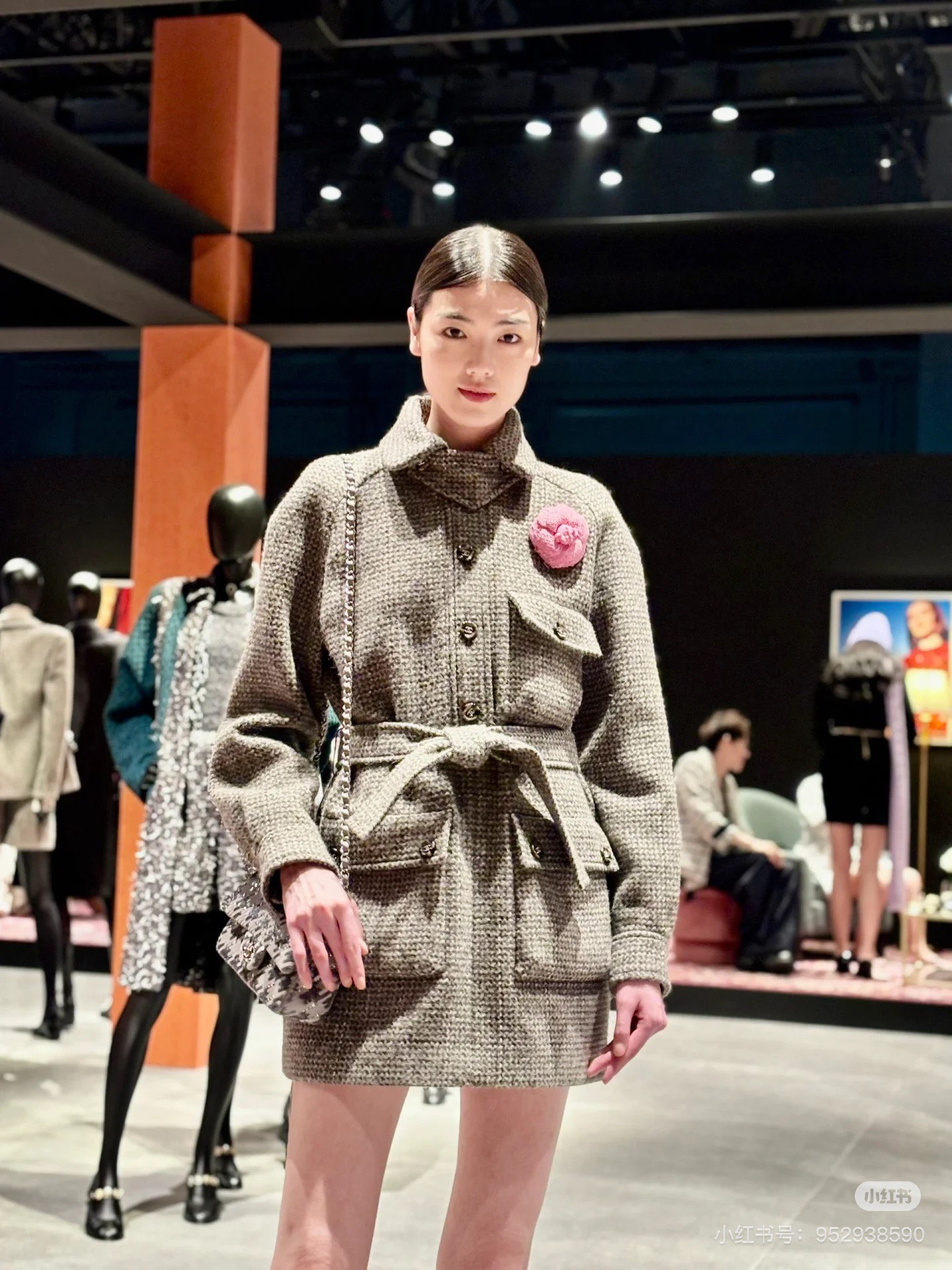 NIGO Chanel Women's Spring And Autumn Vintage Pure Color Wool Tweed Long Lace-Up Dress Coat Ngvp #nigo9369