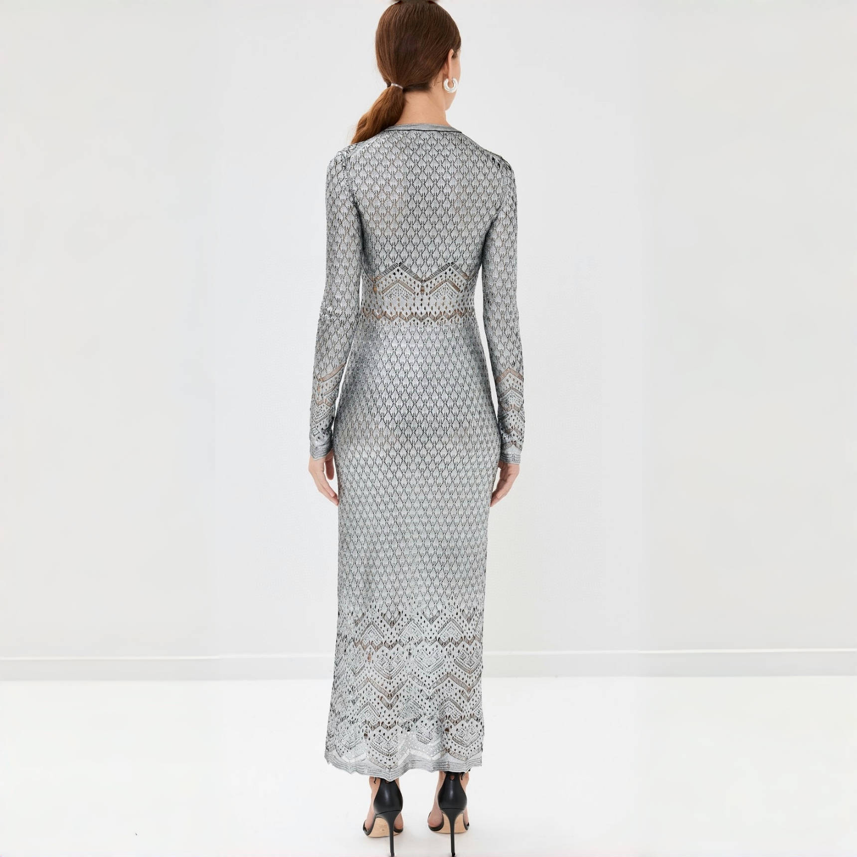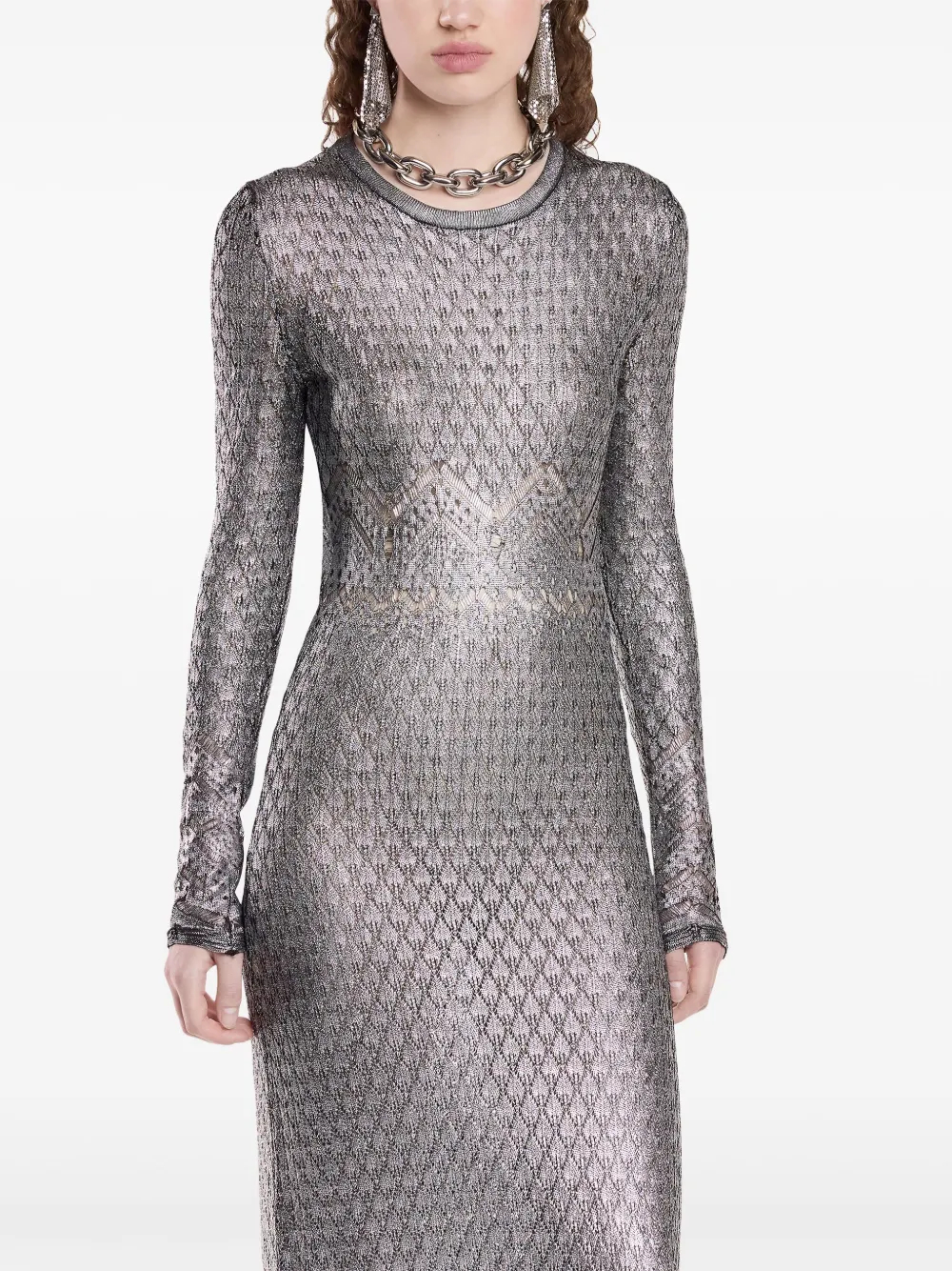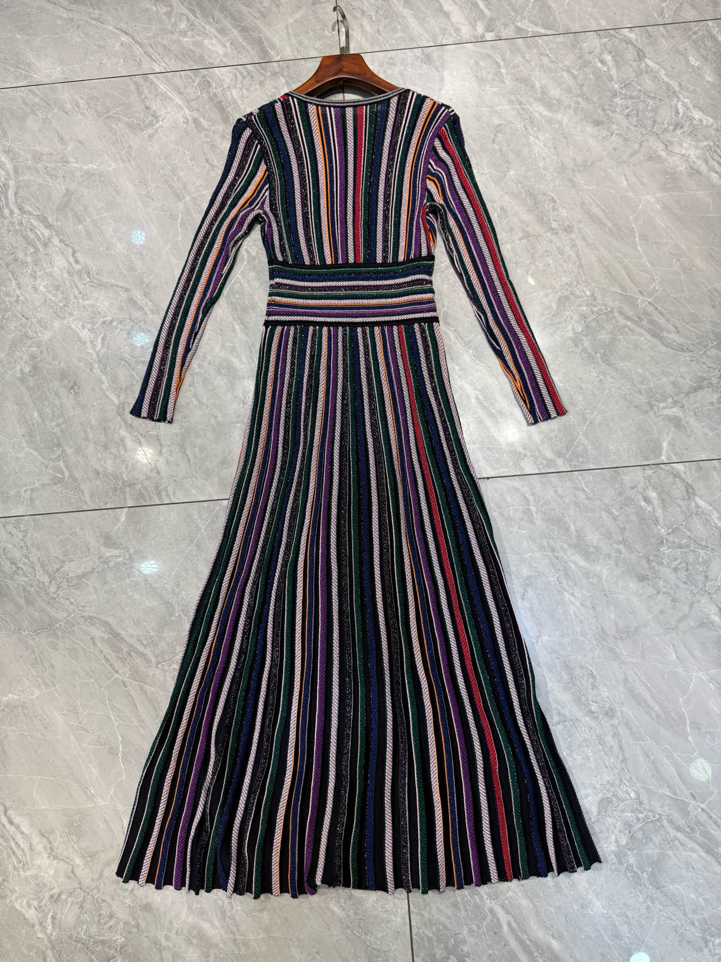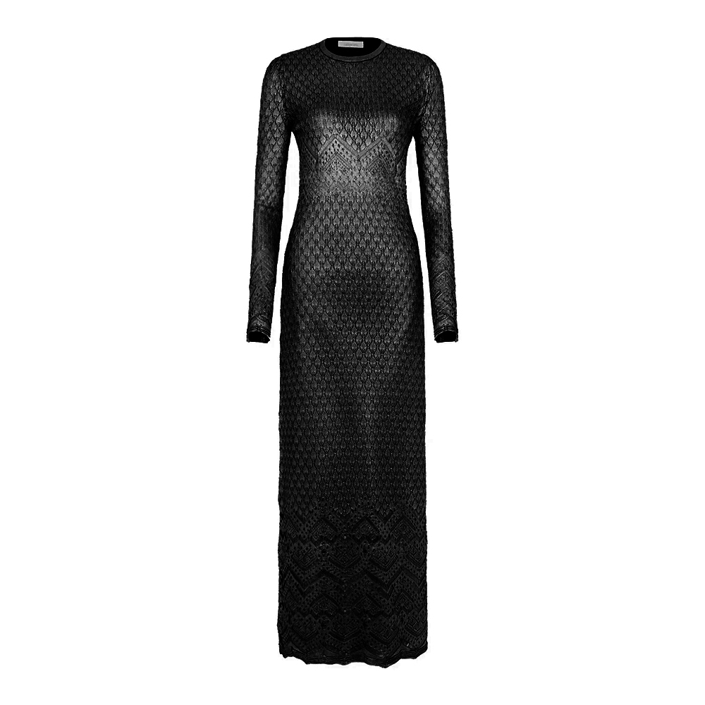 NIGO Paco Rabanne Women's Metallic Round Neck Knit Spring and Autumn Solid Color Extra Long Dresses Ngvp #nigo1847