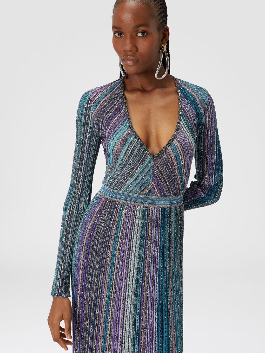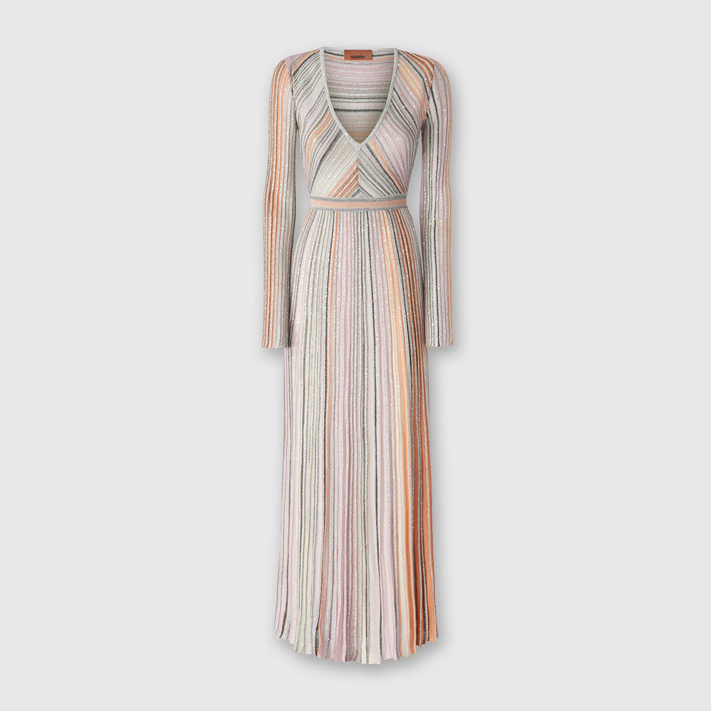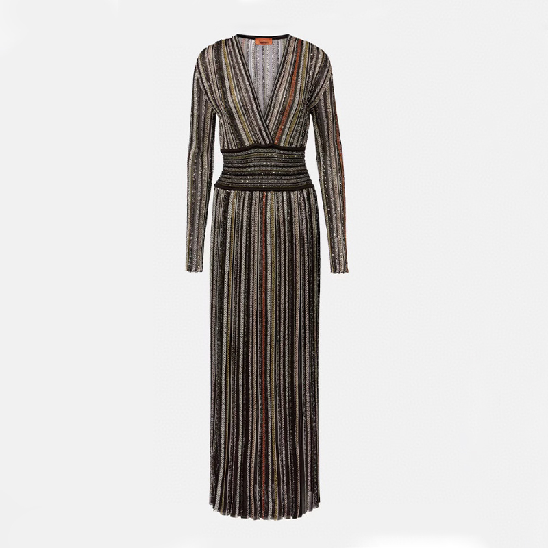 NIGO Missoni Women's Spring & Autumn Colorblocking V-Neck Knit Pullover Long Sleeve Dress Ngvp #nigo1849