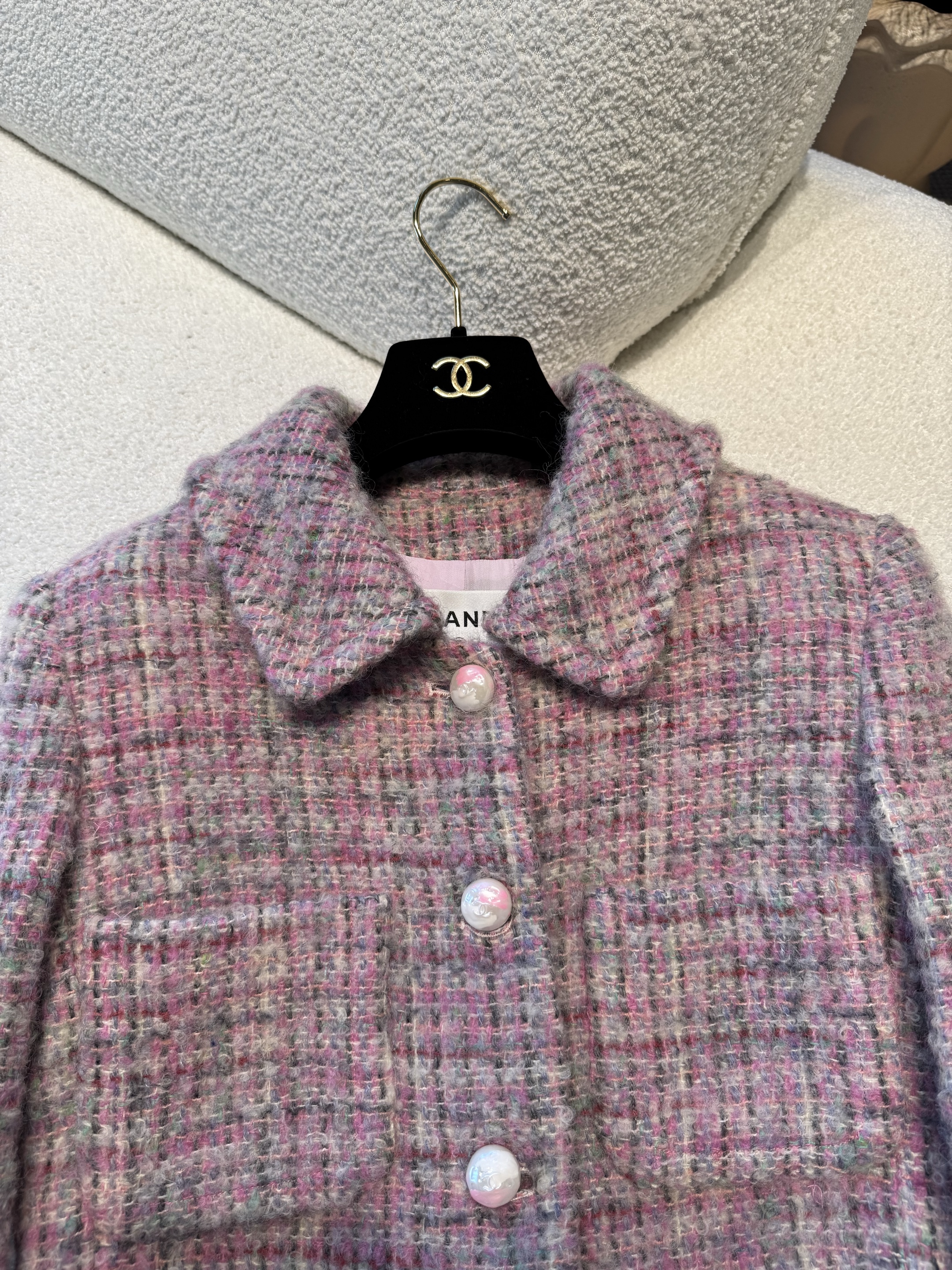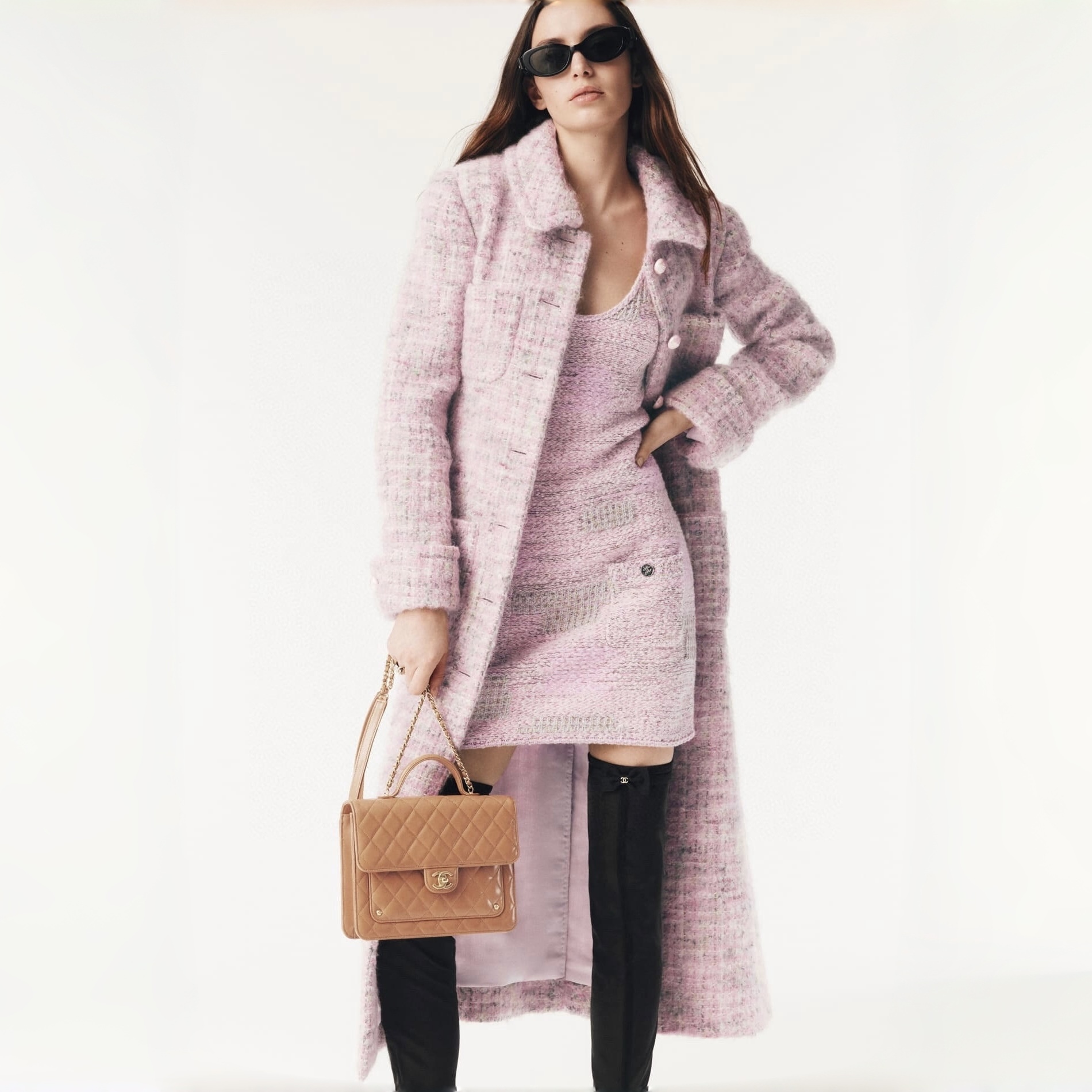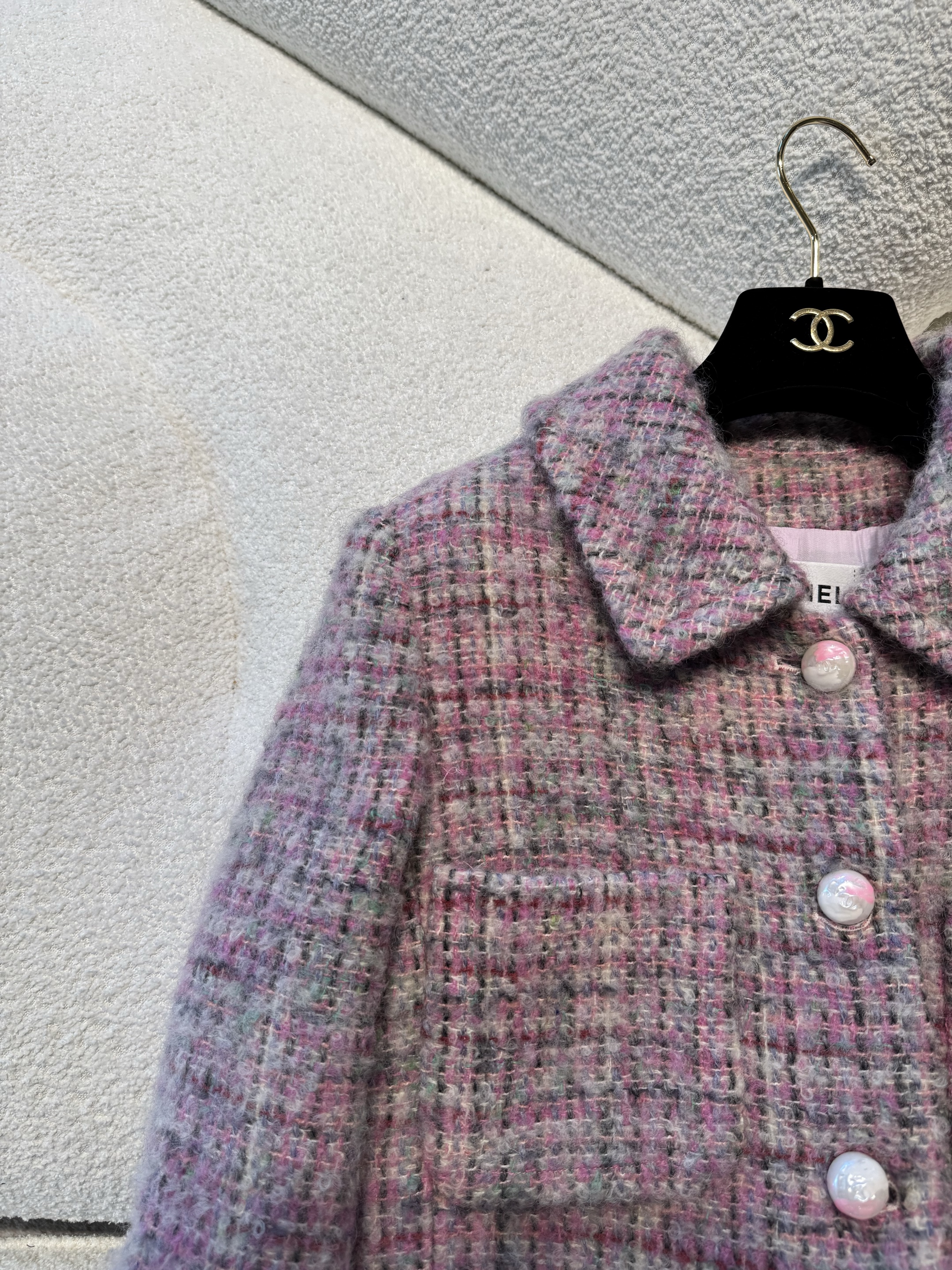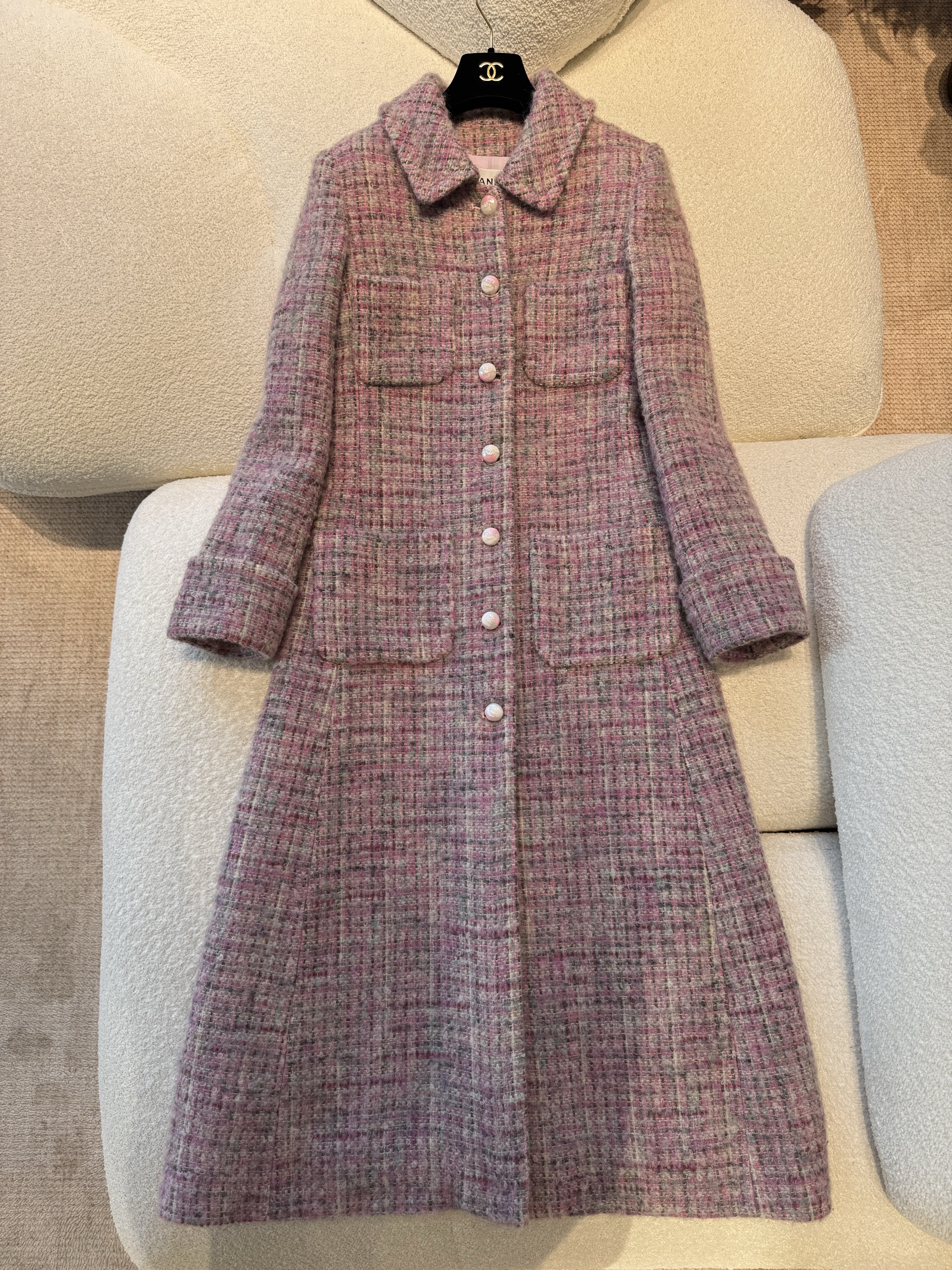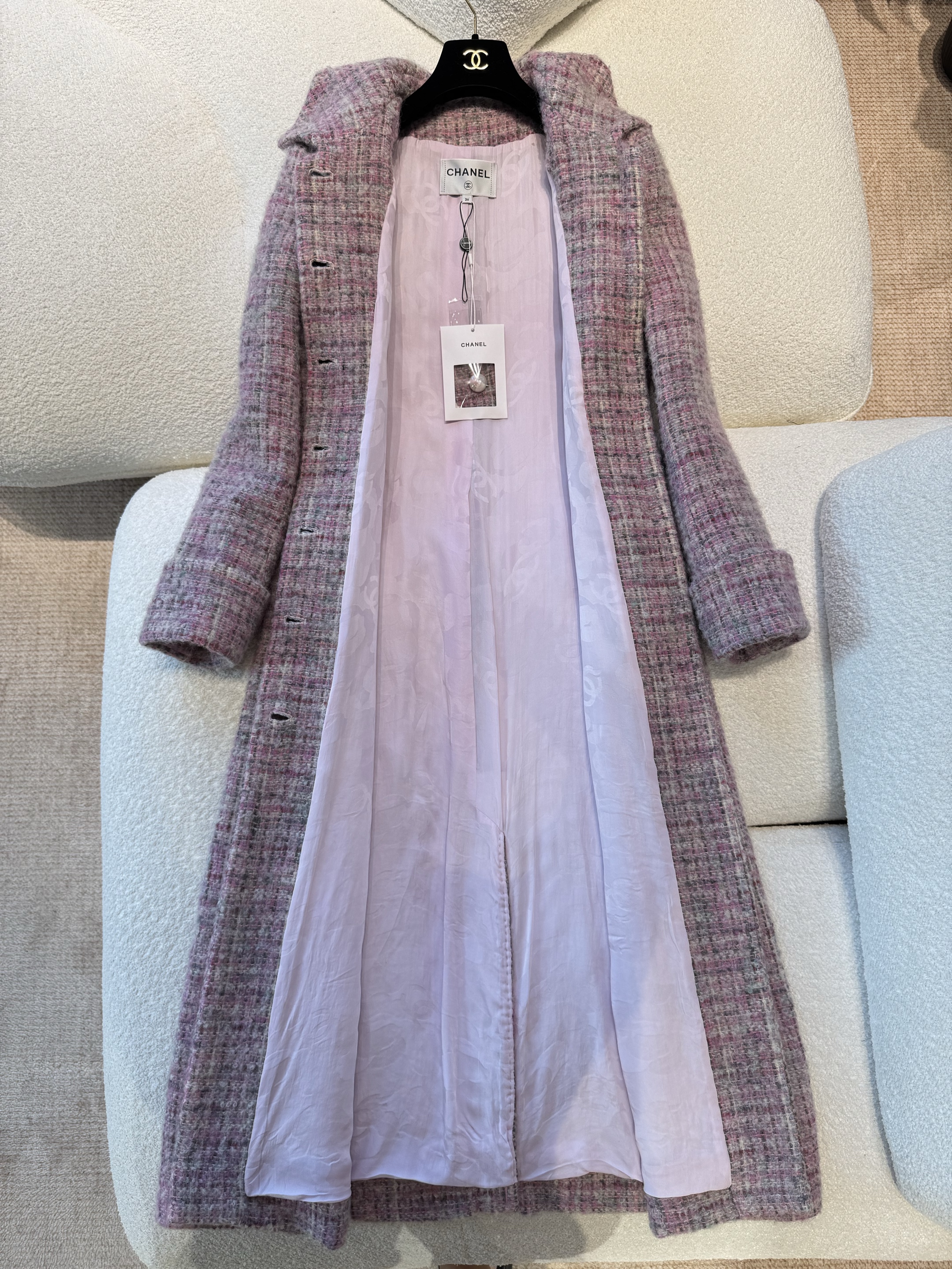 NIGO Chanel Women's Autumn And Winter Long Pink Tweed Coat Temperament Fashion Elegant Exquisite Mohair Wool Blend Double C Logo Jacket Ngvp #nigo2637